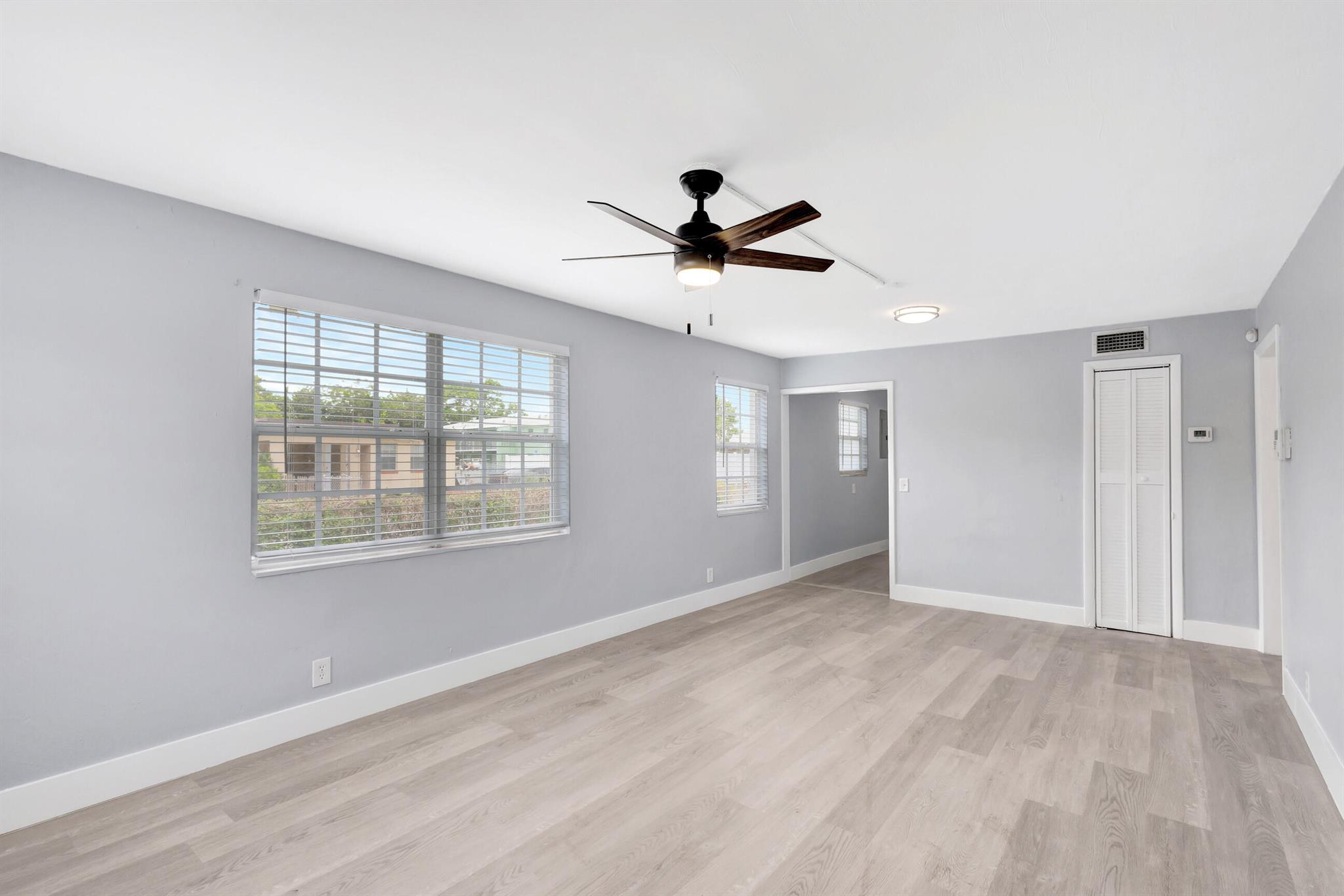 Beautiful single family home with private backyard and no HOA! Property is completely updated, offers 2 full bedrooms, spacious open floor plan, brand new kitchen with Quartz countertops and stainless steel appliances, new bathroom, newer ROOF, new lights throughout, fully fenced in, private driveway & more! Ideal first home, investment property or secondary residence. Corner lot. This property comes with the added benefit of no HOA fees, allowing you the freedom to personalize and/or lease your space without restrictions. Great location with short driving distance to major highways, nearby local shops and restaurants, 7 mins to downtown West Palm Beach, few blocks away from Northwood and 7 mins to the beach. Zoned multifamily. Call today to schedule your private tour!
