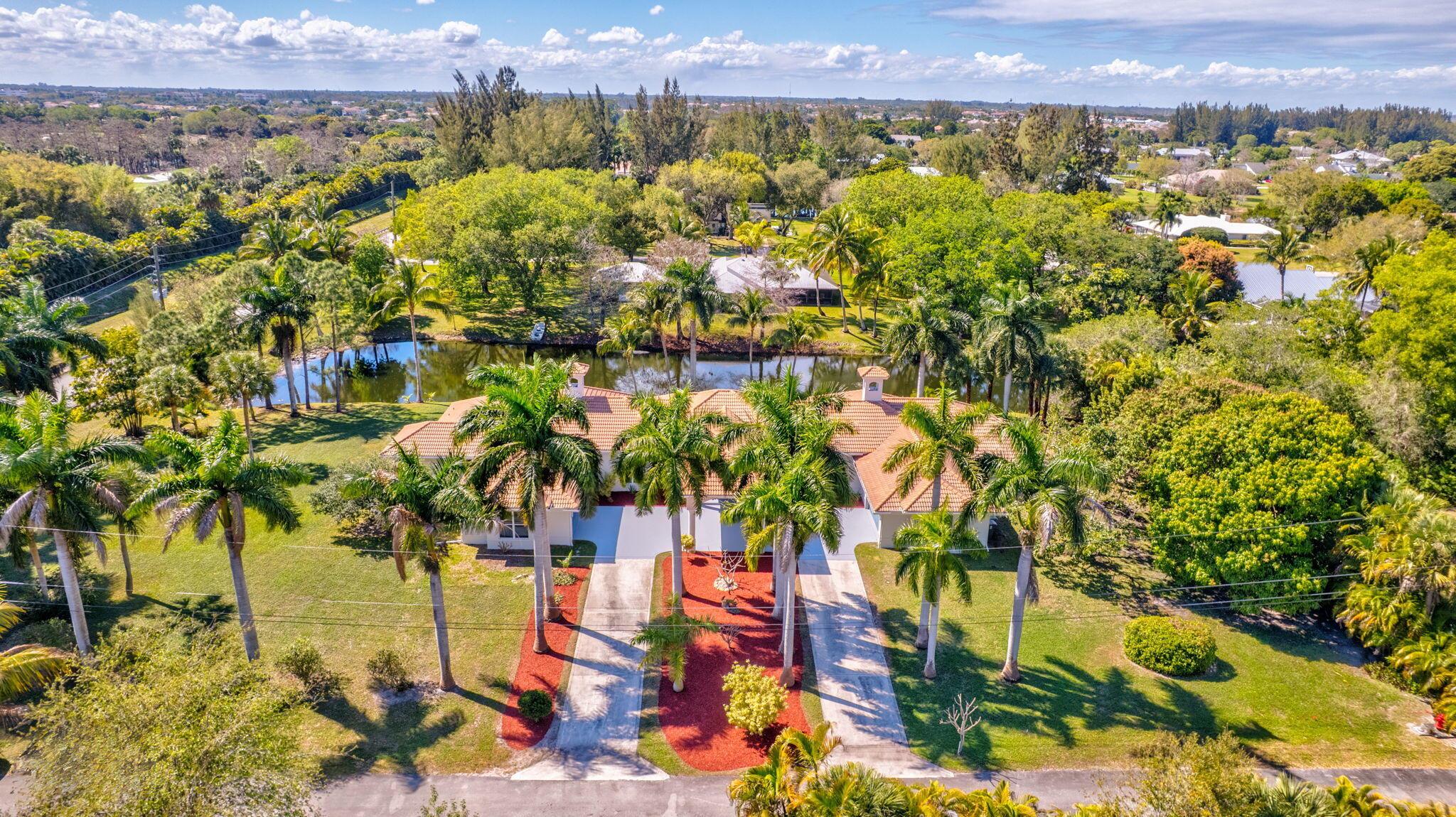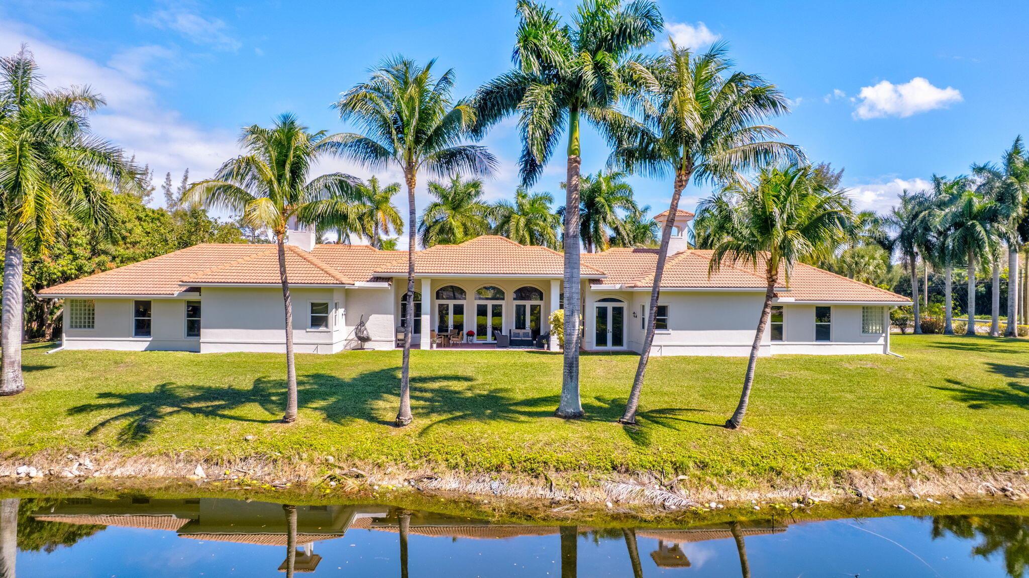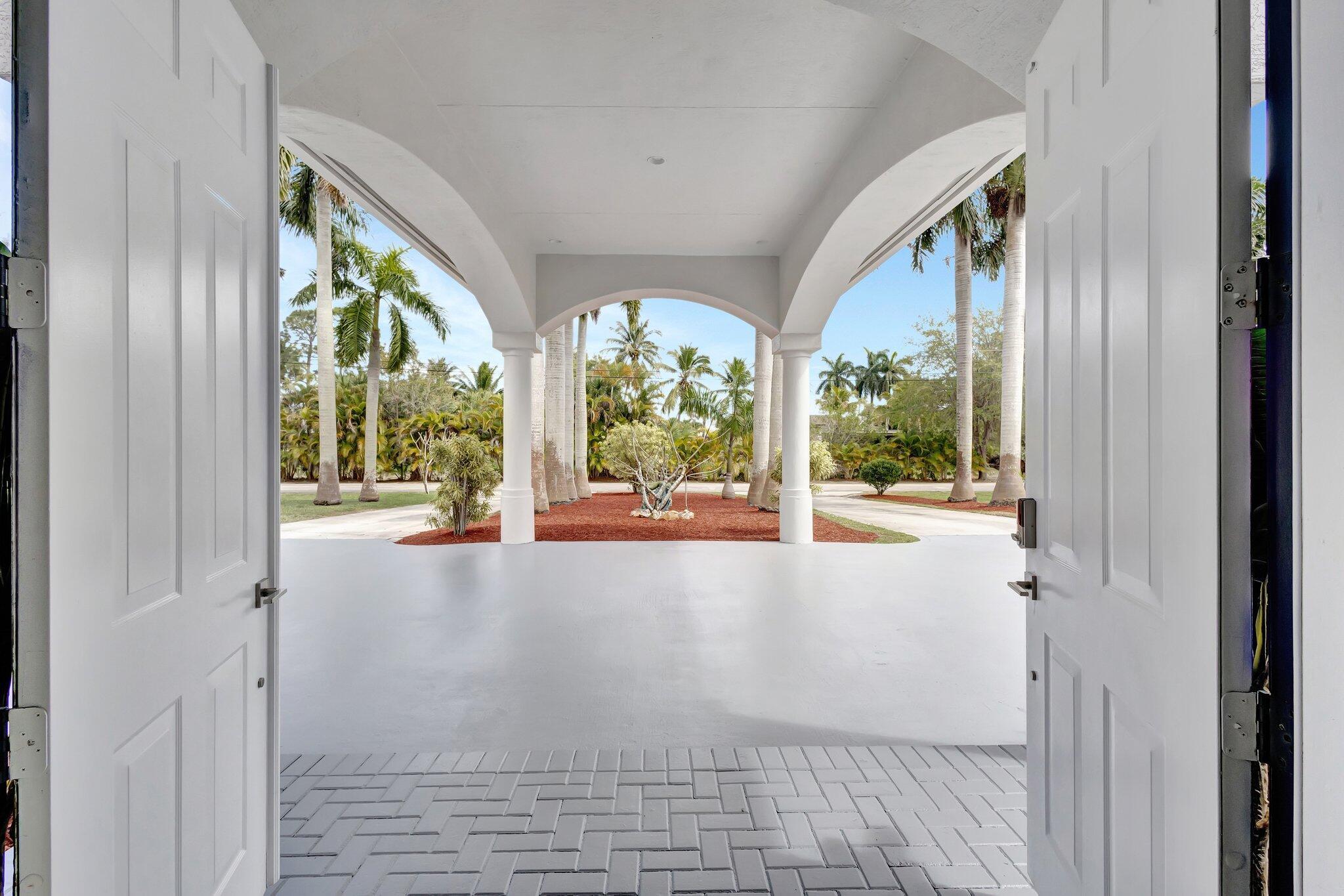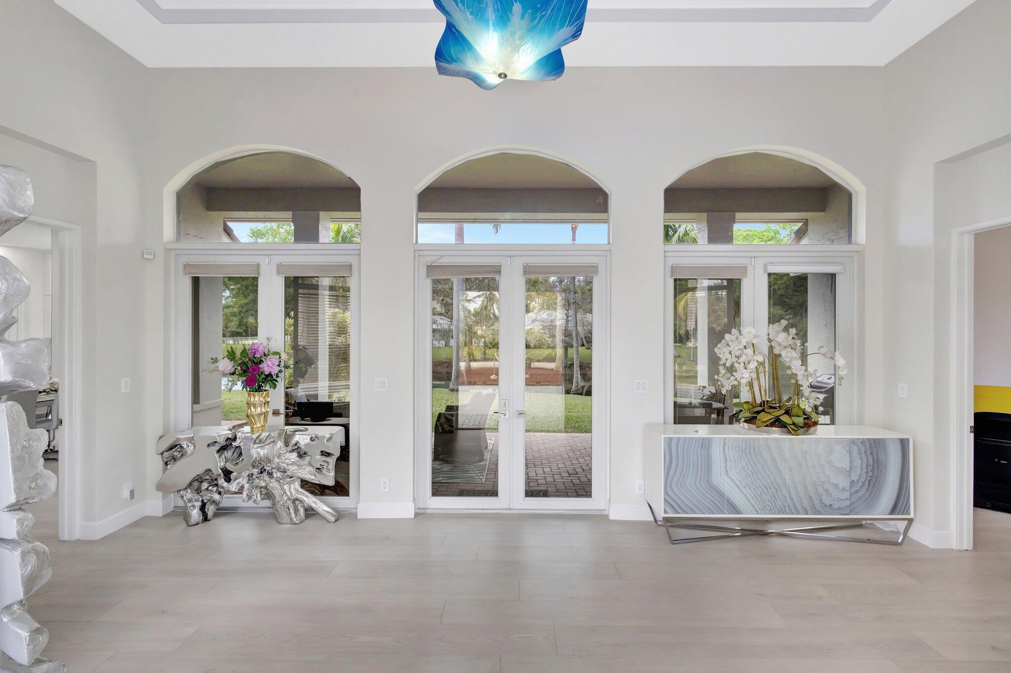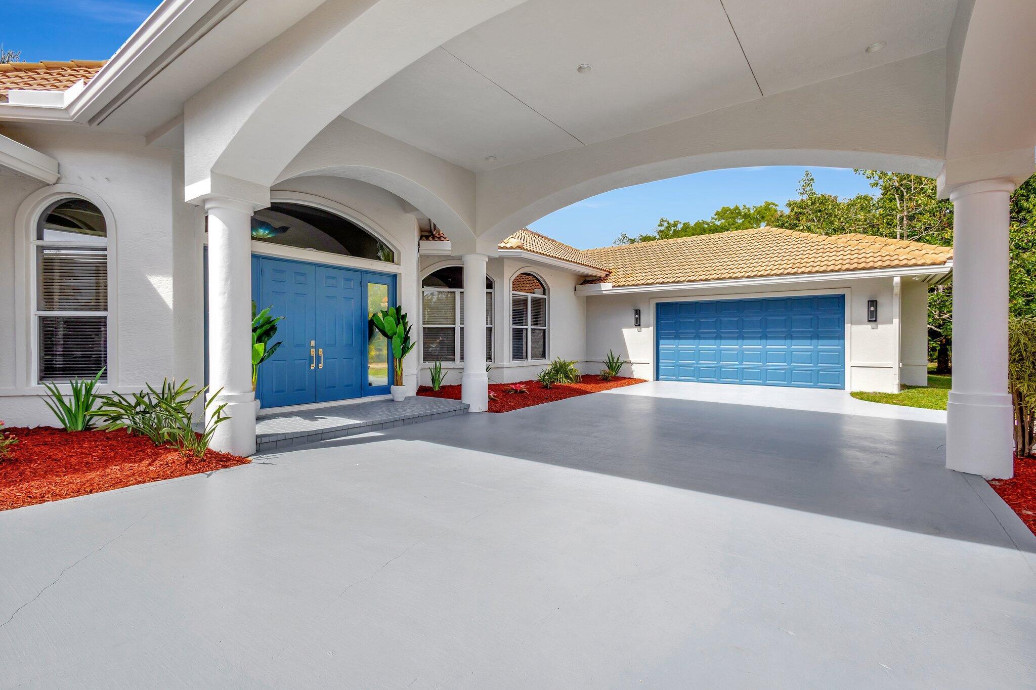 A rare find in the private Whippoorwill Lakes community, this unique estate sits on a spacious 2-acre corner lot. With an elegant portico, two 2-car garages, and a circular driveway lined with royal palms, it offers both style and convenience. Recently renovated, the home features soaring ceilings, a brand-new kitchen, and updated flooring throughout. The split floorplan provides stunning water views, while lush landscaping, including fruit trees, adds to its charm. A perfect blend of comfort and sophistication.