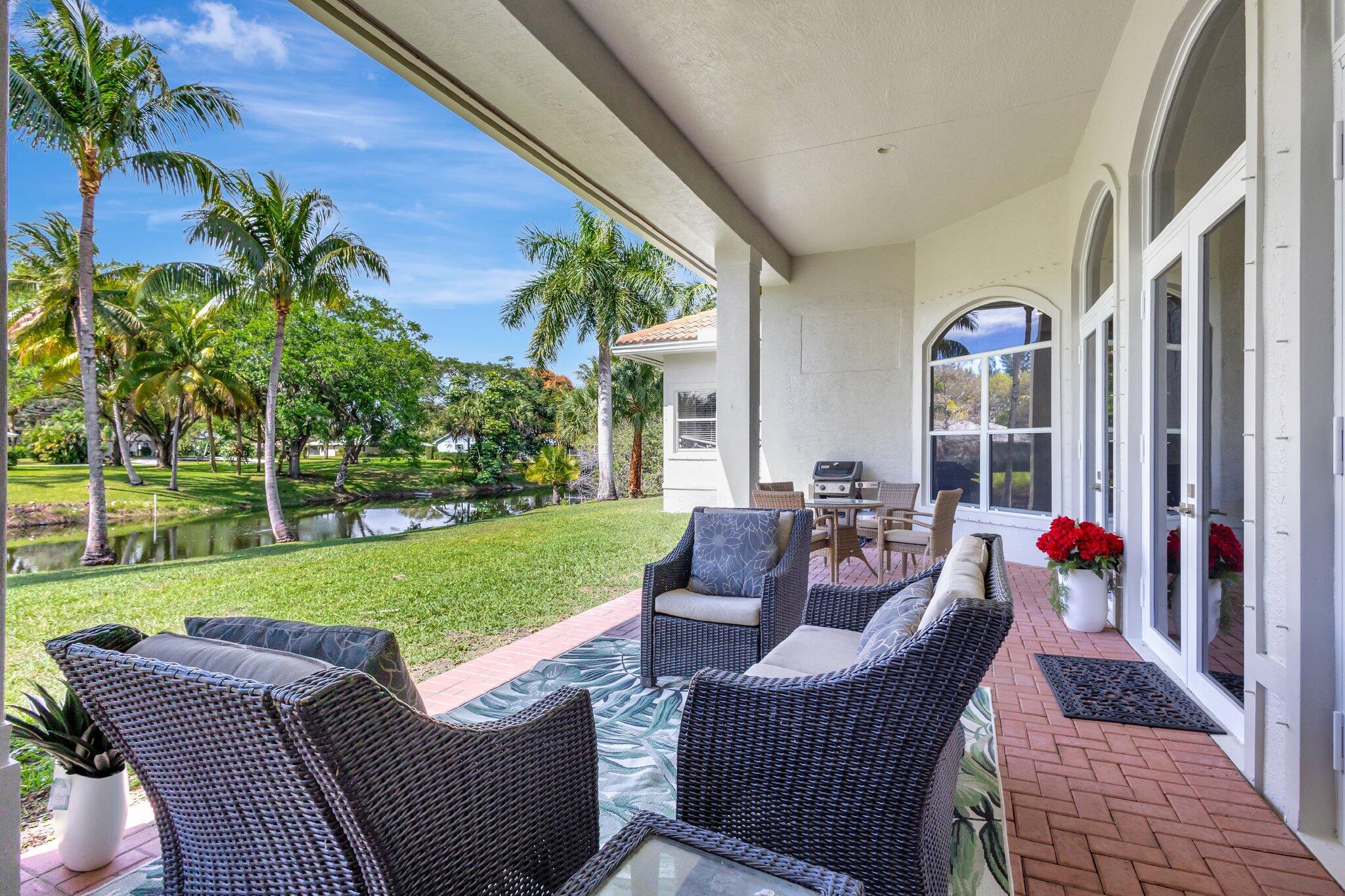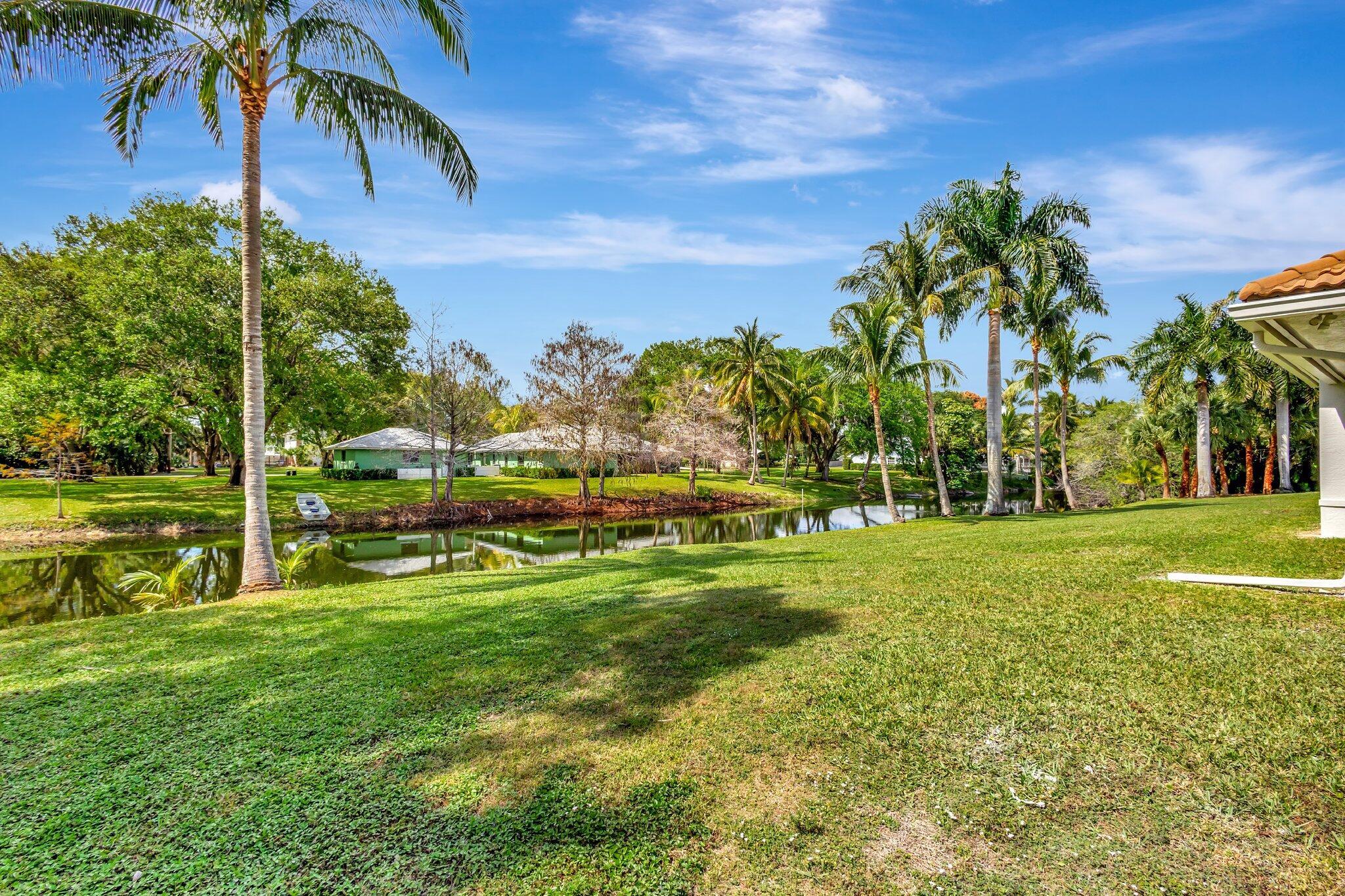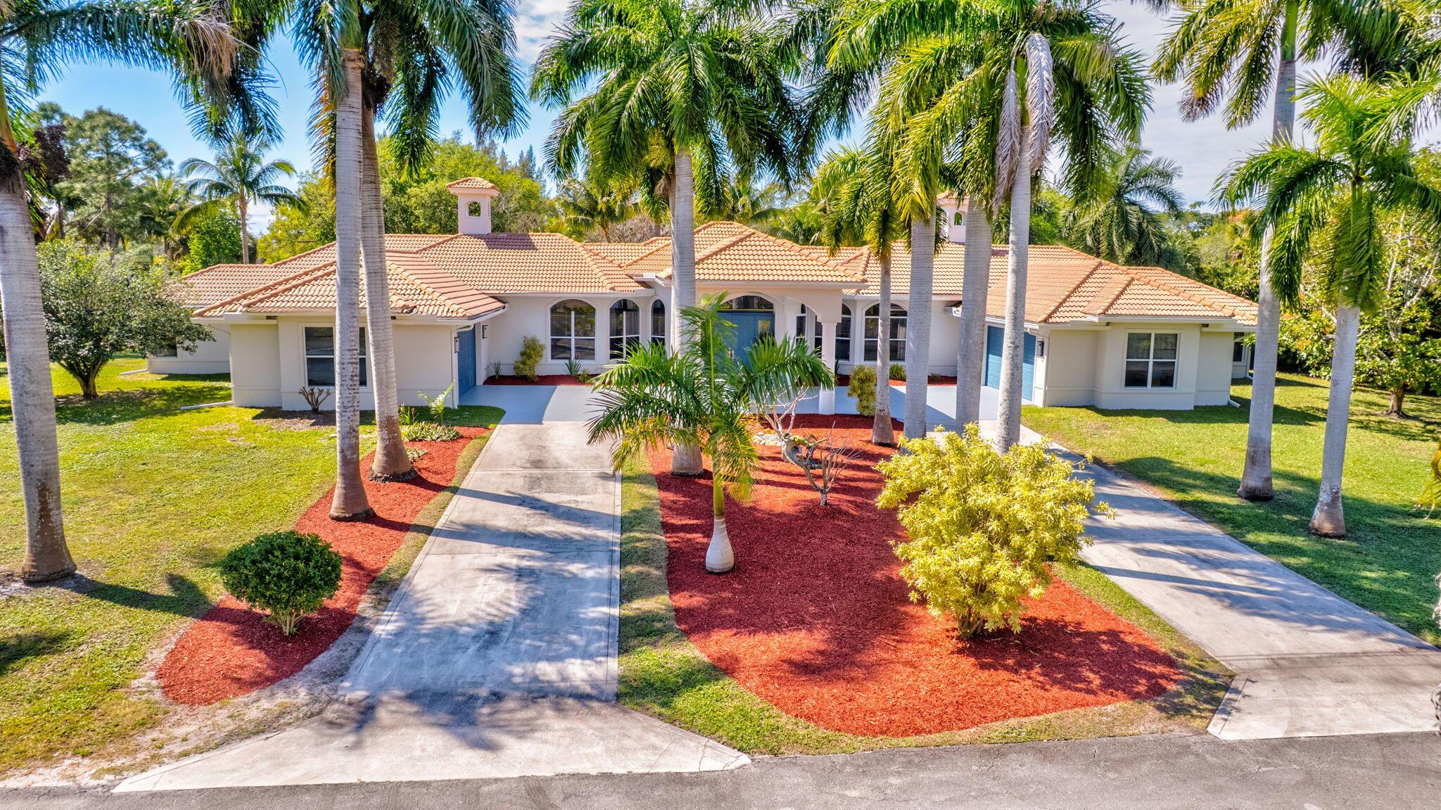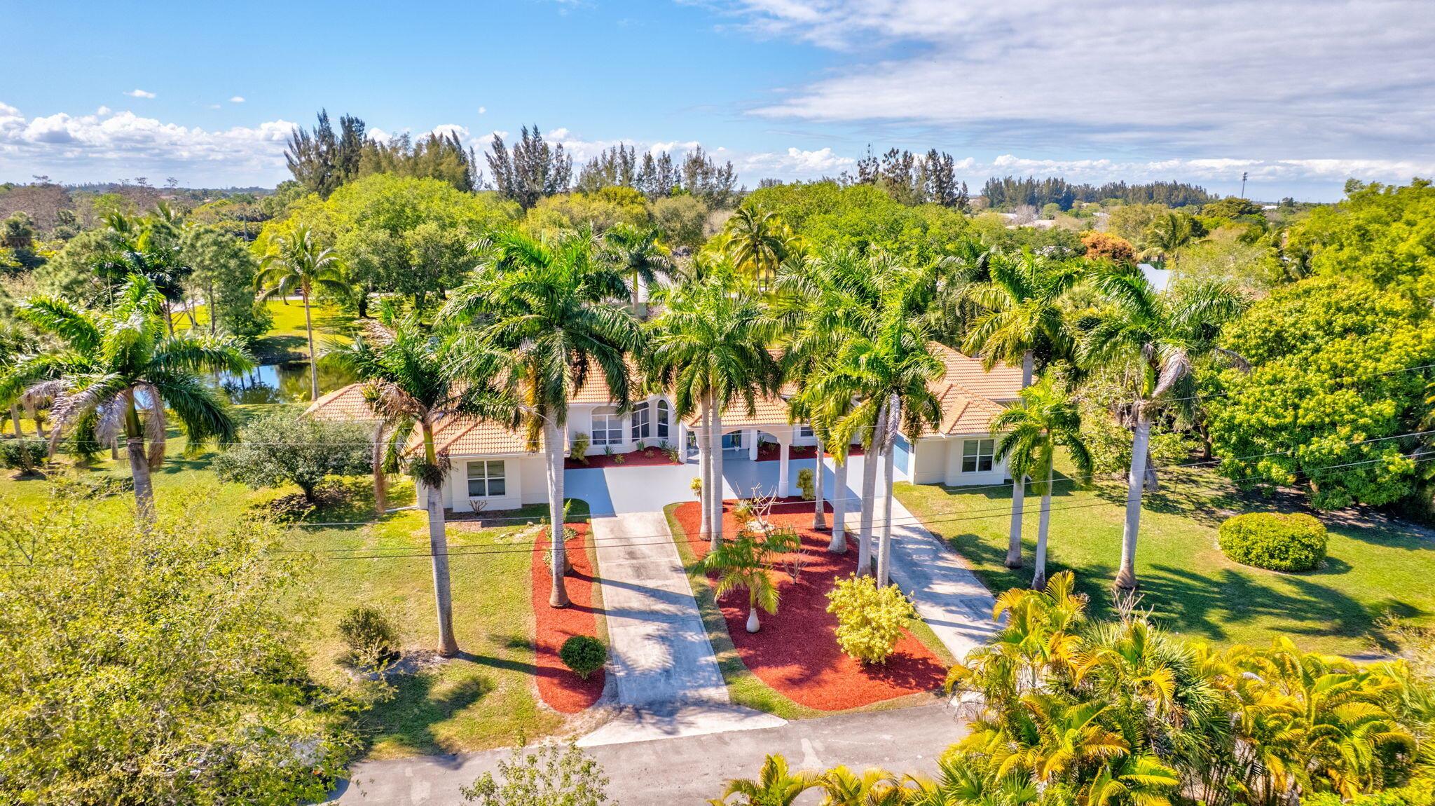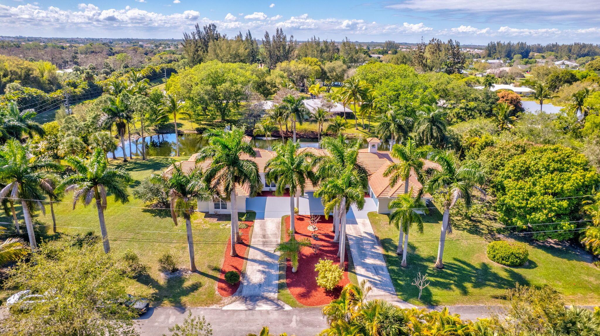 A rare find in the private Whippoorwill Lakes community, this unique estate sits on a spacious 2-acre corner lot. With an elegant portico, two 2-car garages, and a circular driveway lined with royal palms, it offers both style and convenience. Recently renovated, the home features soaring ceilings, a brand-new kitchen, and updated flooring throughout. The split floorplan provides stunning water views, while lush landscaping, including fruit trees, adds to its charm. A perfect blend of comfort and sophistication.