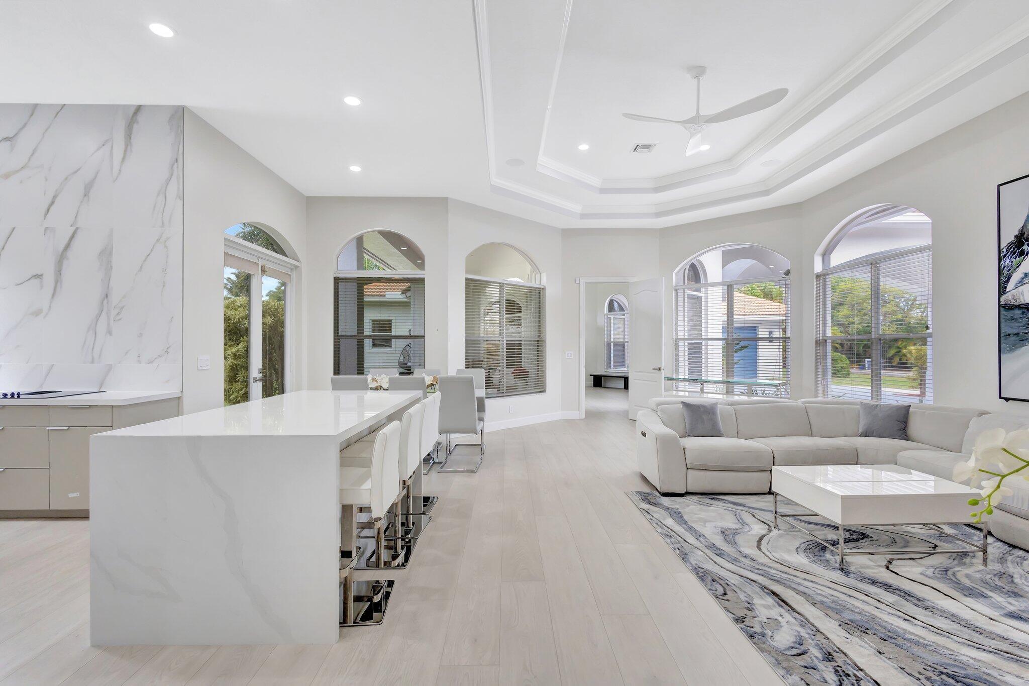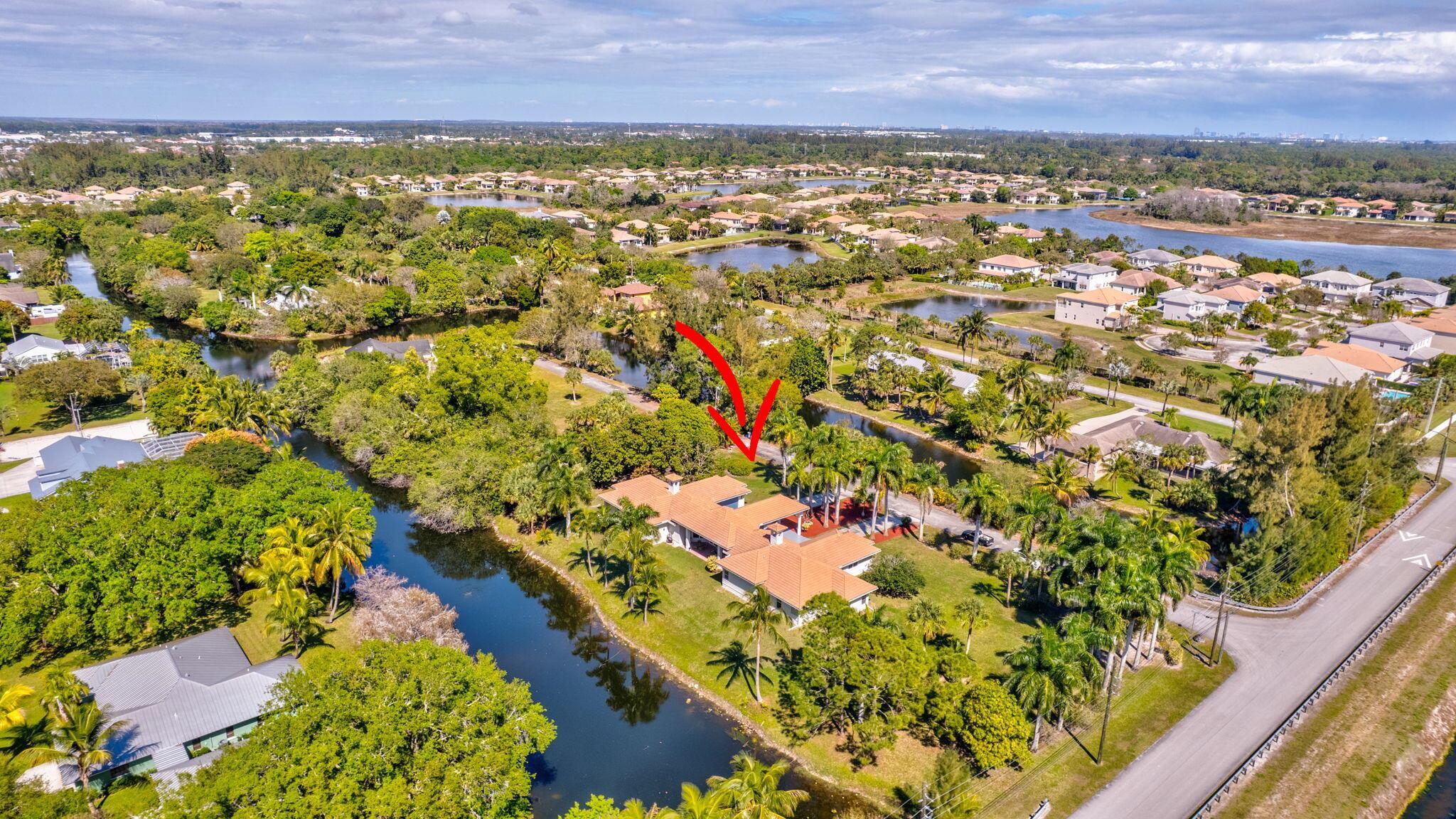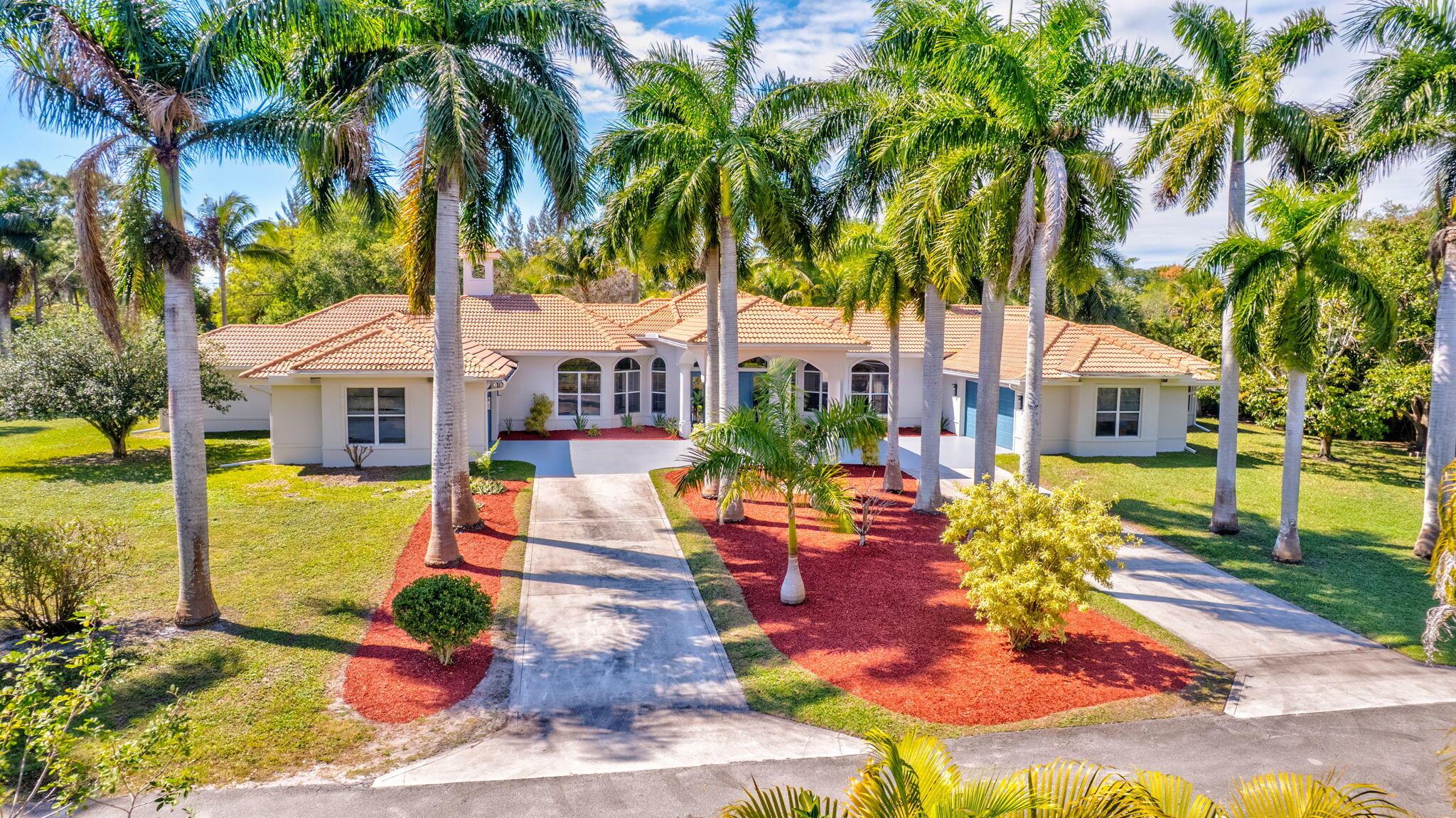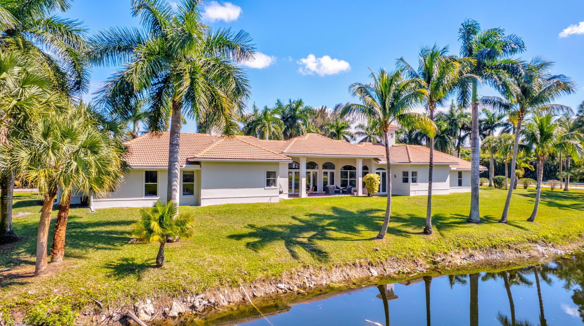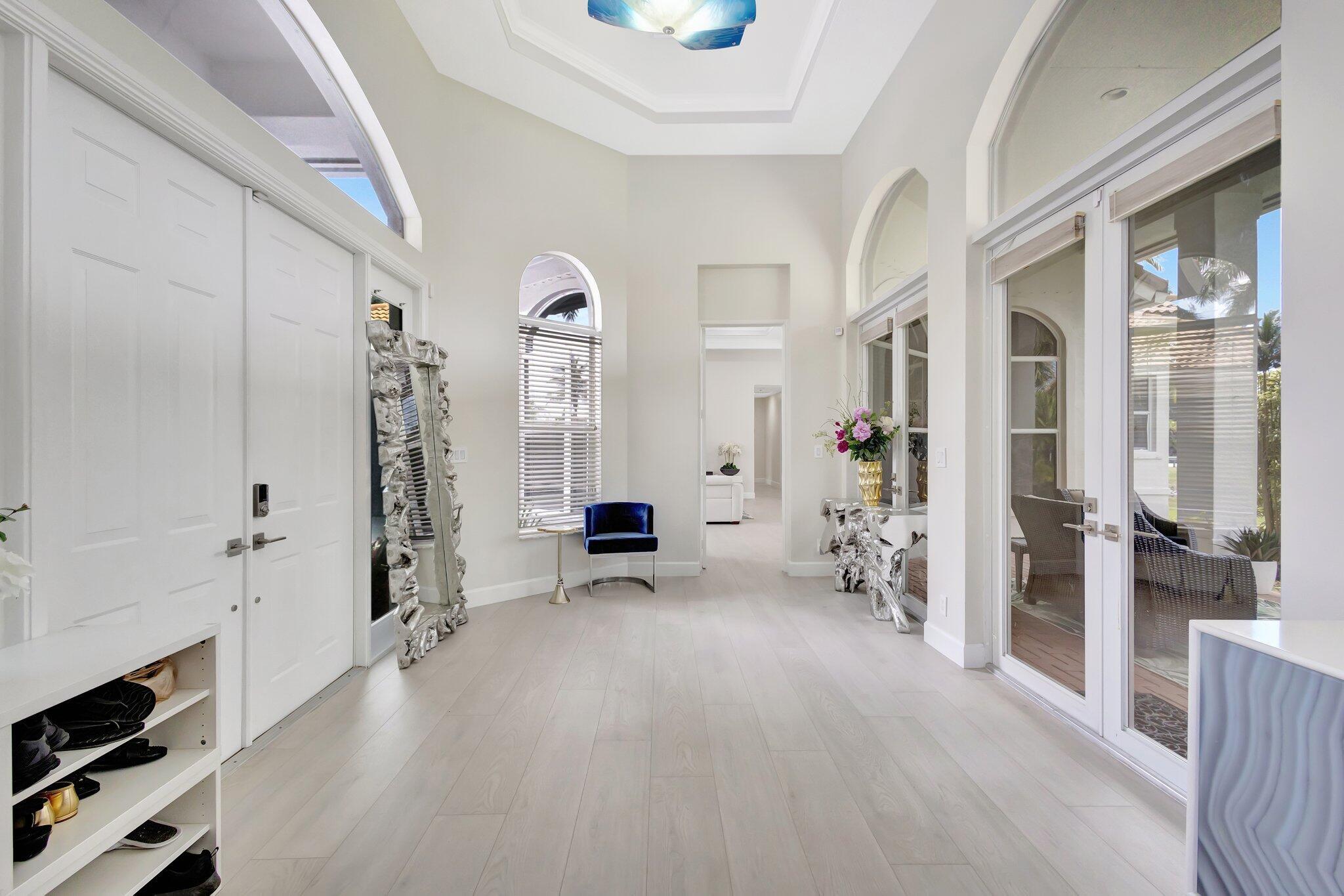 A rare find in the private Whippoorwill Lakes community, this unique estate sits on a spacious 2-acre corner lot. With an elegant portico, two 2-car garages, and a circular driveway lined with royal palms, it offers both style and convenience. Recently renovated, the home features soaring ceilings, a brand-new kitchen, and updated flooring throughout. The split floorplan provides stunning water views, while lush landscaping, including fruit trees, adds to its charm. A perfect blend of comfort and sophistication.