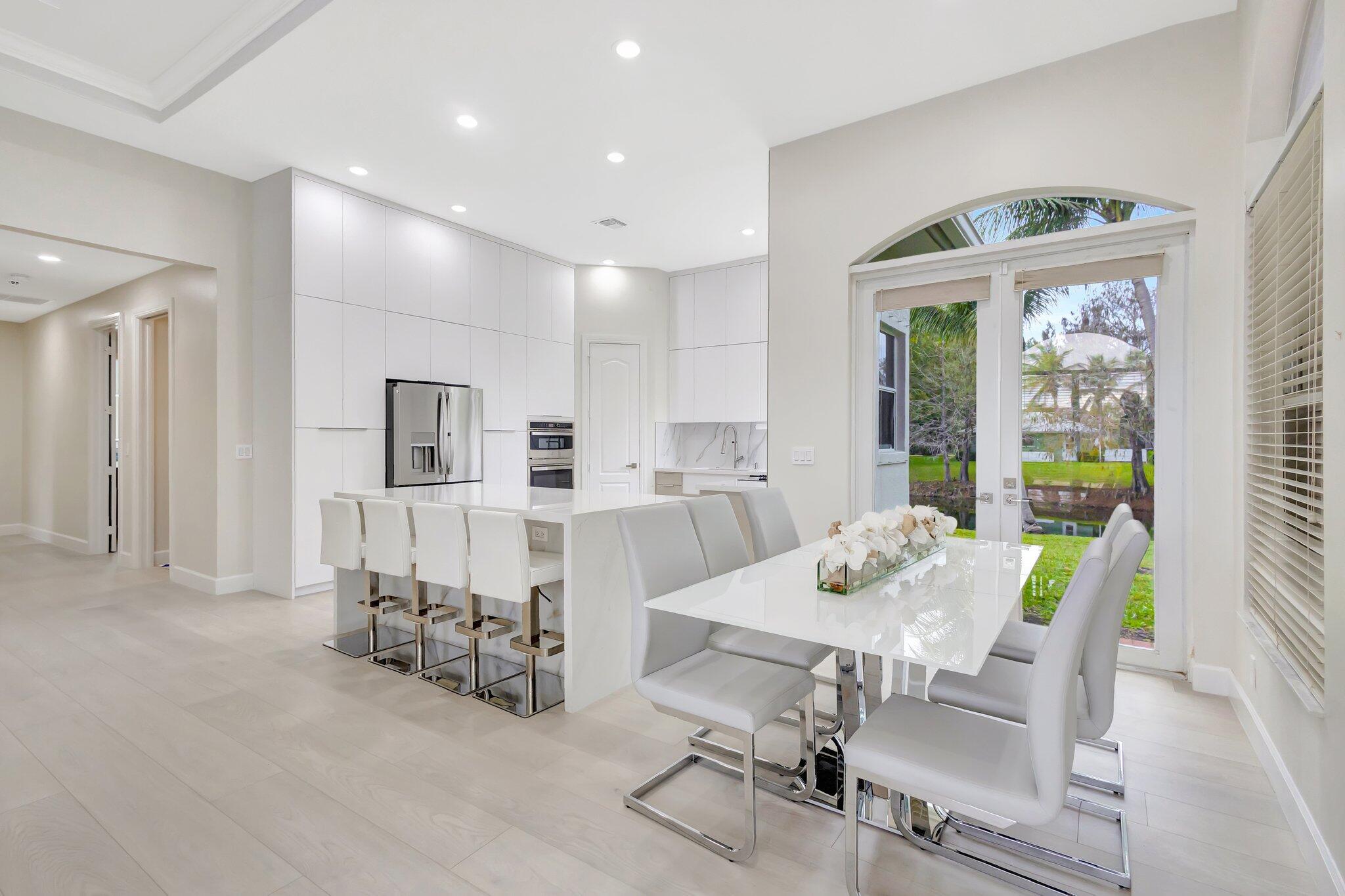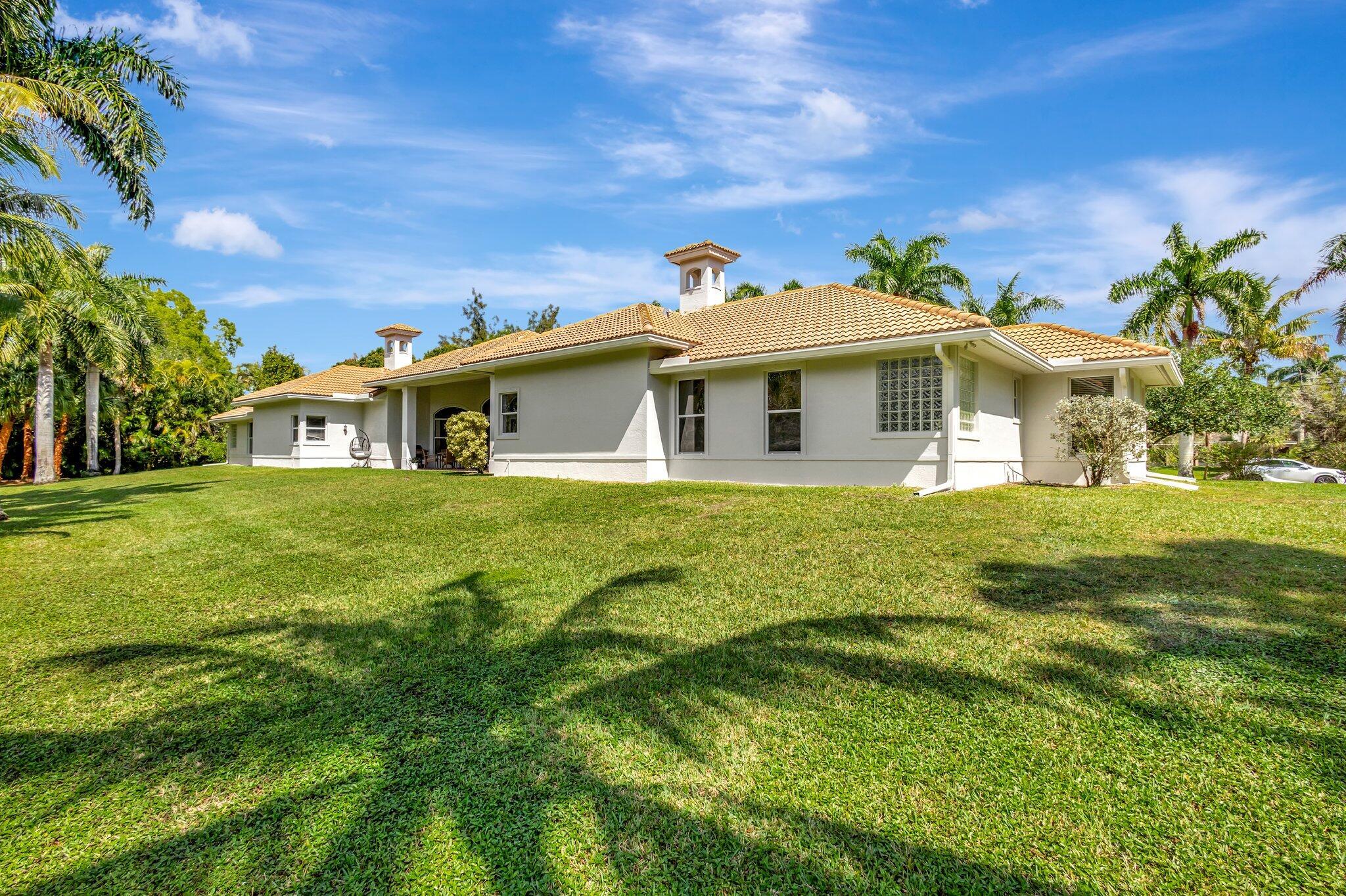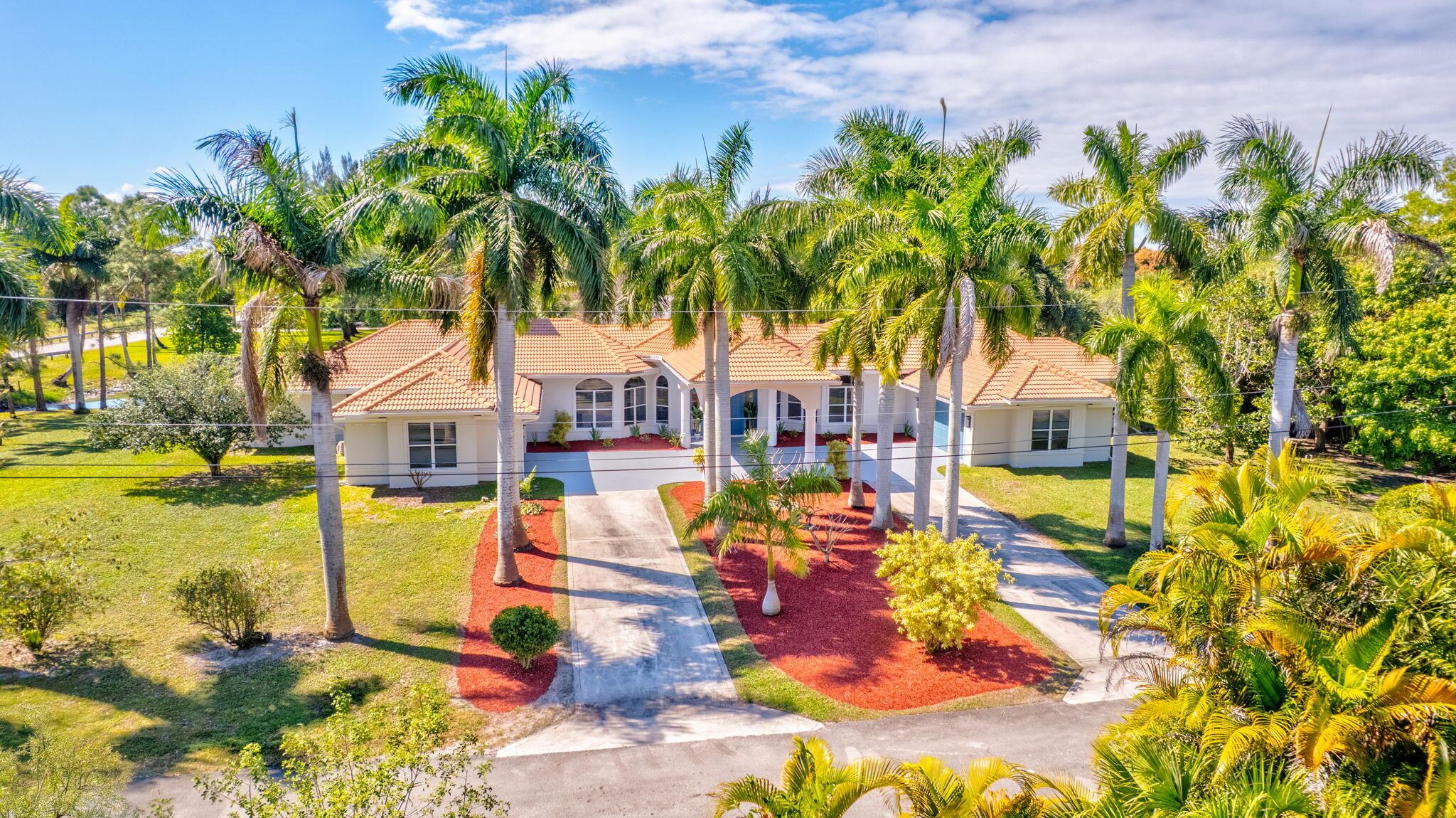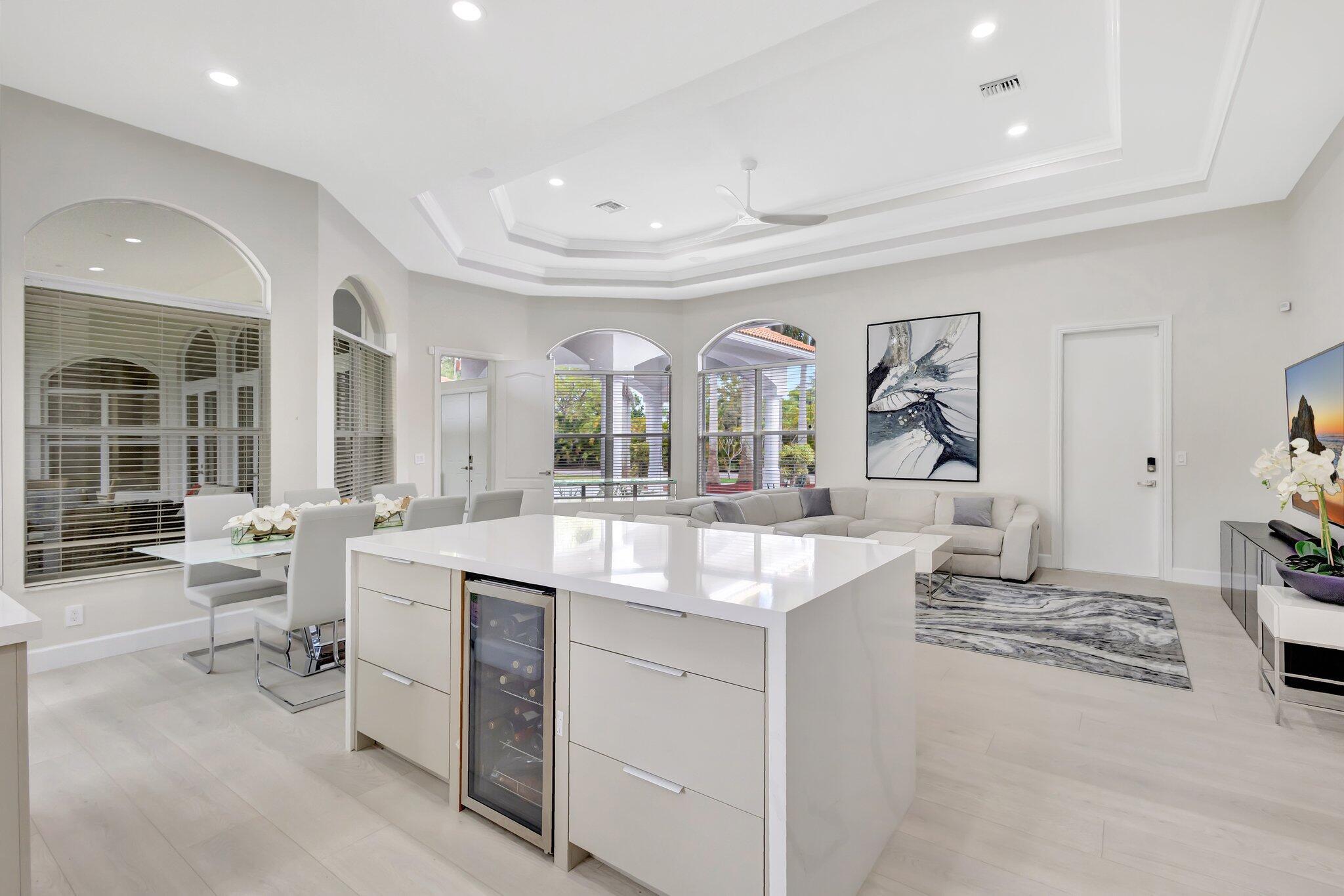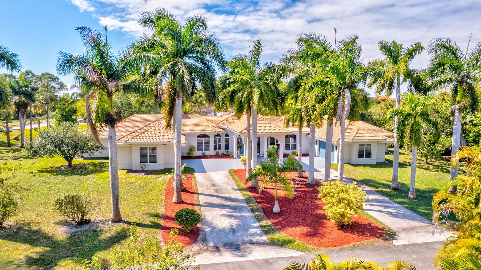 A rare find in the private Whippoorwill Lakes community, this unique estate sits on a spacious 2-acre corner lot. With an elegant portico, two 2-car garages, and a circular driveway lined with royal palms, it offers both style and convenience. Recently renovated, the home features soaring ceilings, a brand-new kitchen, and updated flooring throughout. The split floorplan provides stunning water views, while lush landscaping, including fruit trees, adds to its charm. A perfect blend of comfort and sophistication.