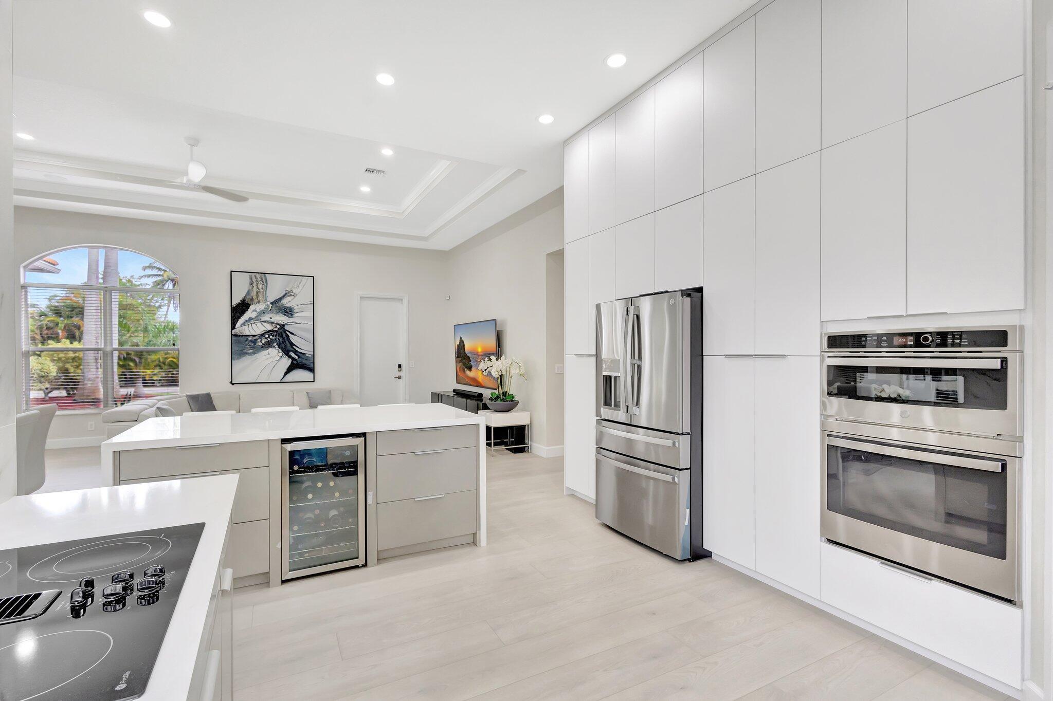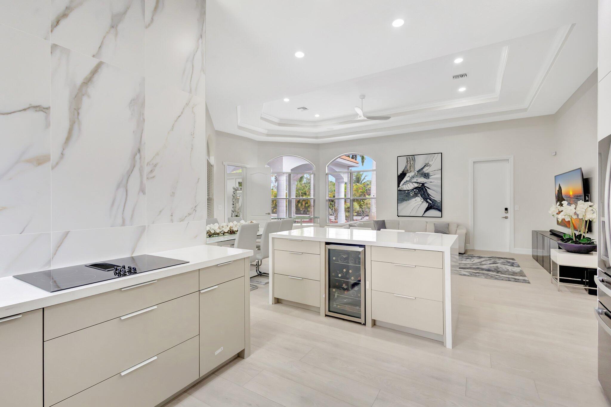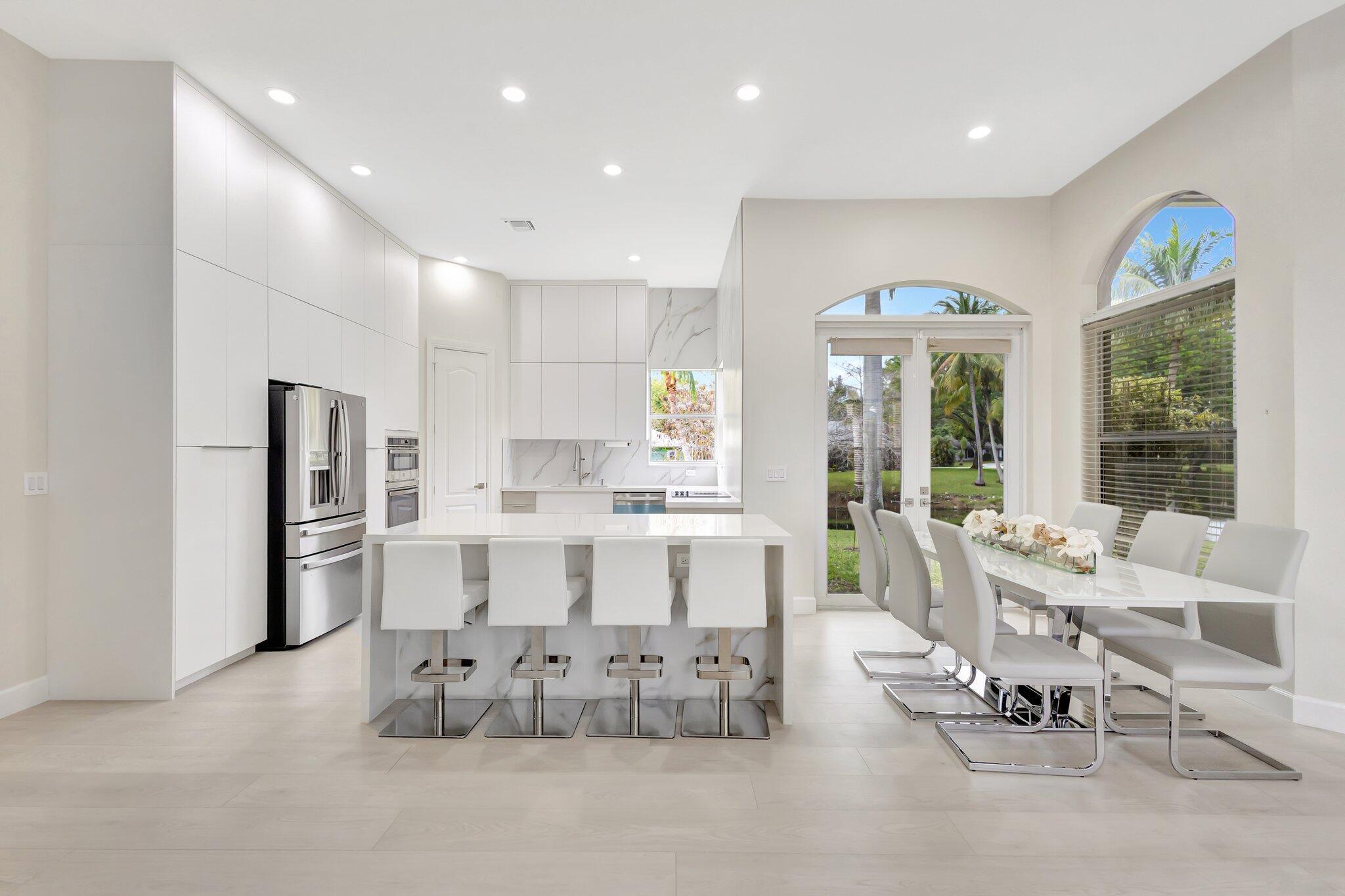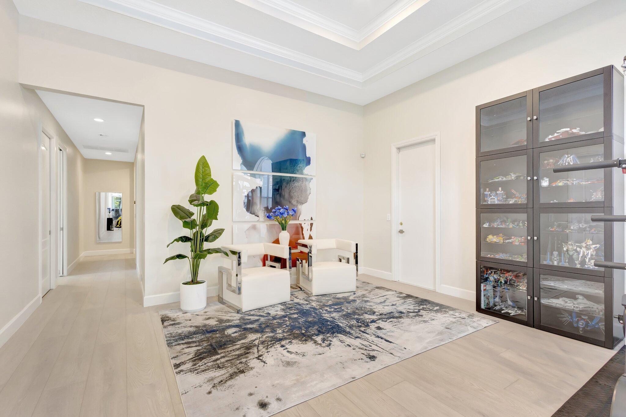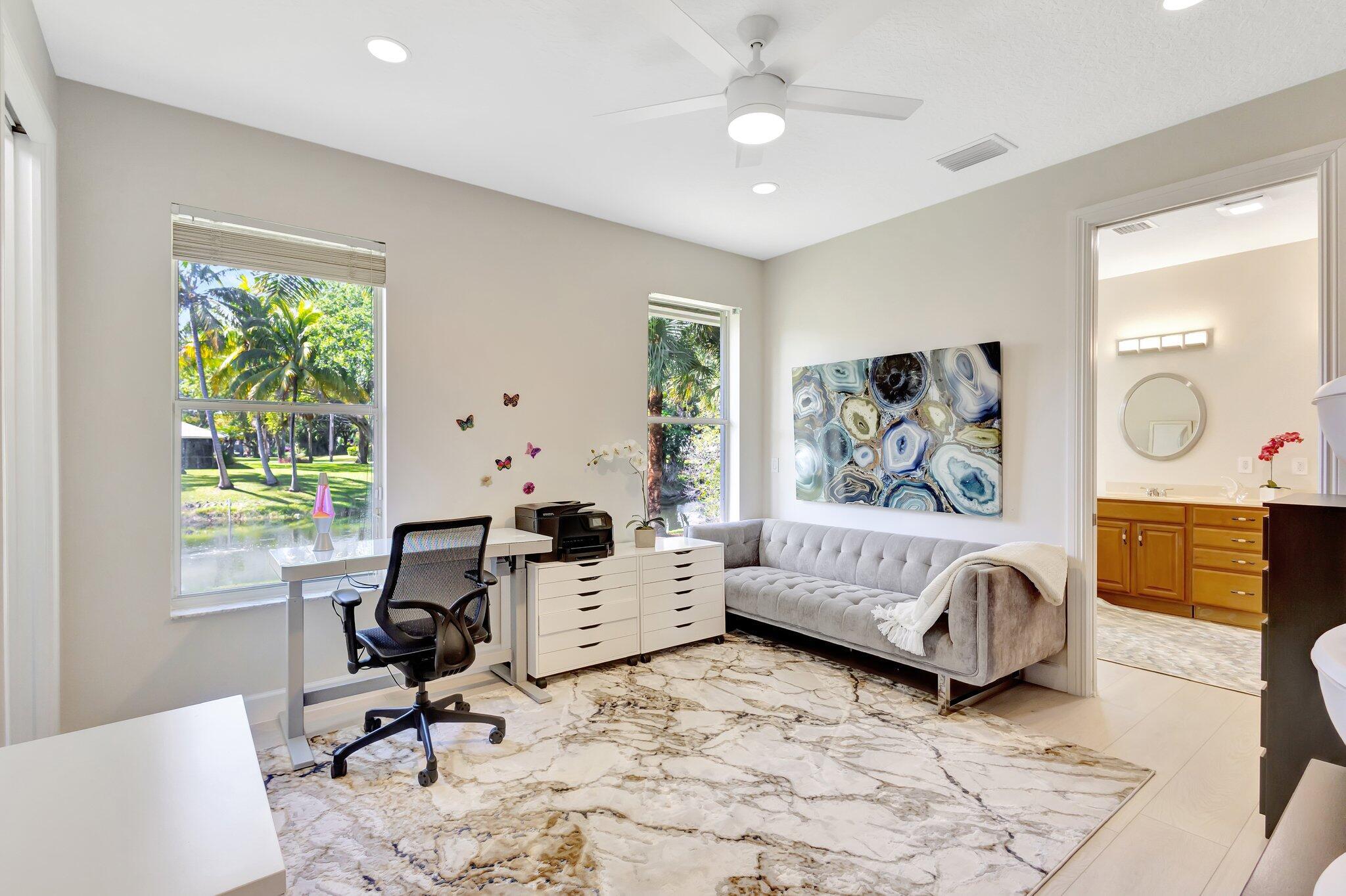 A rare find in the private Whippoorwill Lakes community, this unique estate sits on a spacious 2-acre corner lot. With an elegant portico, two 2-car garages, and a circular driveway lined with royal palms, it offers both style and convenience. Recently renovated, the home features soaring ceilings, a brand-new kitchen, and updated flooring throughout. The split floorplan provides stunning water views, while lush landscaping, including fruit trees, adds to its charm. A perfect blend of comfort and sophistication.