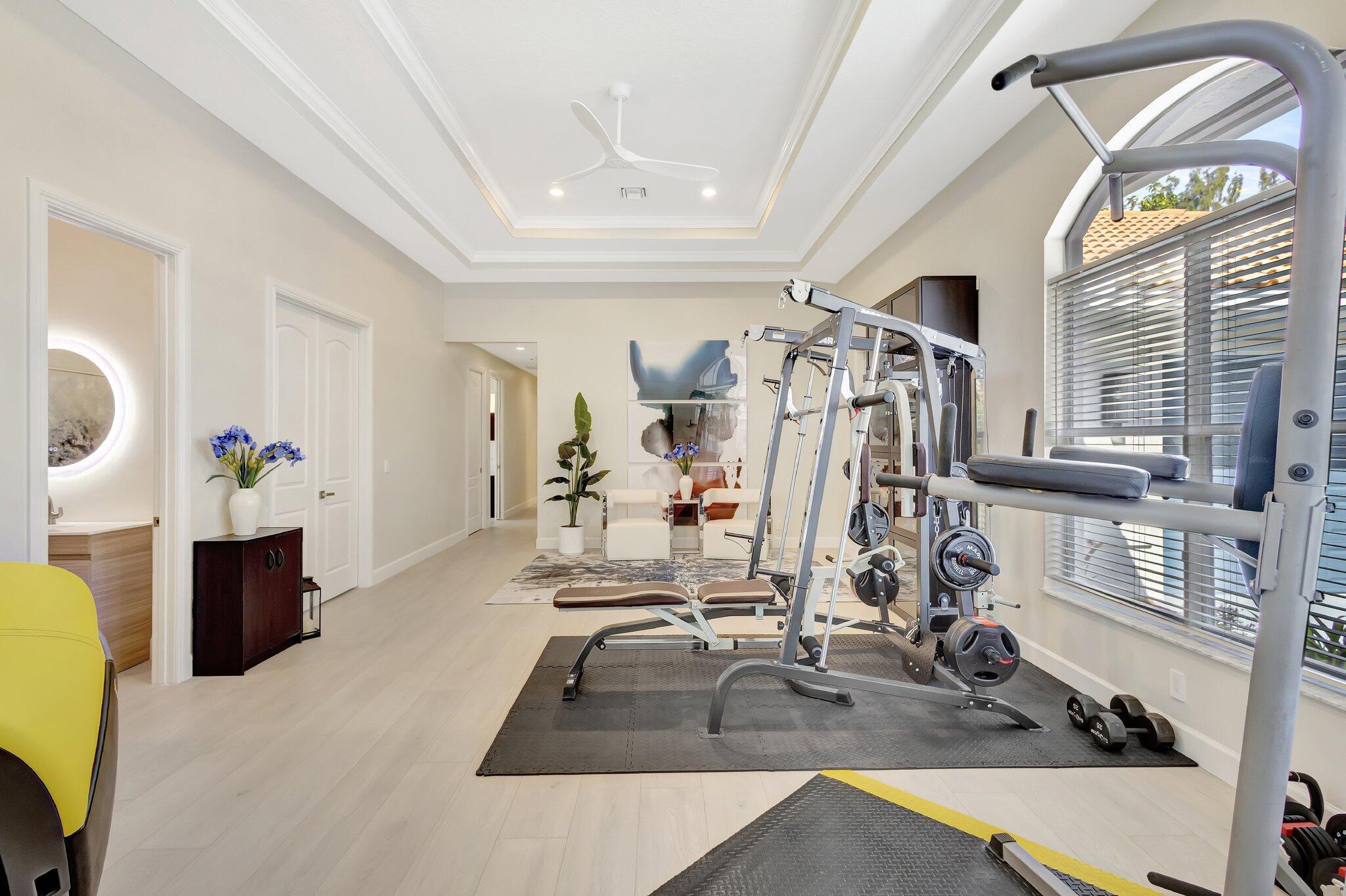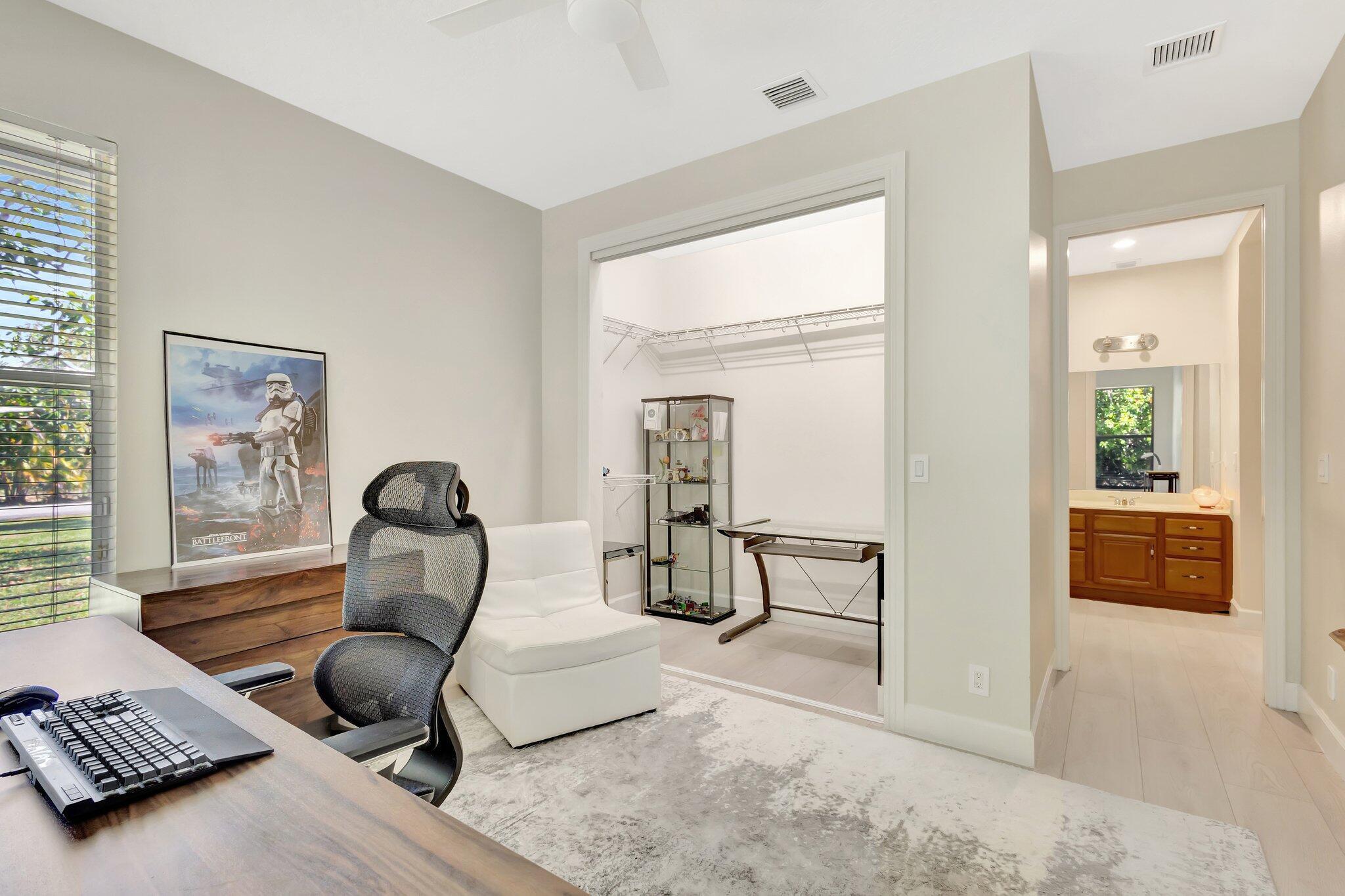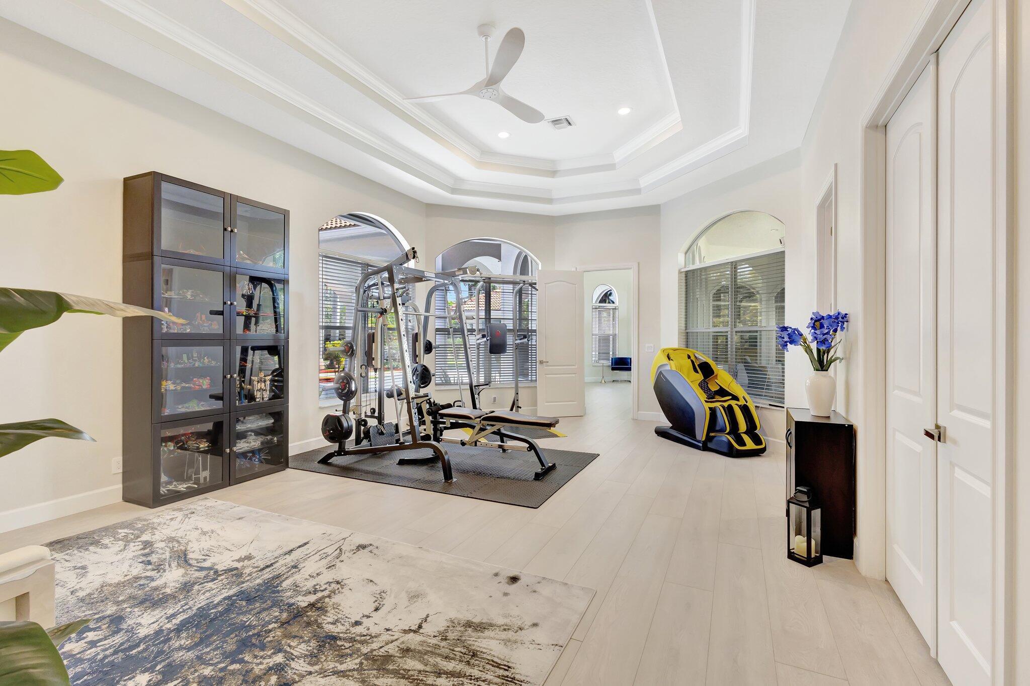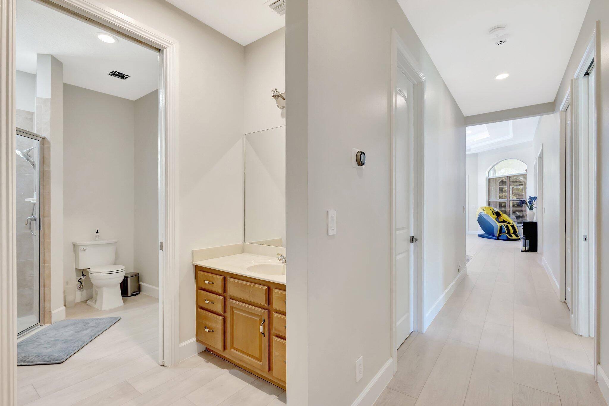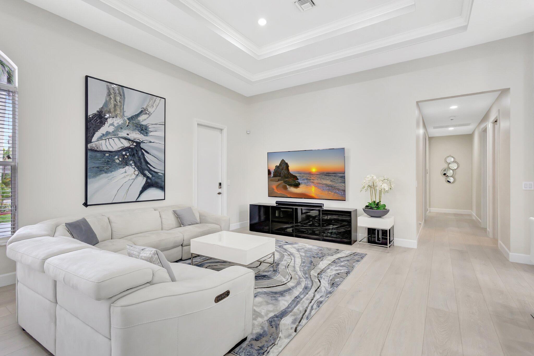 A rare find in the private Whippoorwill Lakes community, this unique estate sits on a spacious 2-acre corner lot. With an elegant portico, two 2-car garages, and a circular driveway lined with royal palms, it offers both style and convenience. Recently renovated, the home features soaring ceilings, a brand-new kitchen, and updated flooring throughout. The split floorplan provides stunning water views, while lush landscaping, including fruit trees, adds to its charm. A perfect blend of comfort and sophistication.
