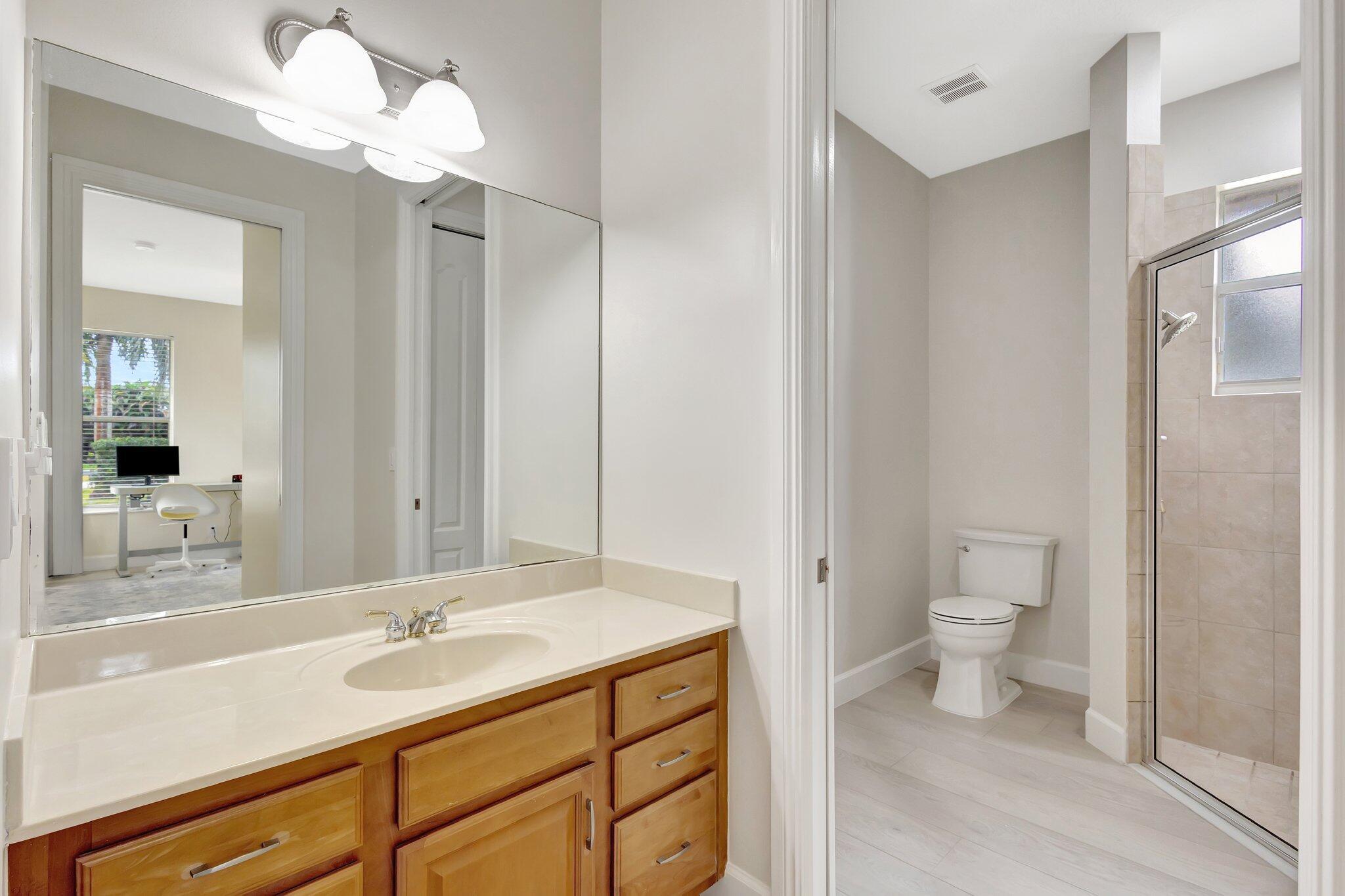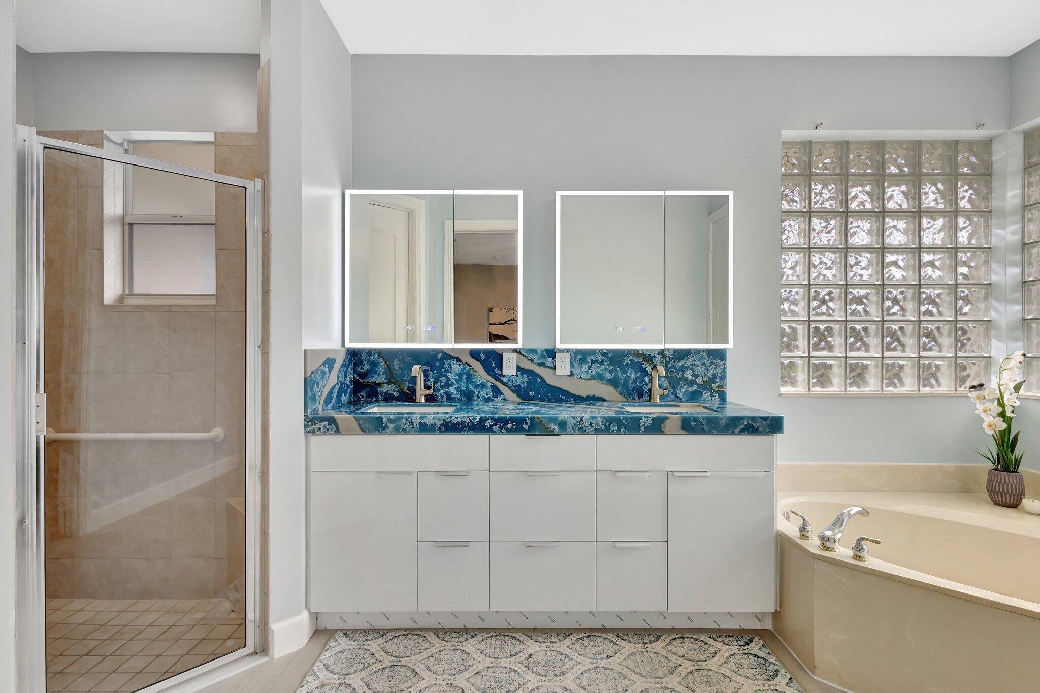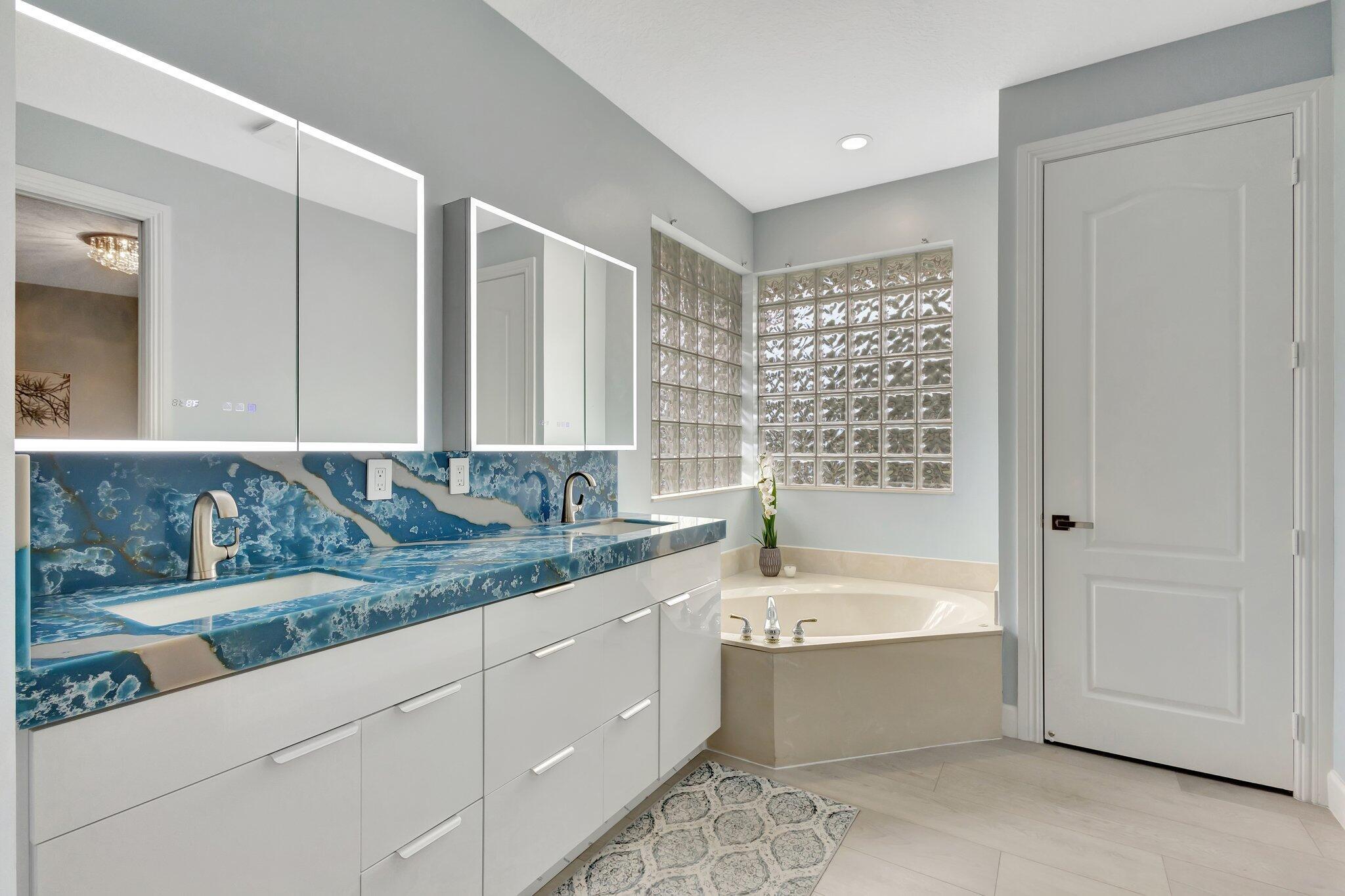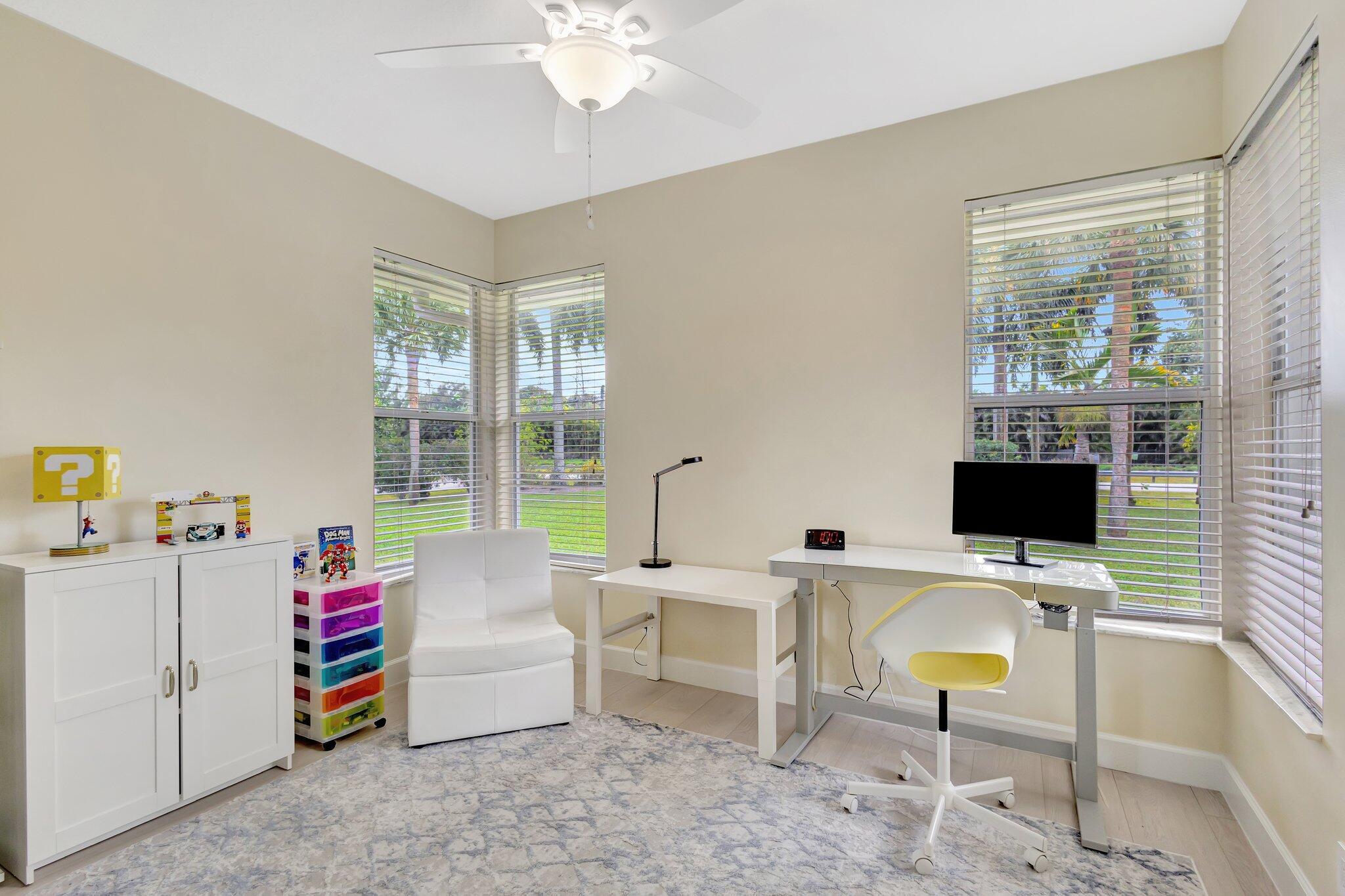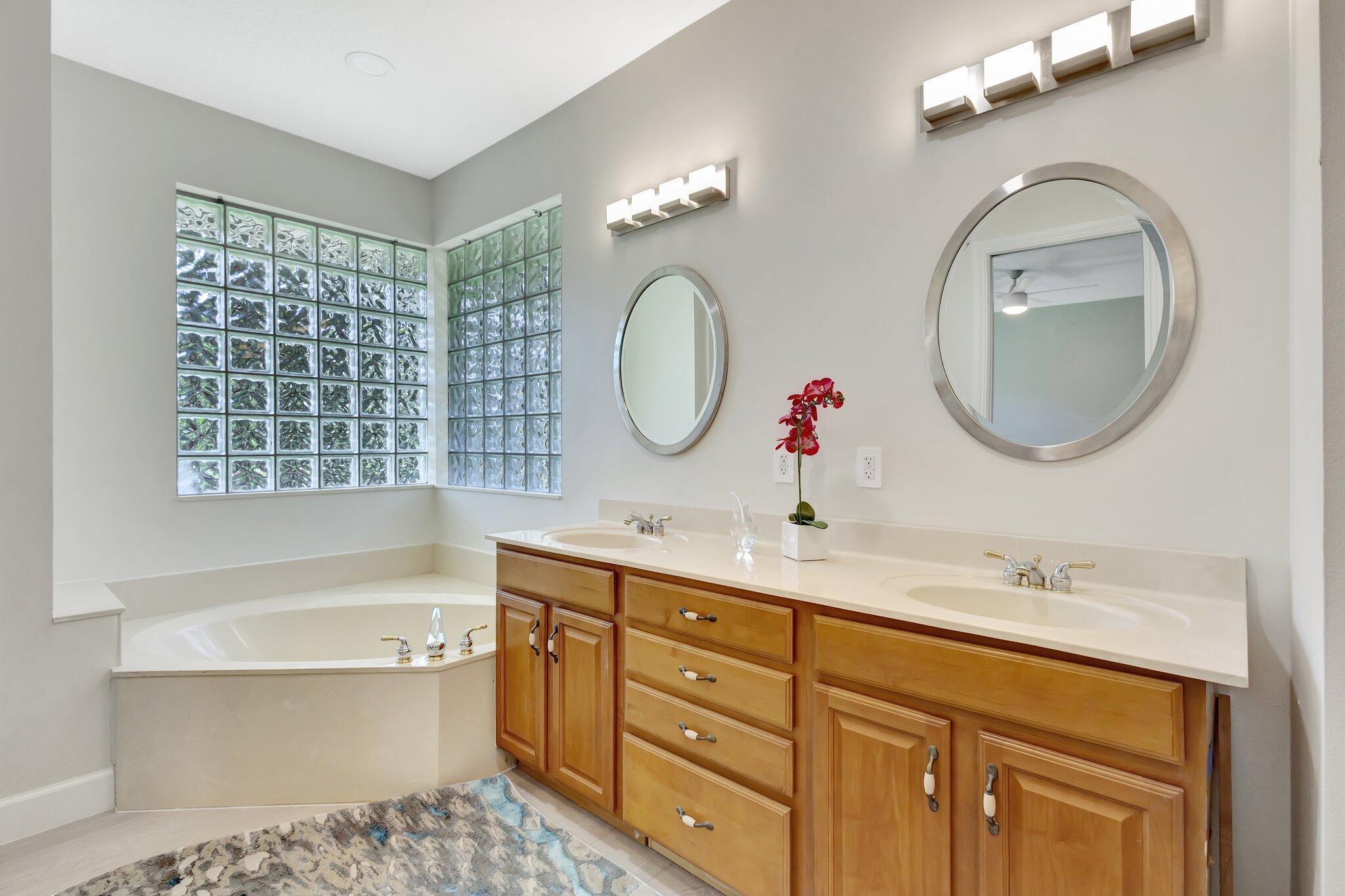 A rare find in the private Whippoorwill Lakes community, this unique estate sits on a spacious 2-acre corner lot. With an elegant portico, two 2-car garages, and a circular driveway lined with royal palms, it offers both style and convenience. Recently renovated, the home features soaring ceilings, a brand-new kitchen, and updated flooring throughout. The split floorplan provides stunning water views, while lush landscaping, including fruit trees, adds to its charm. A perfect blend of comfort and sophistication.