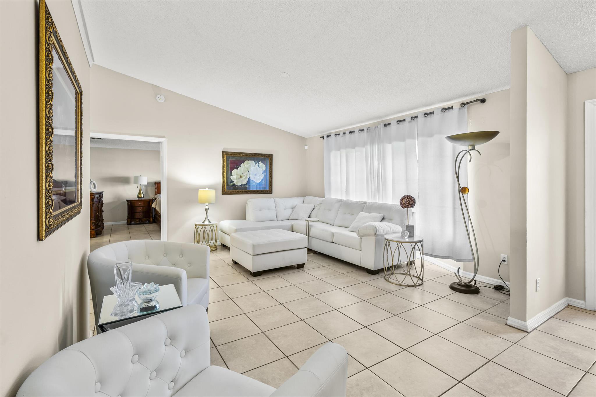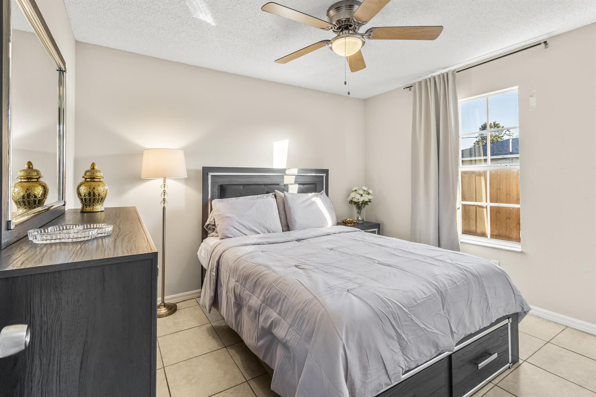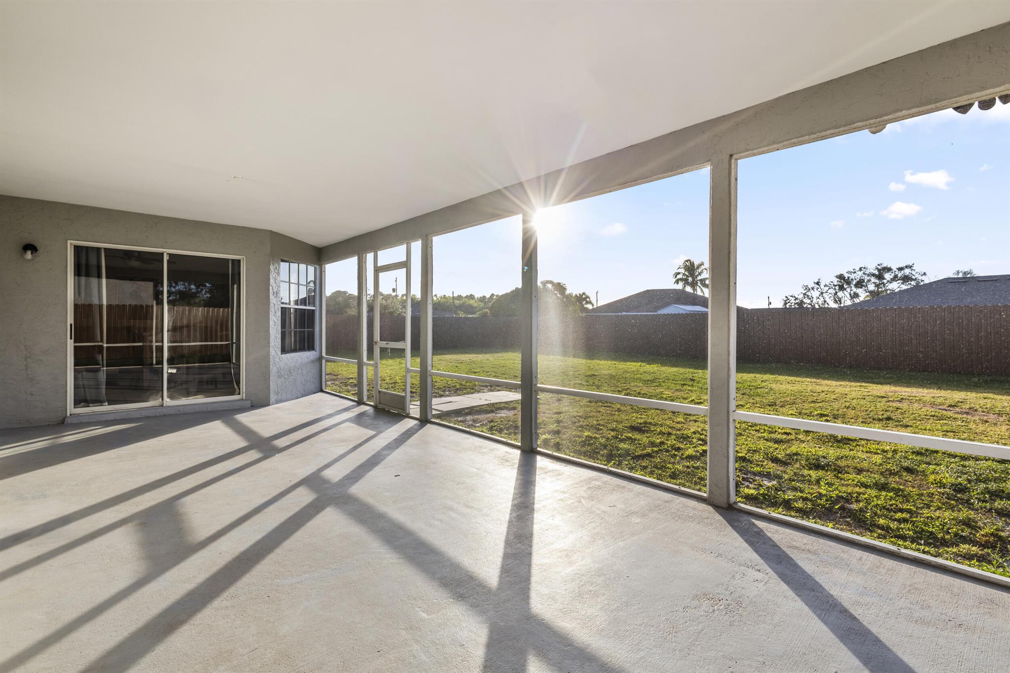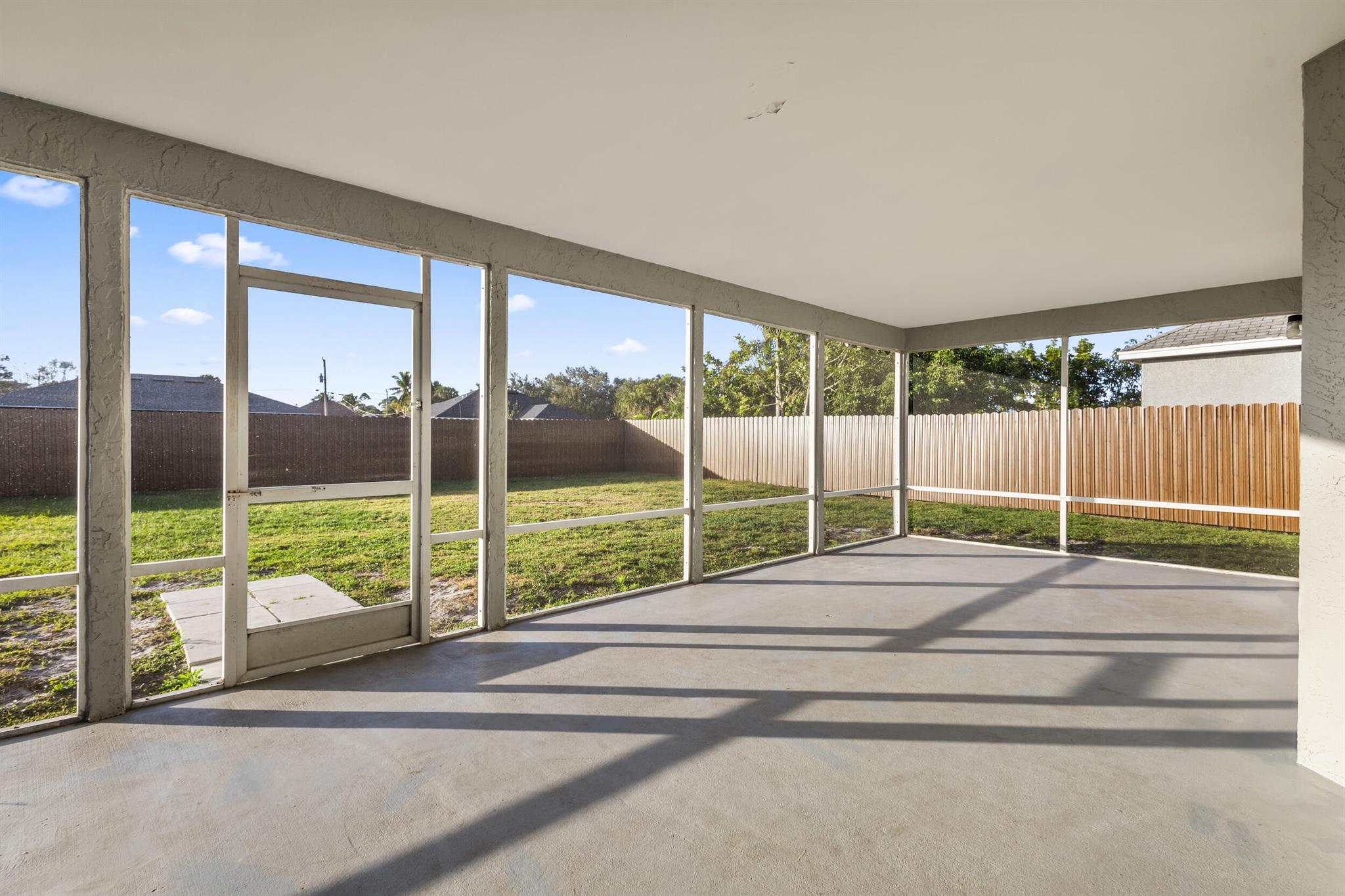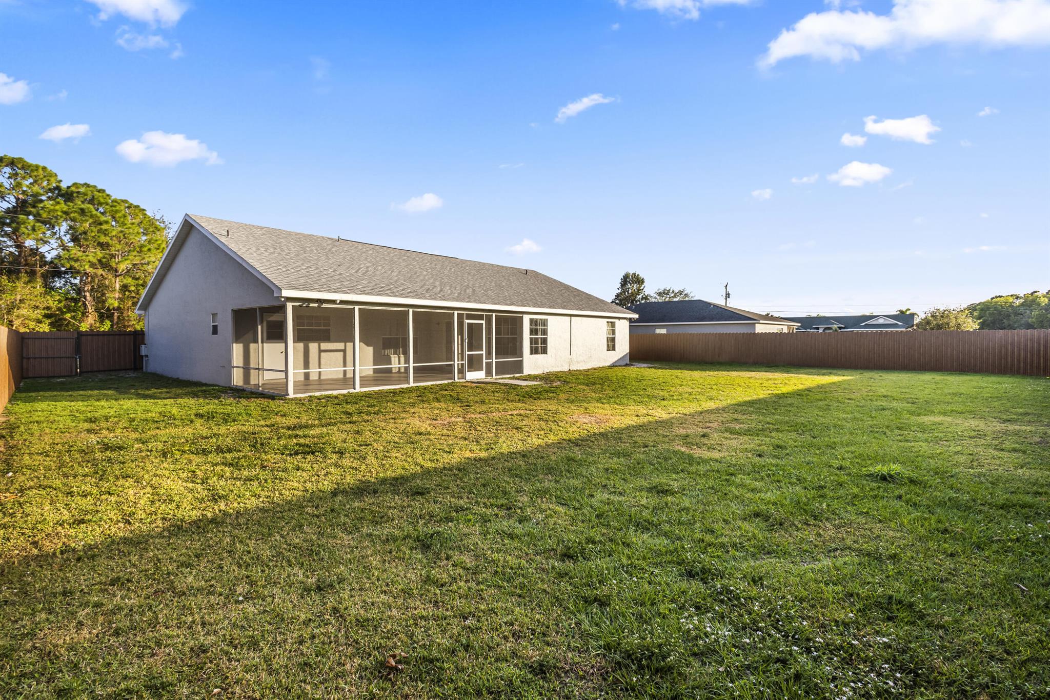 VERY MOTIVATED SELLER! Imagine a life where you can truly unwind--without the restrictions of an HOA. This charming 3-bedroom, 2-bathroom home has a NEW ROOF in a peaceful neighborhood is the perfect blend of comfort and convenience. This home features a high ceiling throughout, a BRAND NEW PRIVATE FENCED backyard, an enormous master bedroom and a large serene and screened patio. Inside includes a quasi open layout with a modern open-concept kitchen that's perfect for cooking and entertaining. Natural light pours into every room. The spacious master suite is a true retreat, featuring a luxurious tub and large walk-in shower, plus an impressive walk-in closet. The additional bedrooms offer plenty of space for children, guests, or a home office.Outside, your private, gated backyard awai