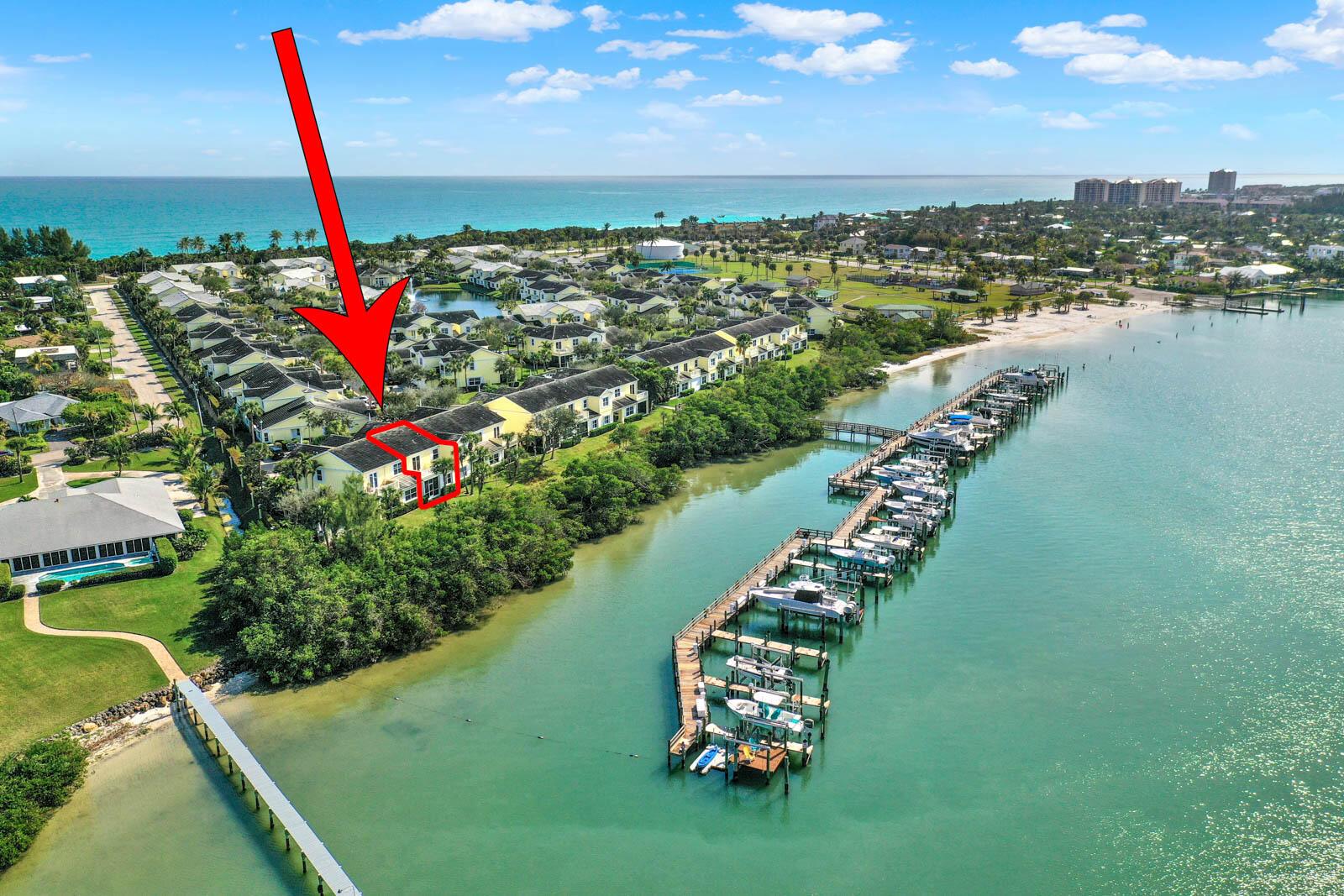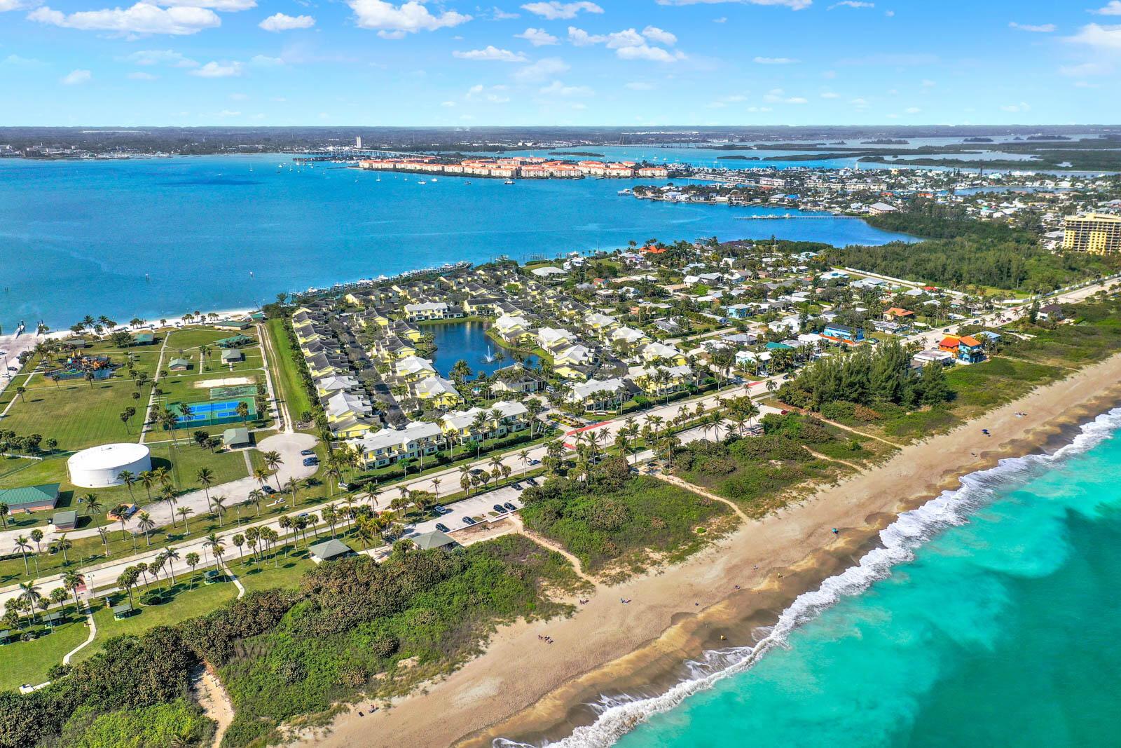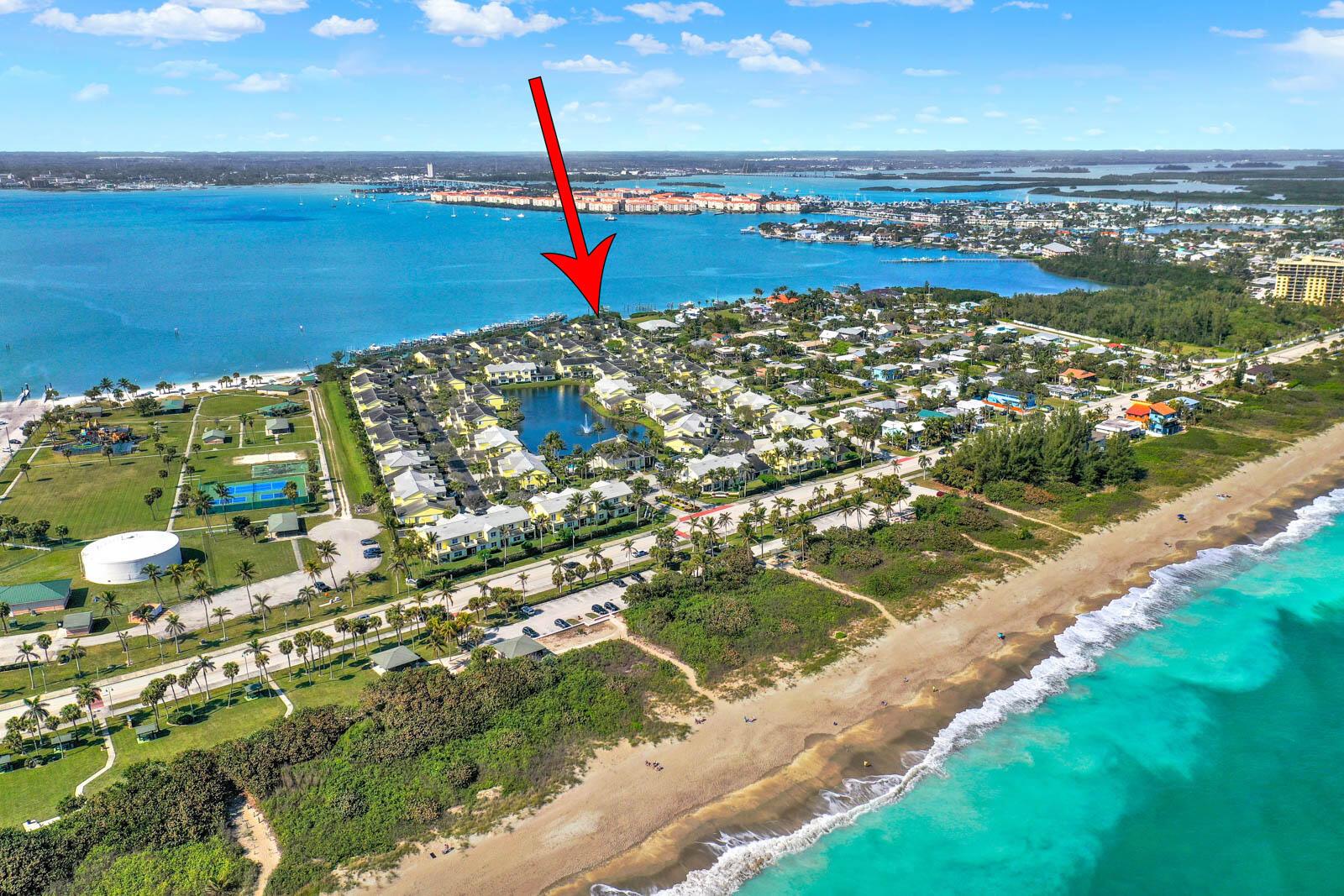 This lovely Townhouse is directly on the River. Walk out the front gate to the ocean. Uncrowded blue waterbeach with shower directly across the road. 3 bedrooms plus downstairs den 2.5 baths. Walk to restaurants and the beautiful Fort Pierce Inlet. Large 2 car garage. Docks may be available for rent or sale. Lifts are allowed if you own a boat slip. The pool has a sauna room. There is a fully equipped gym. Your chance to live in paradise and breathe the healthy ocean air. Owner prefers a cash deal.