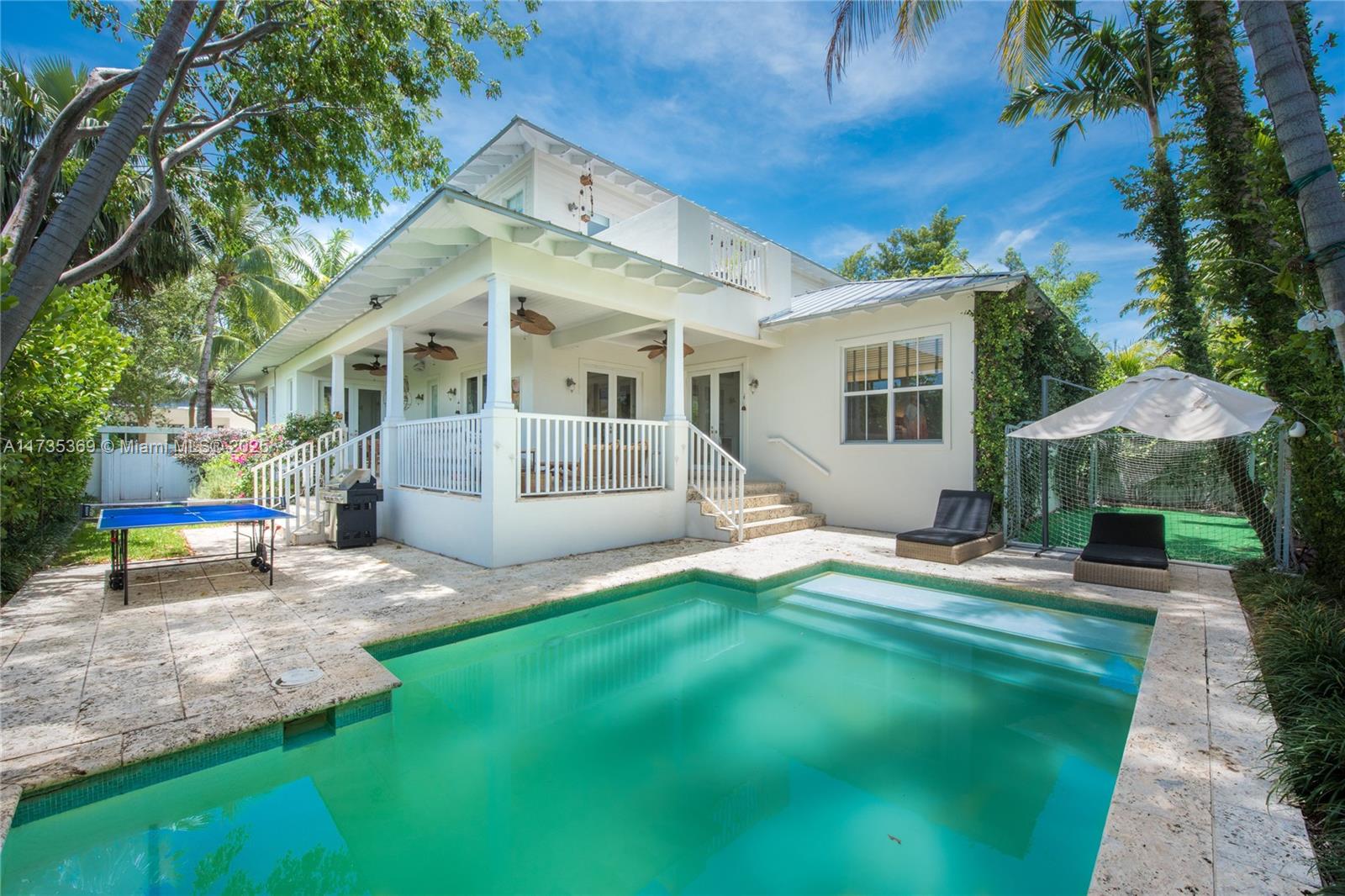 Great Location in the center of Key Biscayne, near the park, schools and Harbor Dr. for easy access. 4035 sq.ft. 1st floor: Formal Living room & Formal Dining Room. Remodeled kitchen with breakfast area connected to a huge, luminous and comfortable family room that opens to a covered terrace. Very big bedroom with full bath. Laundry with sink, cabinets and refrigerator. 2nd Floor: Master bedroom w/huge bathroom and build in wood closets. Junior suite with bathtub. 2 bedrooms that share one bath. Spacious L shape covered terrace. Pool with a lot of sun throughout the day. Wood Fence allows access to the street. Green fence creates a very private environment. Very luminous house, elevated, on sewer. Property is rented until June 30th 2025.