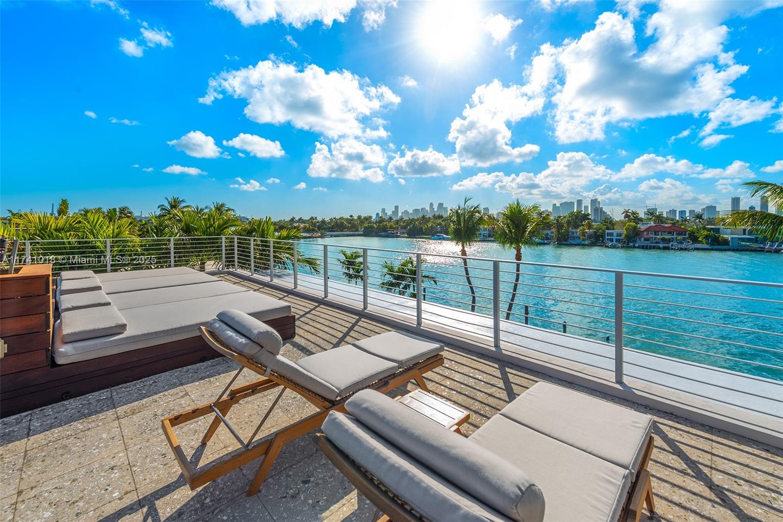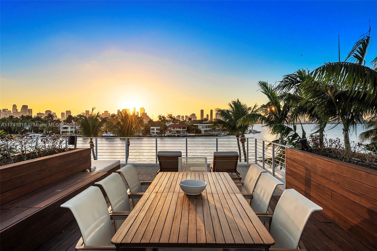 Stunning contemporary home on tropical Venetian Islands with 60-ft waterfrontage and dreamy Miami skyline and sunset views! Manicured to perfection, this luxe home features double-height foyer, sunlit living areas, gourmet kitchen, high ceilings, Crestron Control, terrazzo and marble floors, and elegant wood-paneled ceilings. Upstairs, an exceptional family room and indulgent master suite with generous walk-in closets and luxe bath. Amenities include dock, VIP guest suite, backyard oasis with saltwater infinity pool, patio for outdoor dining, sprawling rooftop with wet-bar, hot tub, and lounge beds, deep terrace with outdoor shower and access to backyard. Enjoy Miami’s waterfront lifestyle and all the best that South Beach and Miami can offer.Ideal for outdoor enthusiasts and entertainers!