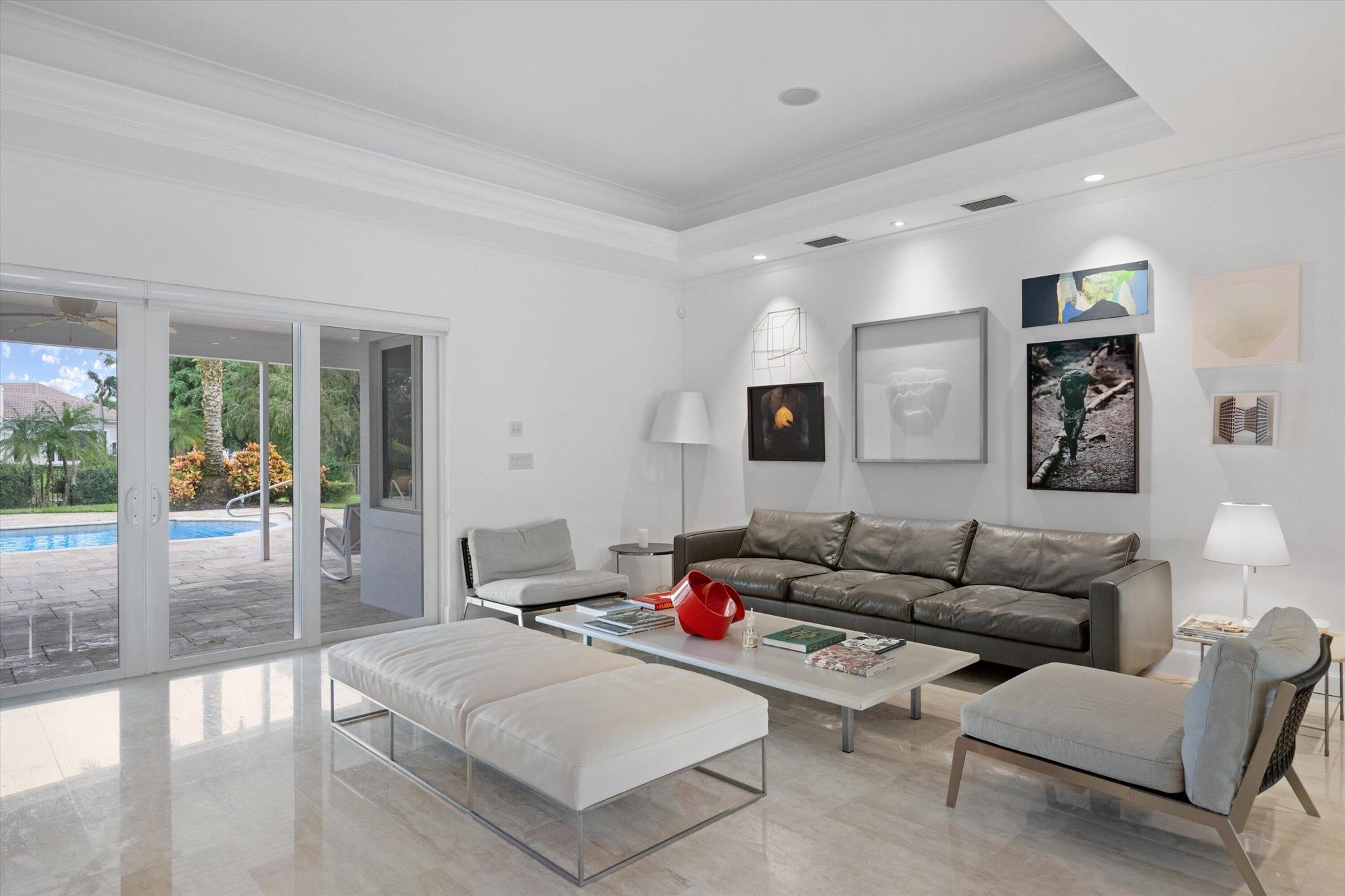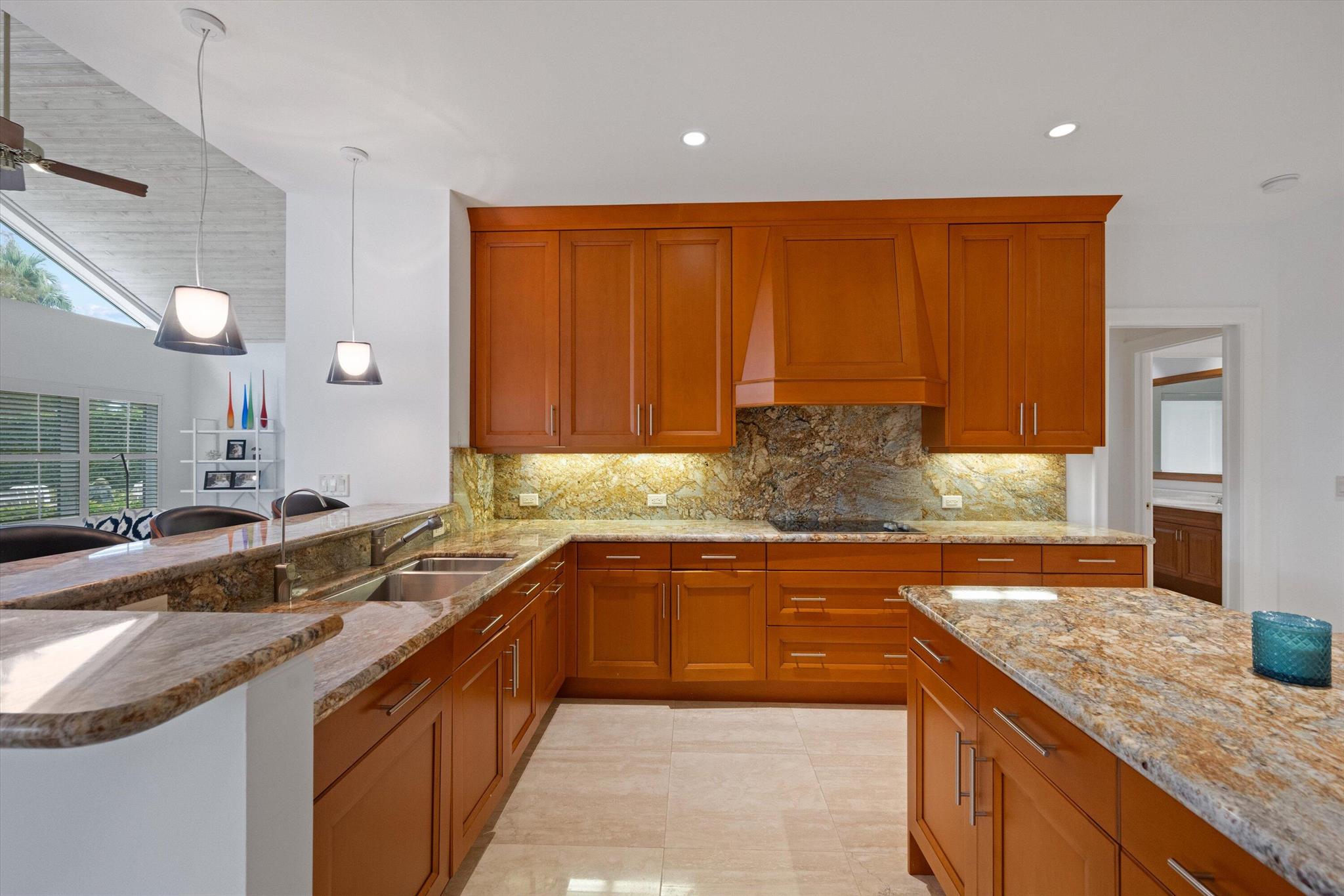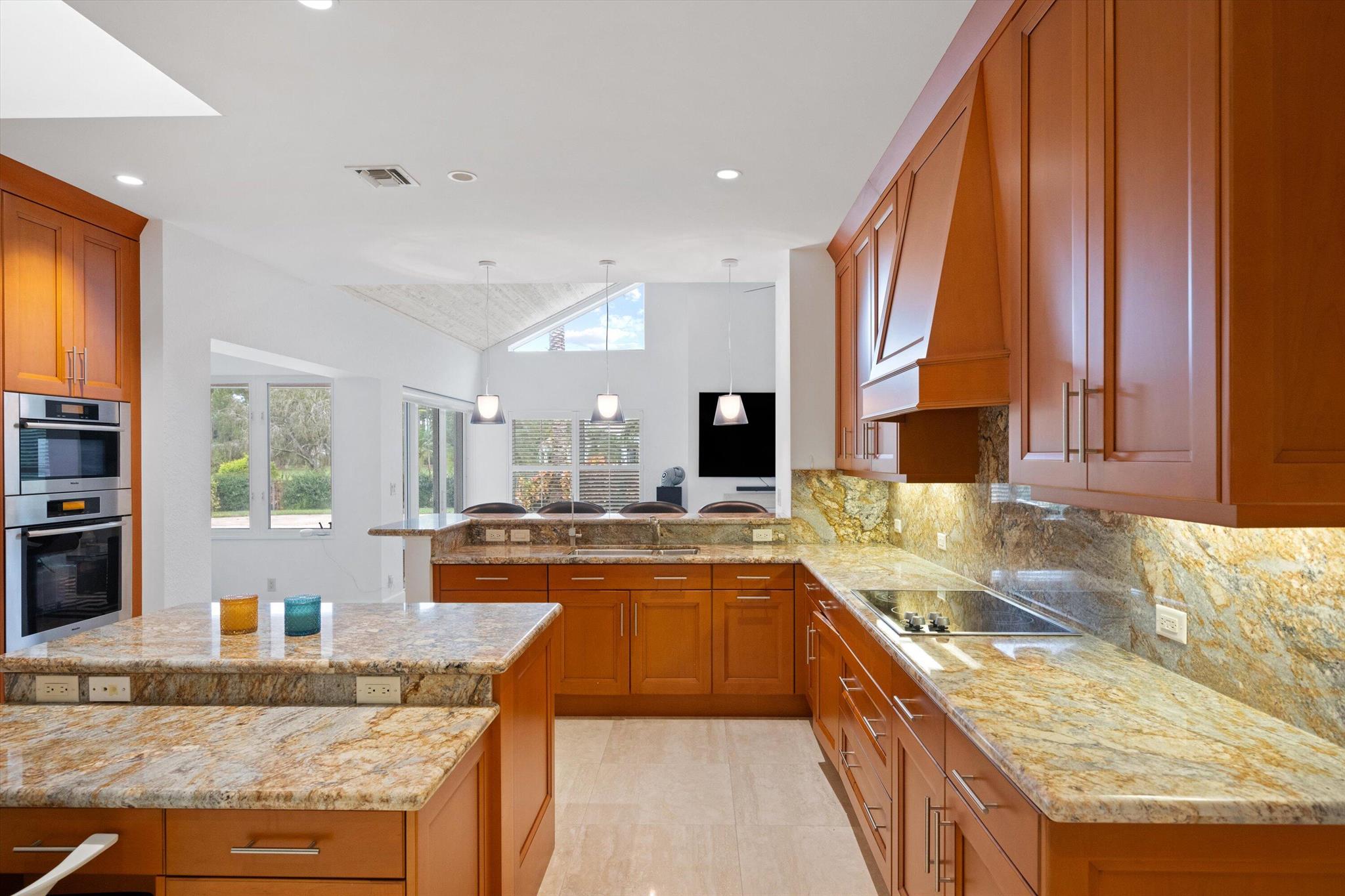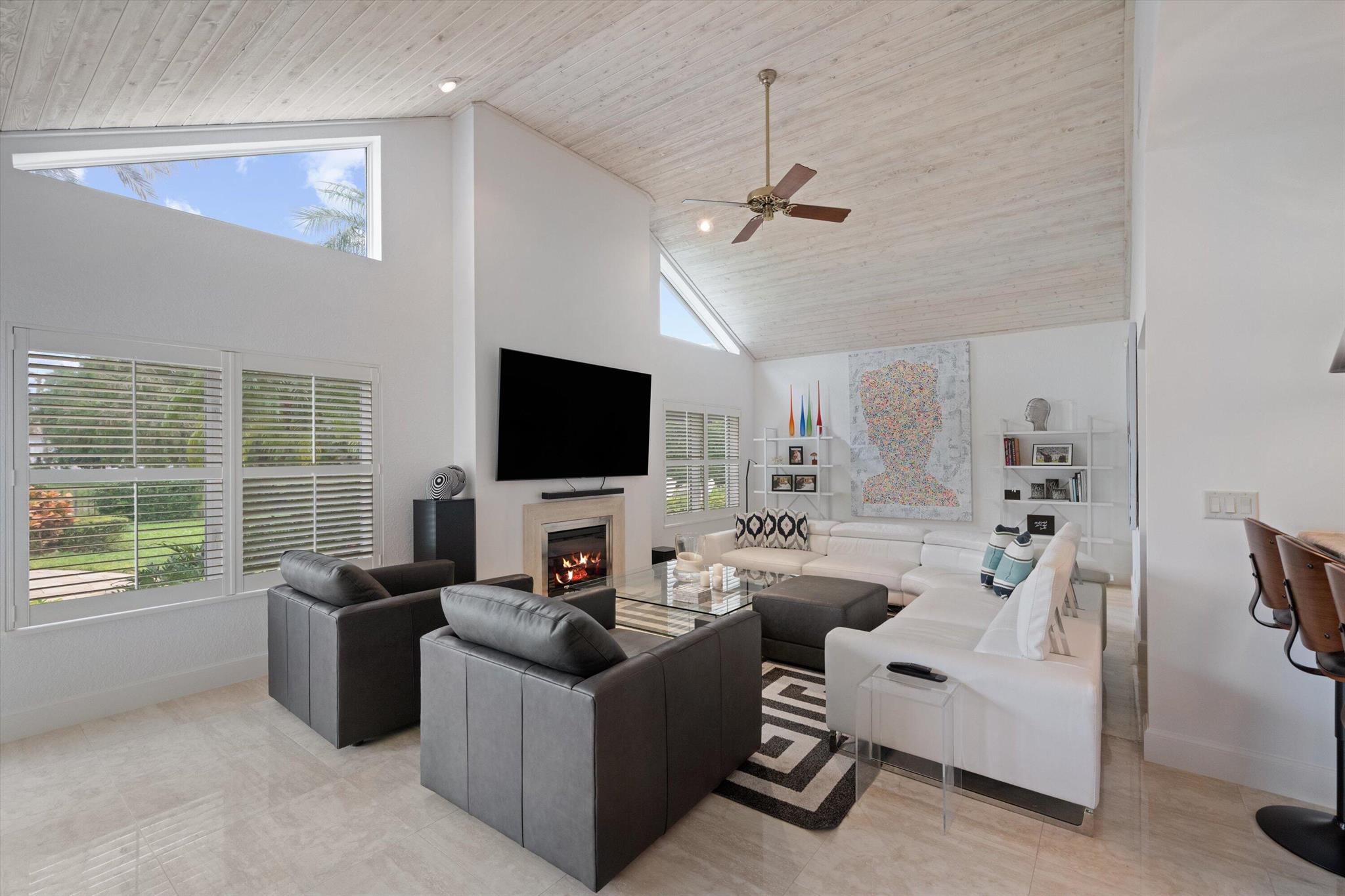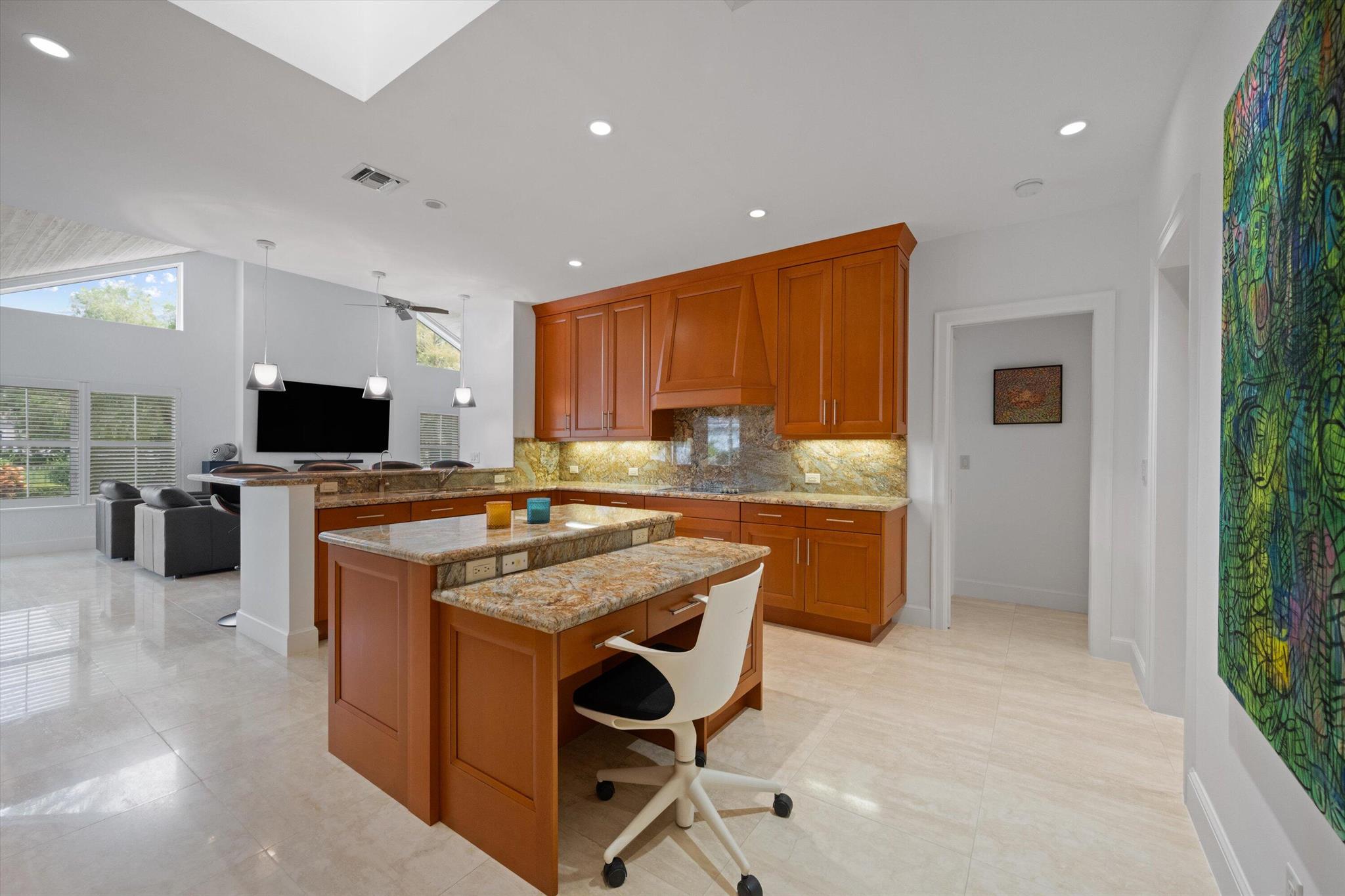 This stunning Palm Beach Bermuda-style home is perfectly positioned on a prime .54-acre lakefront lot in the heart of Breakers West. Move-in ready and impeccably updated, this home offers 3,500+ SF of spacious living, including 3 bedrooms, each with an ensuite bath, an office (or 4th bedroom), and a powder room.Offering impact windows & doors throughout for peace of mind;Gourmet chef's kitchen with custom Irpinia cabinetry, a large center island, granite counters & backsplash.Top-tier appliances: Sub-Zero refrigerator, Miele oven & dishwasher, KitchenAid cooktop.Sunny Living Room with recessed cove lighting, crown molding & sliding doors leading to the outdoor entertaining areaFormal Dining Room conveniently