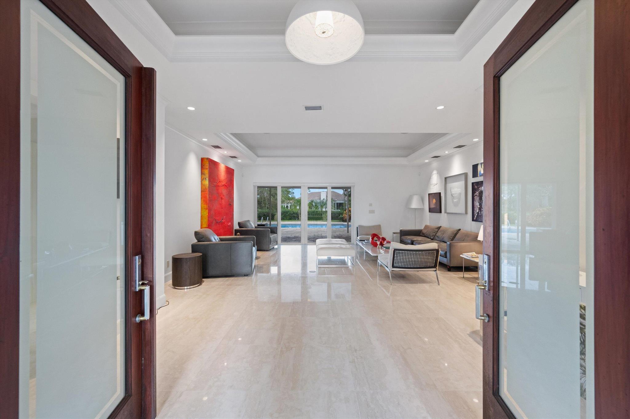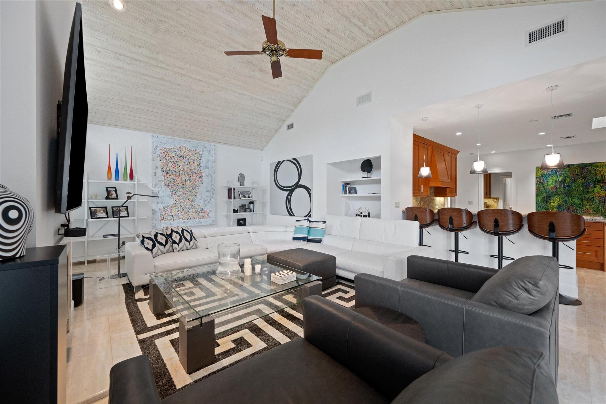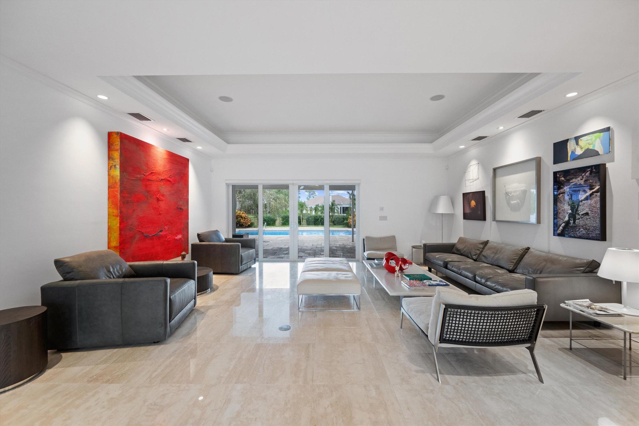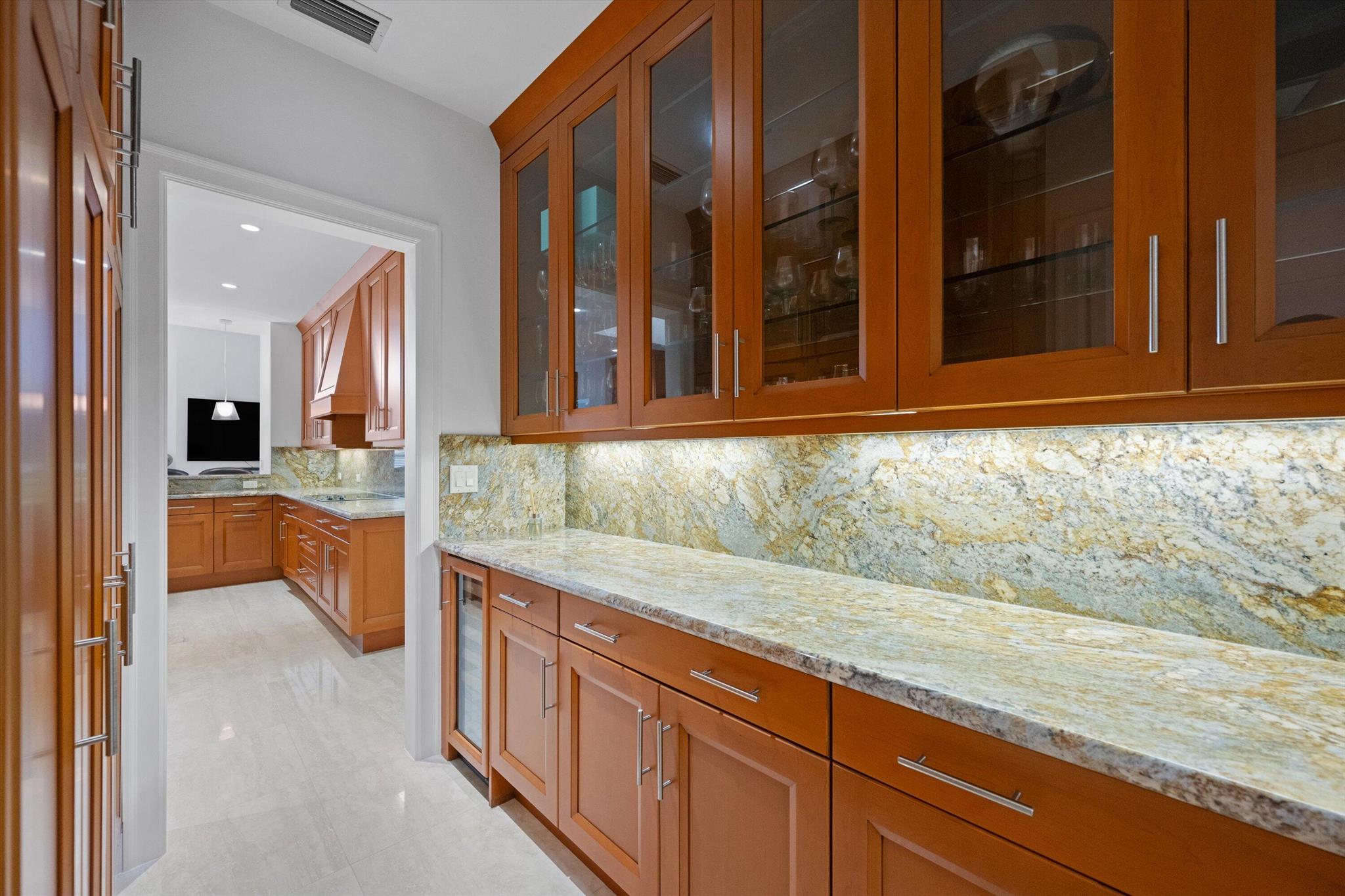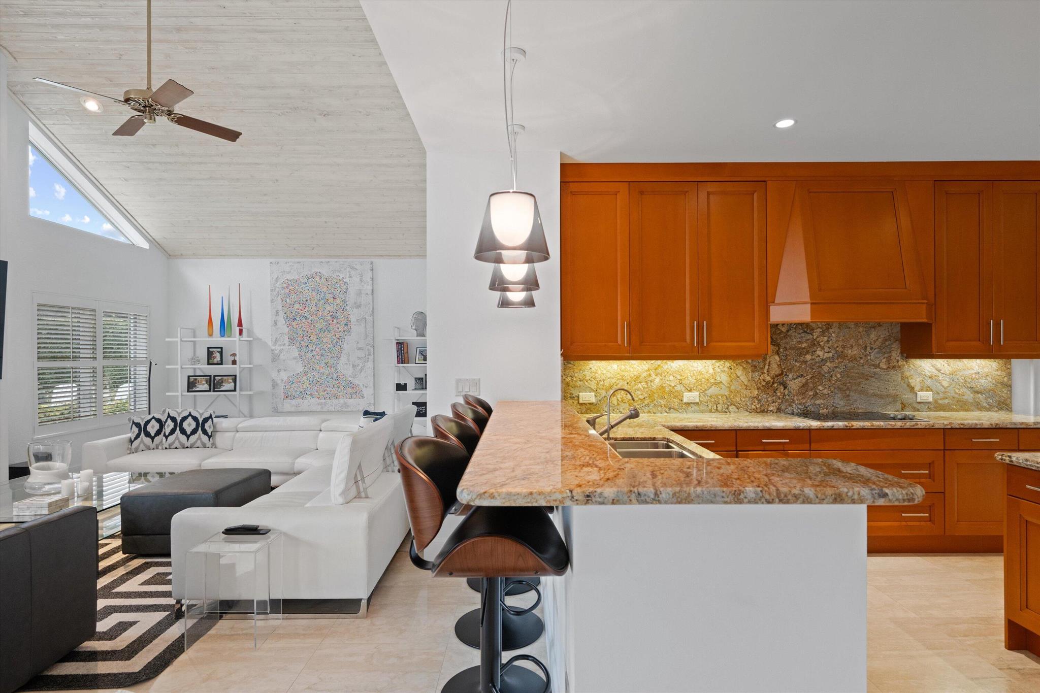 This stunning Palm Beach Bermuda-style home is perfectly positioned on a prime .54-acre lakefront lot in the heart of Breakers West. Move-in ready and impeccably updated, this home offers 3,500+ SF of spacious living, including 3 bedrooms, each with an ensuite bath, an office (or 4th bedroom), and a powder room.Offering impact windows & doors throughout for peace of mind;Gourmet chef's kitchen with custom Irpinia cabinetry, a large center island, granite counters & backsplash.Top-tier appliances: Sub-Zero refrigerator, Miele oven & dishwasher, KitchenAid cooktop.Sunny Living Room with recessed cove lighting, crown molding & sliding doors leading to the outdoor entertaining areaFormal Dining Room conveniently
