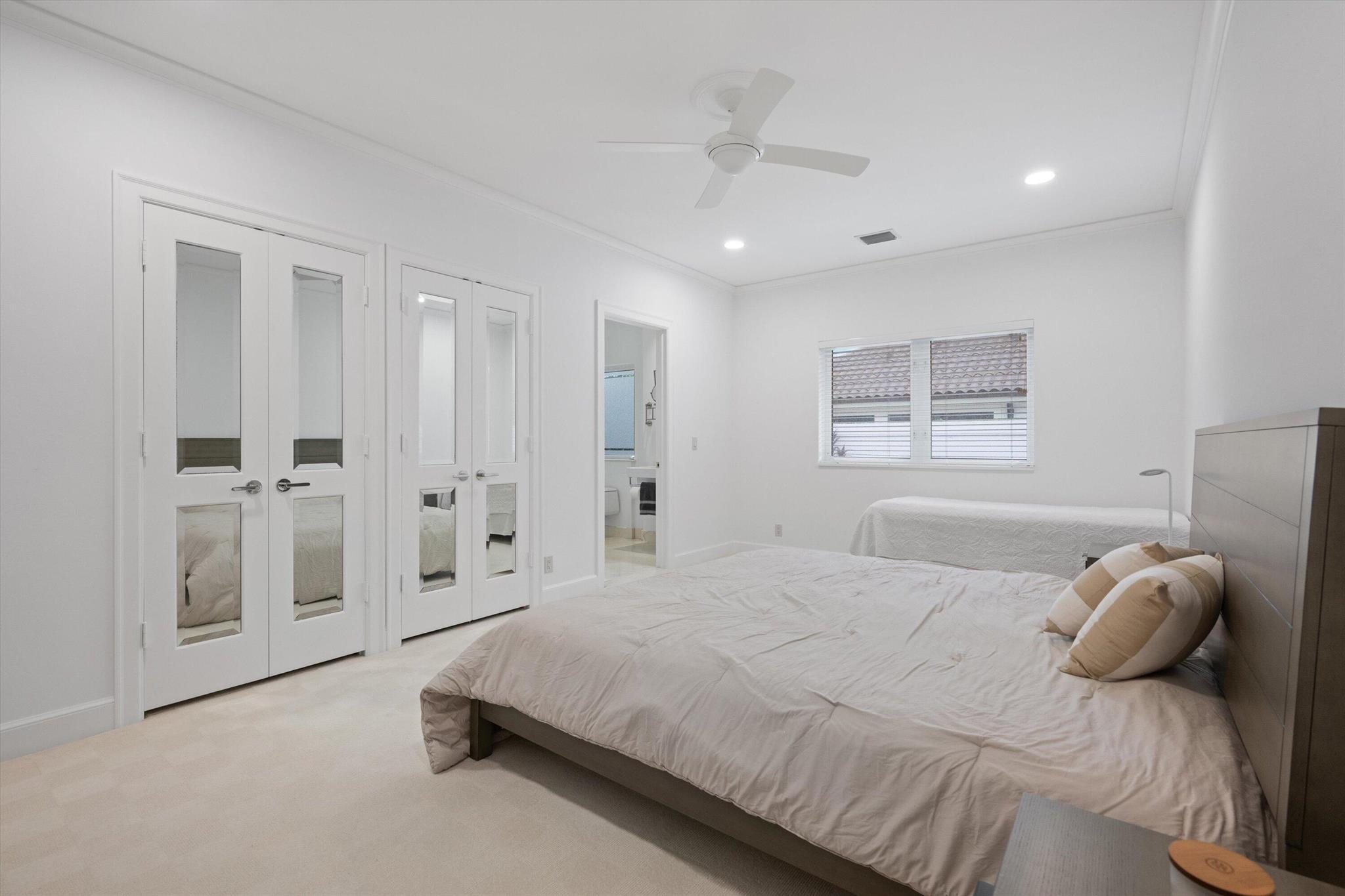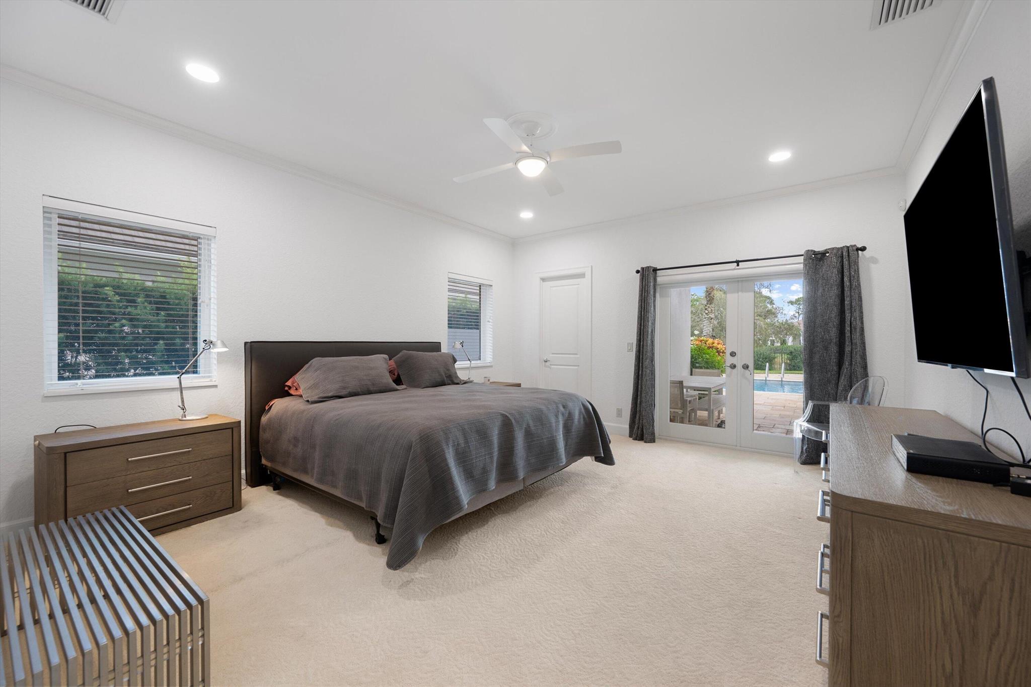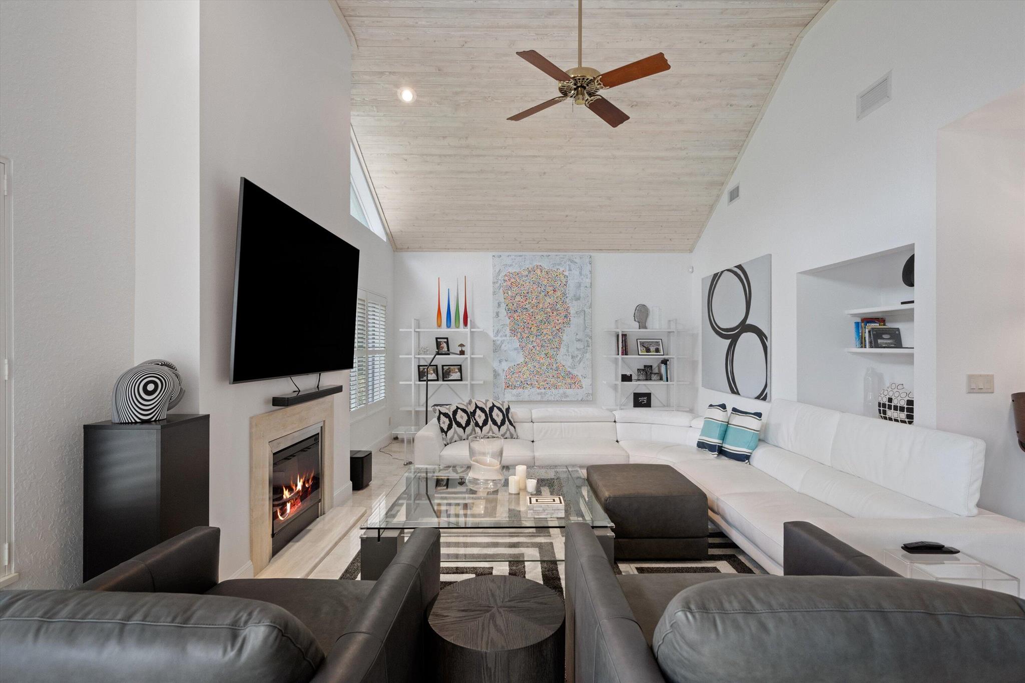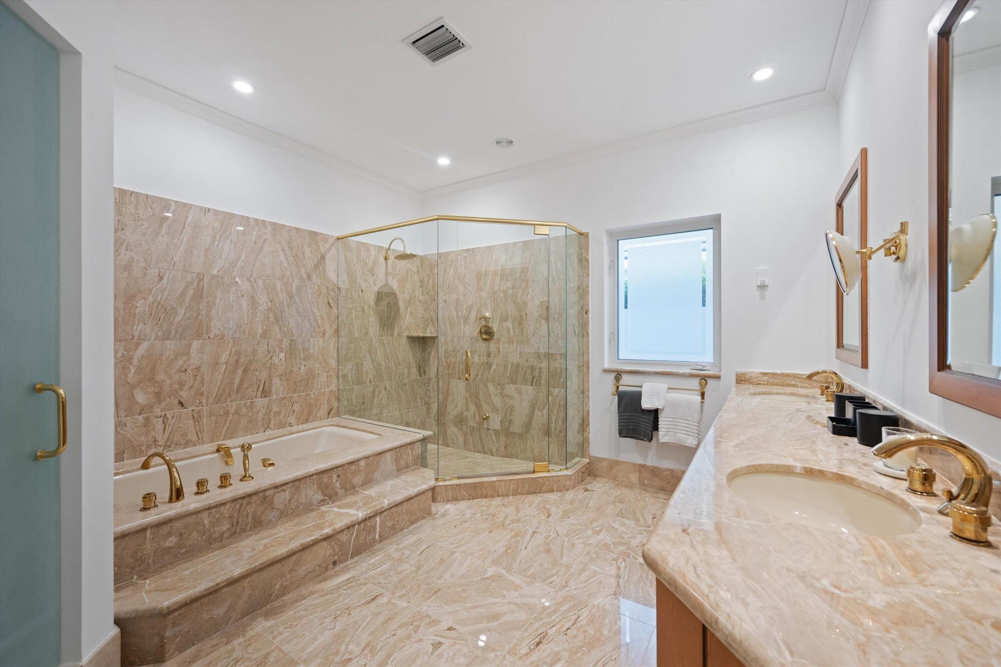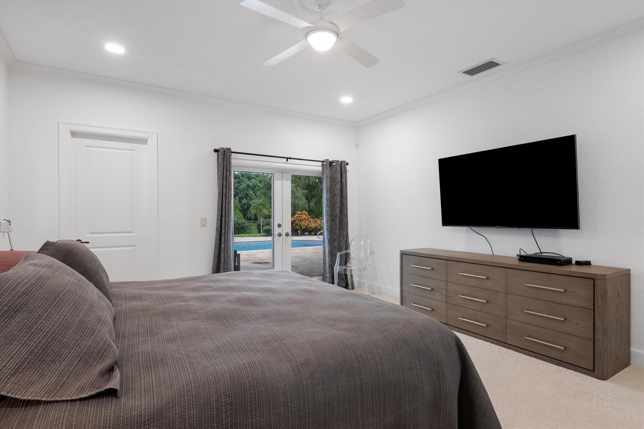 This stunning Palm Beach Bermuda-style home is perfectly positioned on a prime .54-acre lakefront lot in the heart of Breakers West. Move-in ready and impeccably updated, this home offers 3,500+ SF of spacious living, including 3 bedrooms, each with an ensuite bath, an office (or 4th bedroom), and a powder room.Offering impact windows & doors throughout for peace of mind;Gourmet chef's kitchen with custom Irpinia cabinetry, a large center island, granite counters & backsplash.Top-tier appliances: Sub-Zero refrigerator, Miele oven & dishwasher, KitchenAid cooktop.Sunny Living Room with recessed cove lighting, crown molding & sliding doors leading to the outdoor entertaining areaFormal Dining Room conveniently