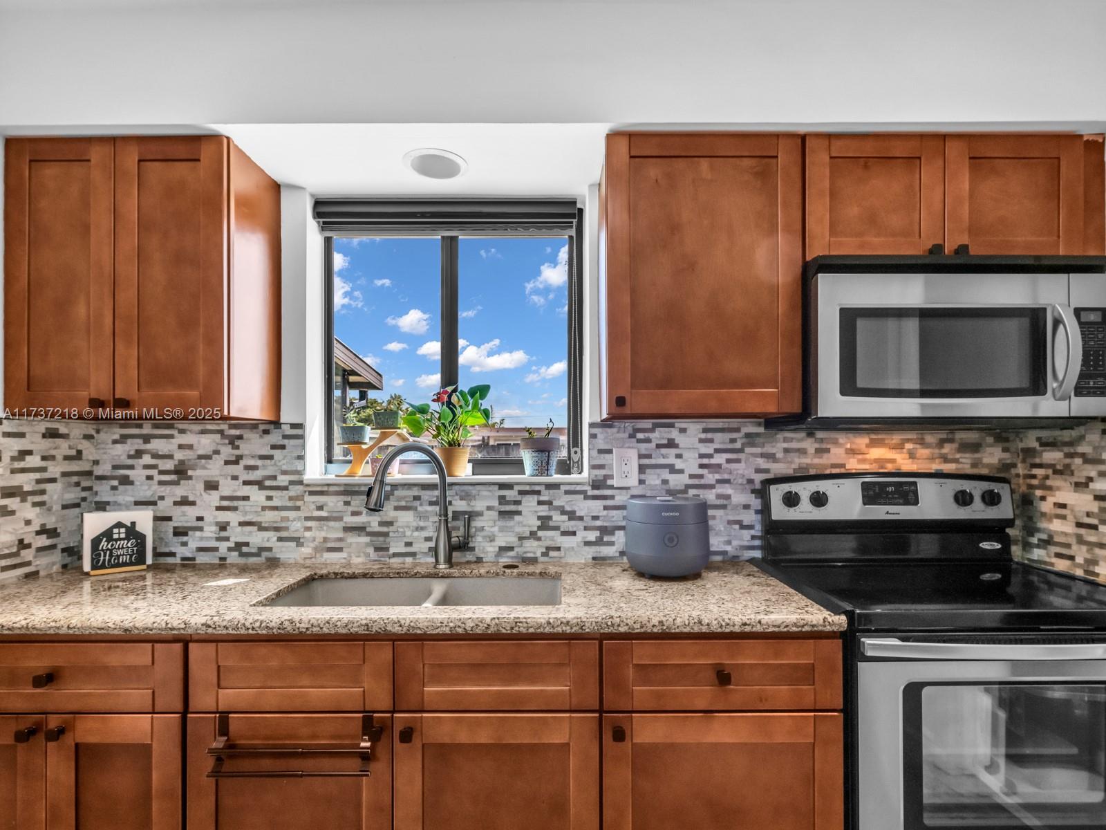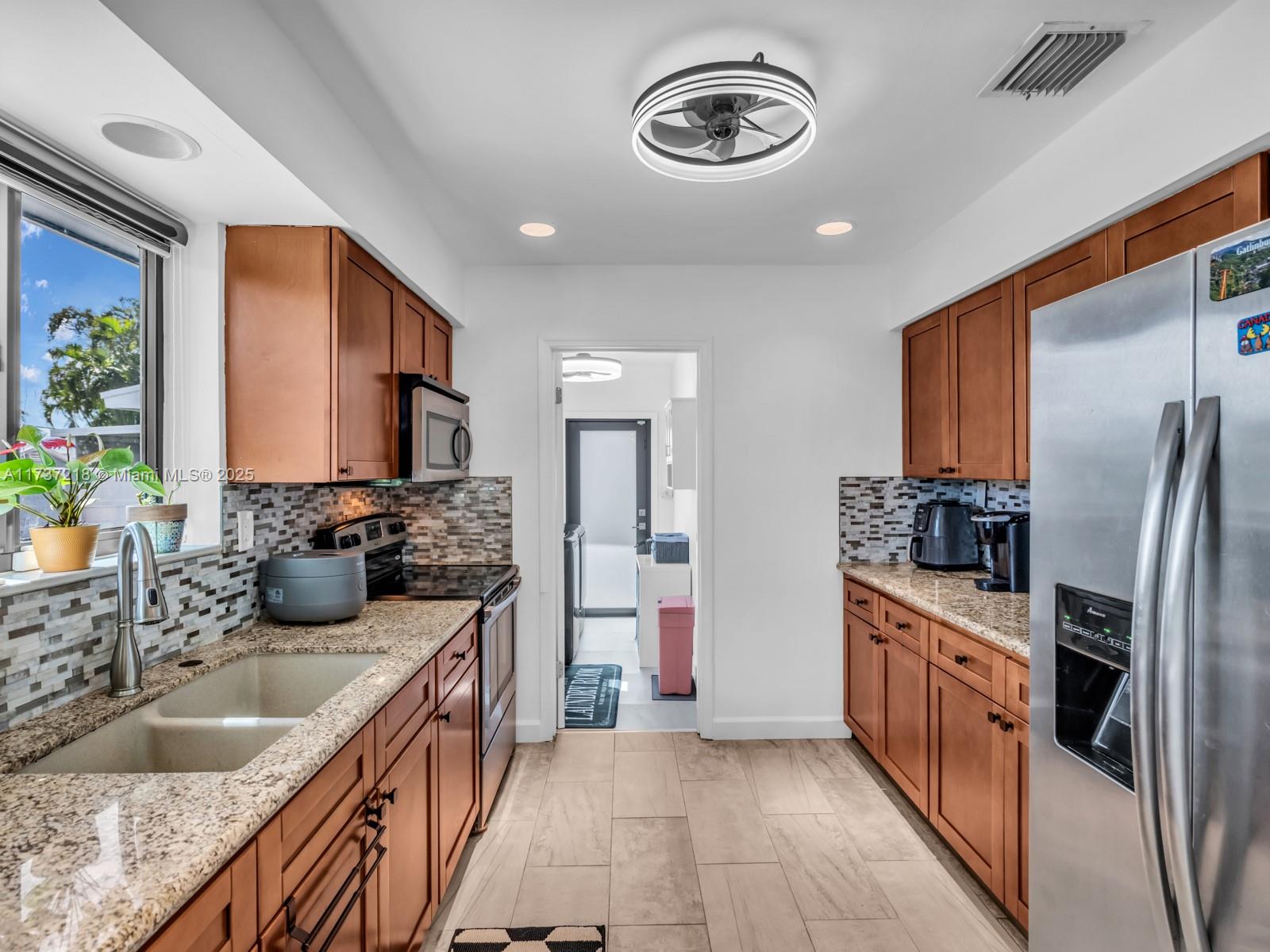 Charming and modern 2-bedroom, 1-bath home in the heart of Pembroke Pines! Enjoy serene canal views from the patio, perfect for relaxing or entertaining. This upgraded home features impact windows and doors, solar panels, a smart lock system, Zebra blinds, and a canal-fed sprinkler system. Modern kitchen with granite countertops, and stylish tile flooring. Additional highlights include a 2018 roof, a tankless water heater, a 2-year-old AC, and a shed for storage. The garage is currently used as 3rd bedroom but could be reverted. No HOA! Move-in ready and perfect for modern living. Don’t miss this opportunity!