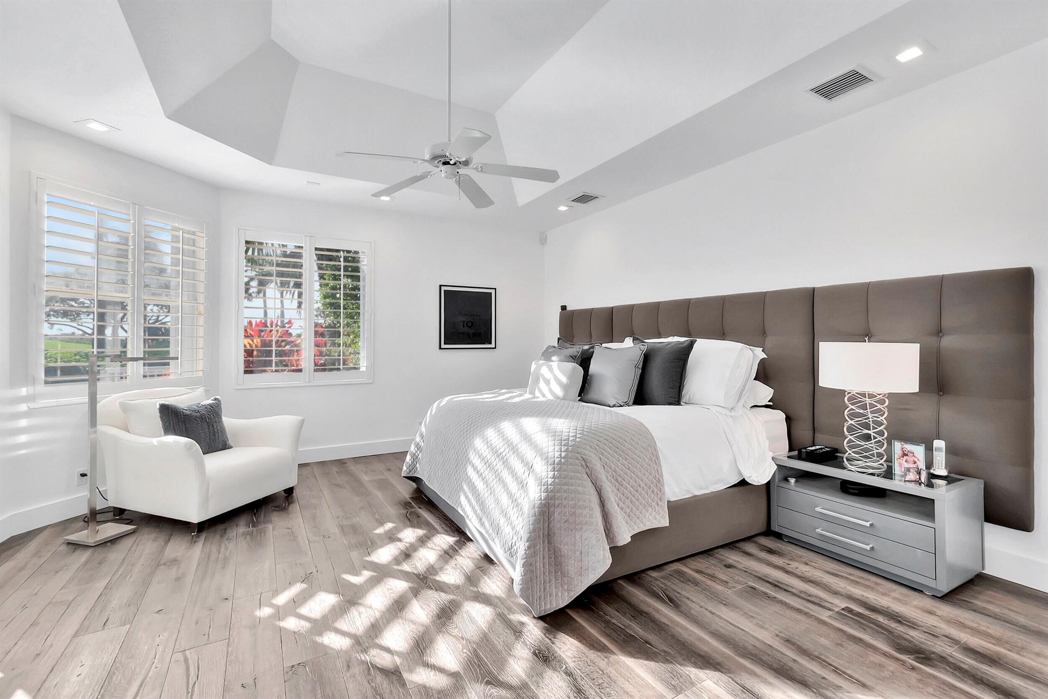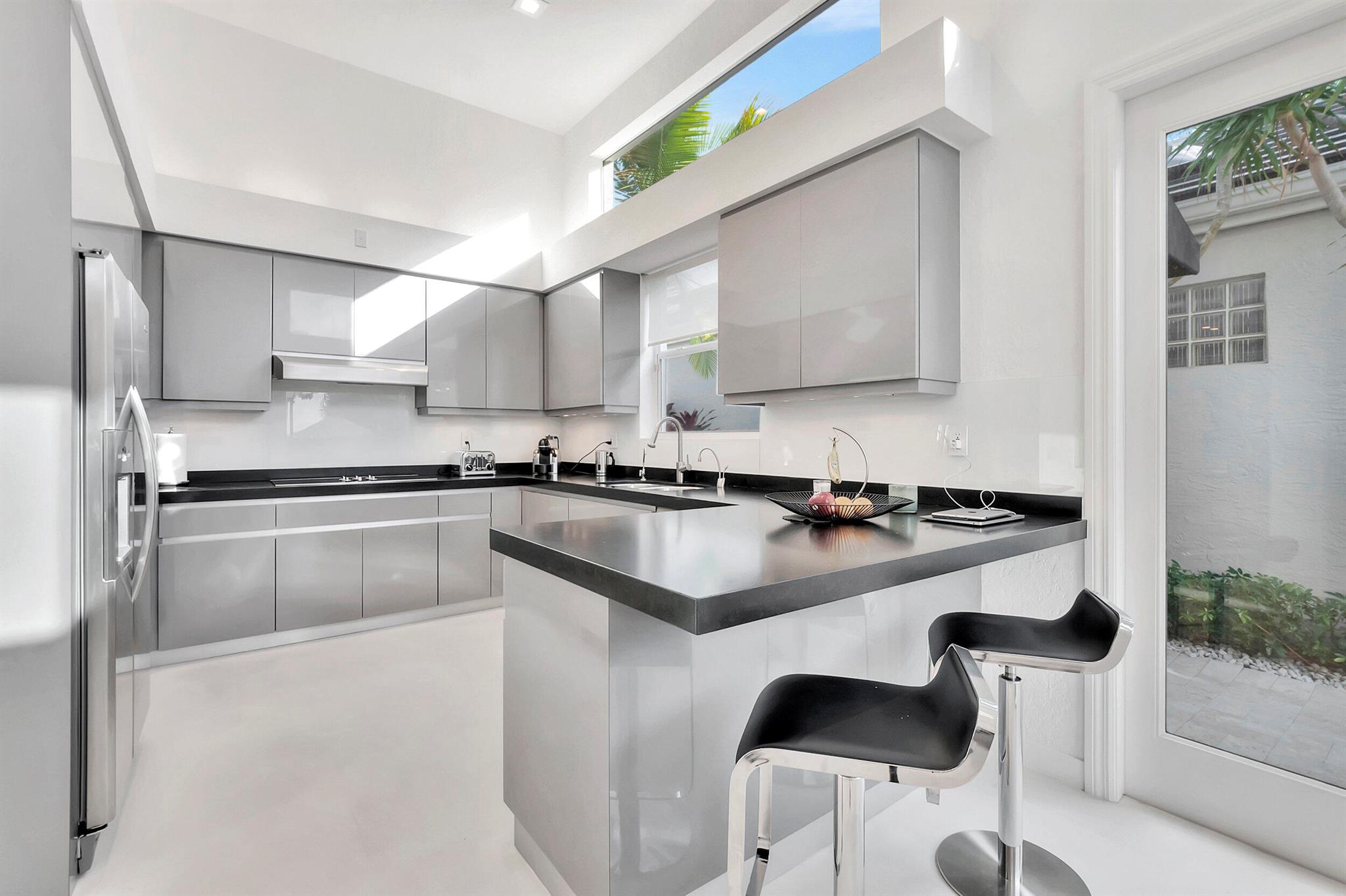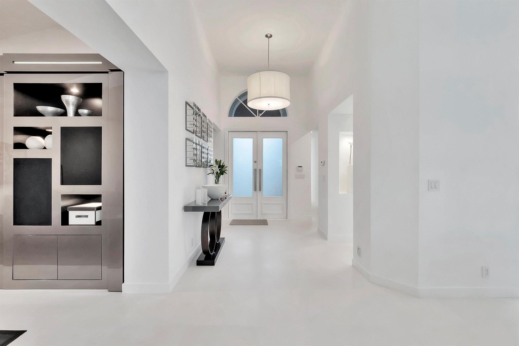 Situated along the golf course, this fully updated 4 BD + den/office / 3.5 BA home in Clubside at Woodfield Country Club offers spectacular views. Vaulted ceilings throughout enhance the sense of space, while sliding doors and expansive windows along the back flood the interior with natural light. White limestone floors create a seamless, open feel, complementing the sleek, modern kitchen outfitted with high-gloss gray cabinetry, dark countertops, and stainless steel finishes. Two stylish dining areas, adorned with chic light fixtures, provide the perfect setting for effortless entertaining and enjoying meals prepared in this stunning culinary space. Outside, the pool area exudes contemporary elegance, featuring a shaded patio ideal for al fresco dining.