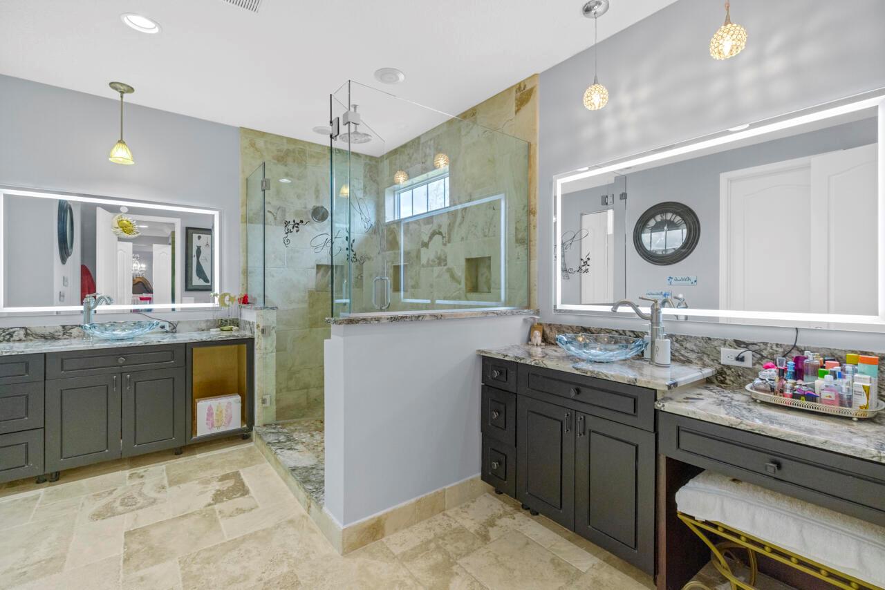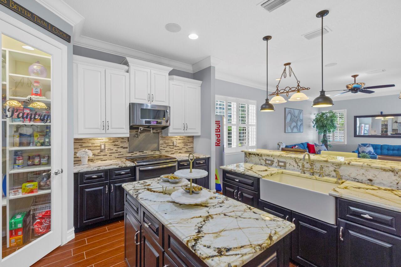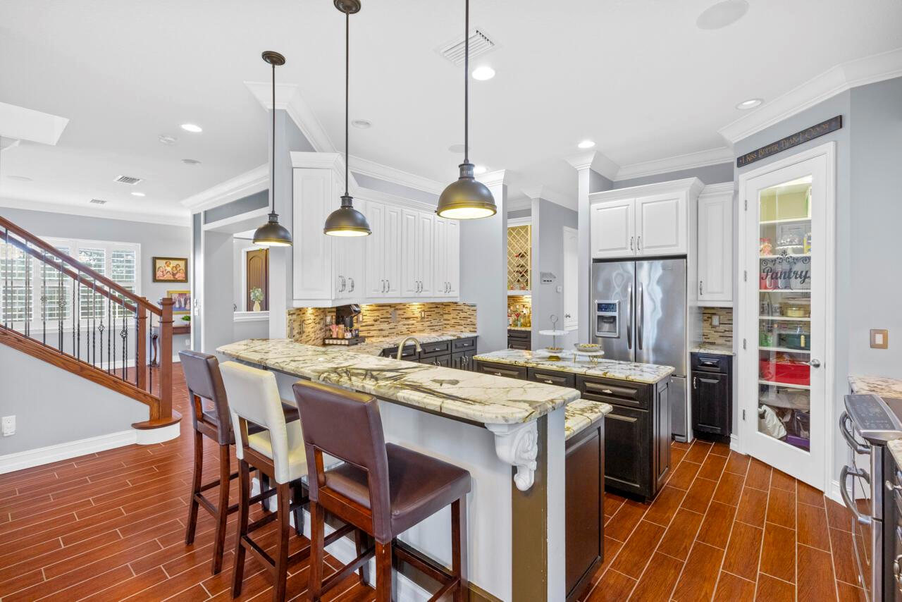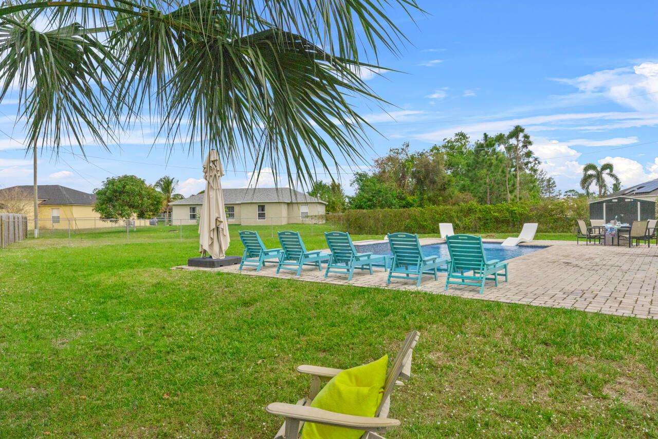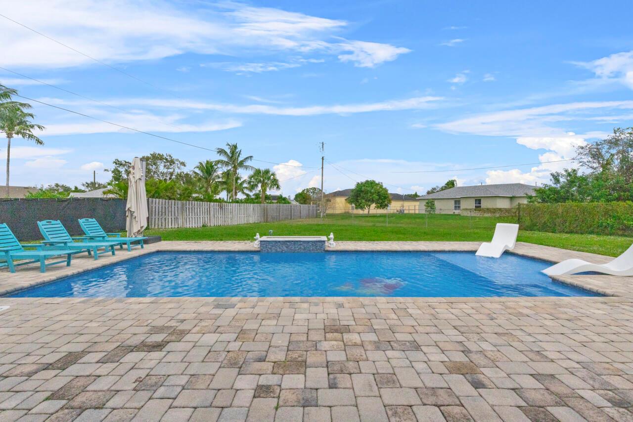Discover the stunning custom-built gem nestled in a tranquil cul-de-sac in Port St. Lucie. This exquisite 5 bedroom, 4 bathroom 3 car garage home offers the perfect blend of comfort and style, complete with a private pool that's ideal for relaxation and entertaining. The chef's kitchen is a dream with marble countertops and stainless steel appliances, with a custom wine bar. The large primary suite offers his and hers walk-in closets and vanities. With thoughtfully designed living spaces and high-quality finishes throughout, this home is a true sanctuary. Plus, the home is equipped with fully interior and exterior security system for peace of mind. Whether you're hosting gatherings or seeking a peaceful retreat, this property provides an exceptional living experience.