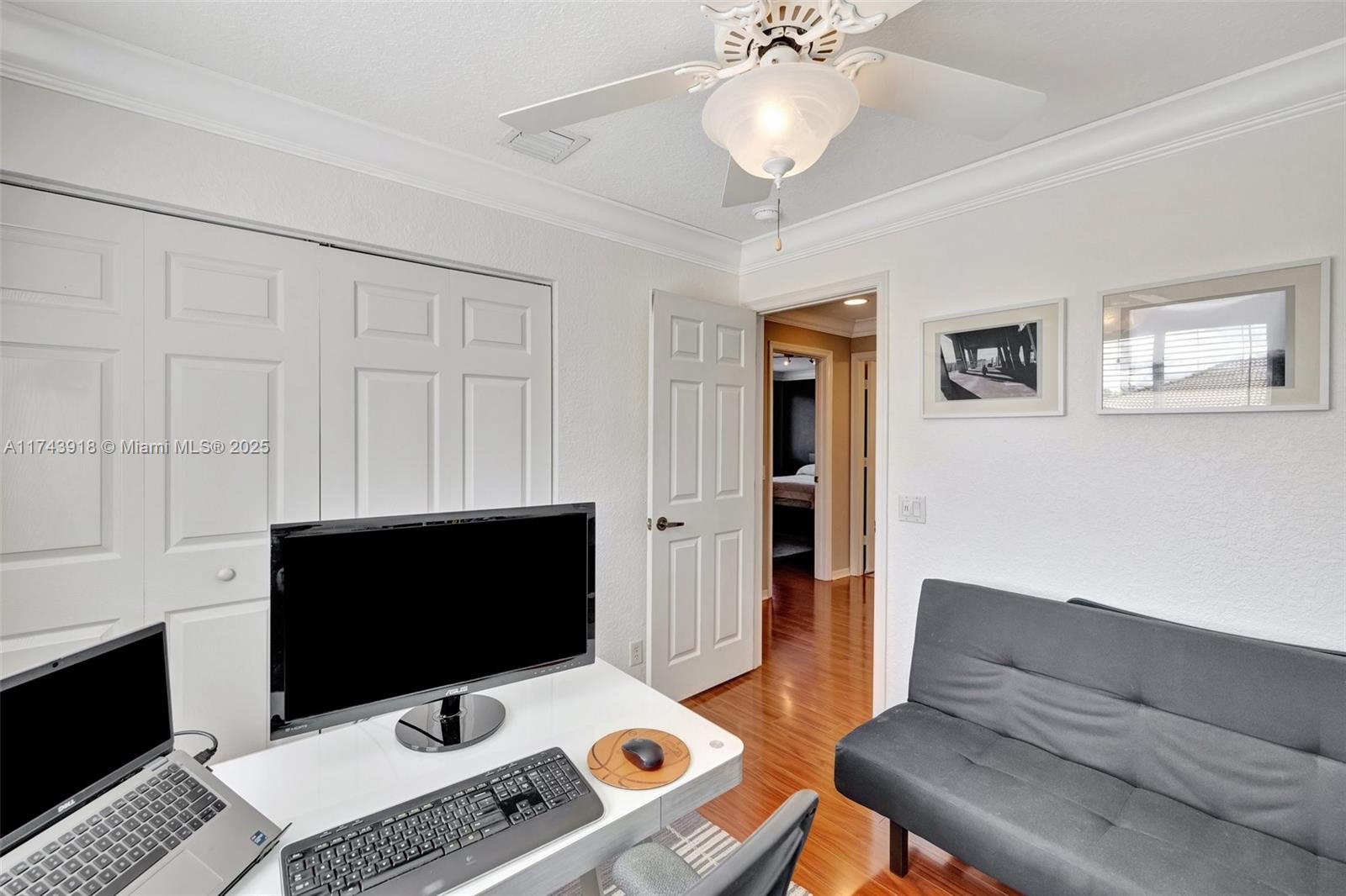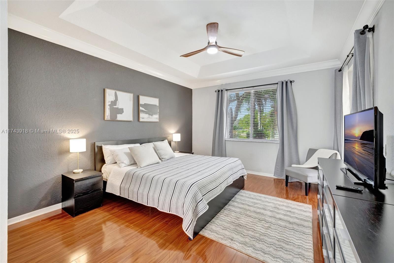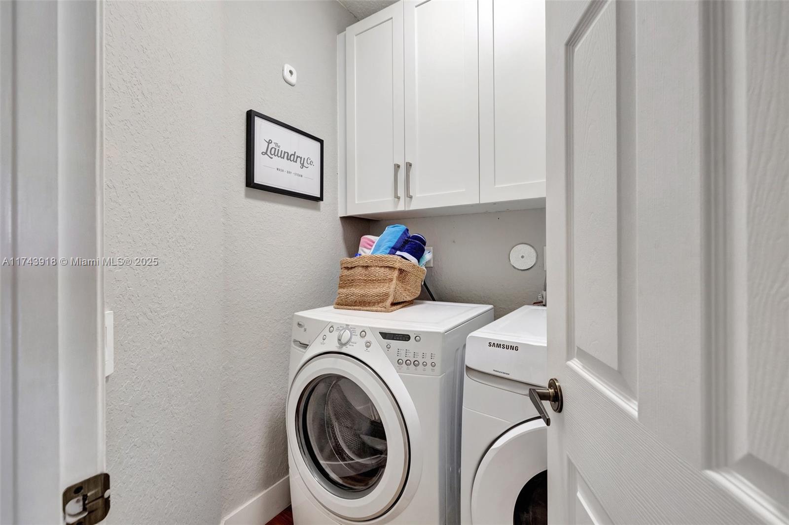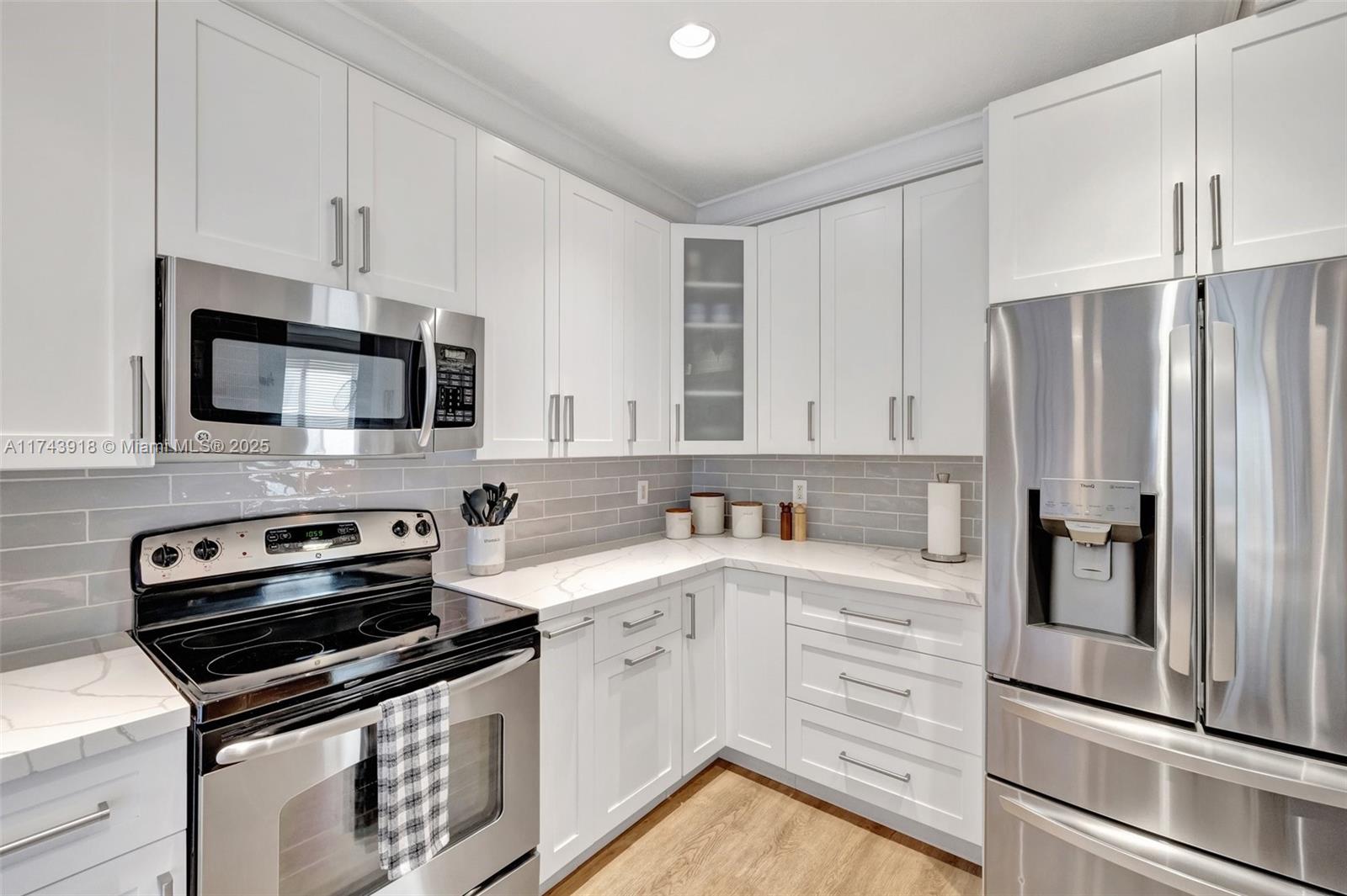 This pristine residence showcases the sought-after Windmill Elite floorplan, featuring upgrades that make this property truly exceptional. High ceilings & elegant foyer welcome you home, leading into the formal living area. Beautifully renovated kitchen meets the highest standards of modern style & functionality. Quartz counters, waterfall edge, two-tone cabinetry in crisp white & sophisticated grey, pullouts, new LG fridge, storage beneath island. Primary suite on 1st floor. Half-bath & 2nd bath renovated. New flooring, baseboards, light fixtures & dimmers. Laundry w/new dryer. Crown molding, trim around windows. Sliding doors to patio & a cozy seating space. New 5-ton A/C. Hurricane shutters, impact front door, workbench in garage perfect for DIY. Your exquisite living experience awaits!