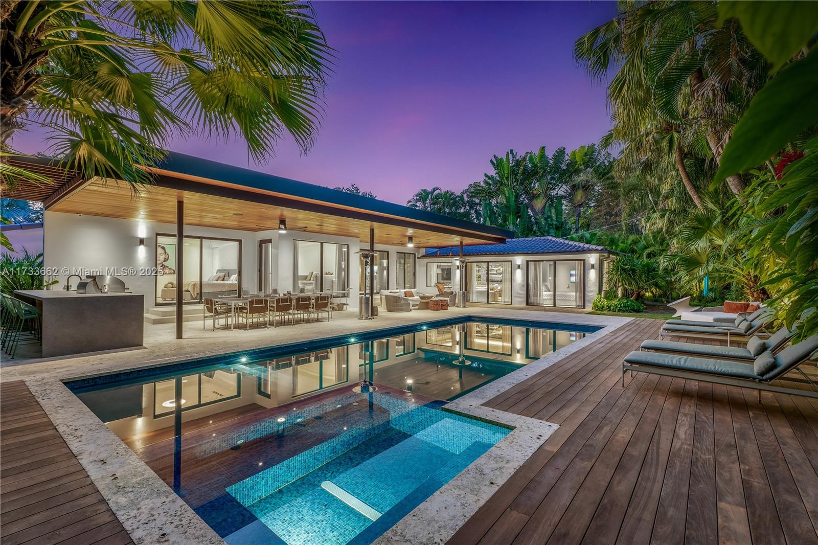 Experience elegance with this fully renovated 4-bed,3.5-bath home by Design Solutions. The Coral Rock façade sets the tone for a sophisticated interior featuring a gourmet kitchen with a waterfall marble island, custom European cabinetry, and a glass-enclosed wine wall. Media lounge impresses with a backlit marble feature wall and custom shelving, while the sunroom offers a lush green wall, wraparound seating, and skylight roof. The primary suite boasts bespoke millwork and a spa-inspired bath with floor-to-ceiling marble and a rain shower. Floor-to-ceiling glass doors lead to a resort-style deck surrounded by lush landscaping. New Installed roof, great floor plan, two-car garage, and close to the Venetian Pool, Salvatore Park, Biltmore Hotel, and the area’s top public and private schools.