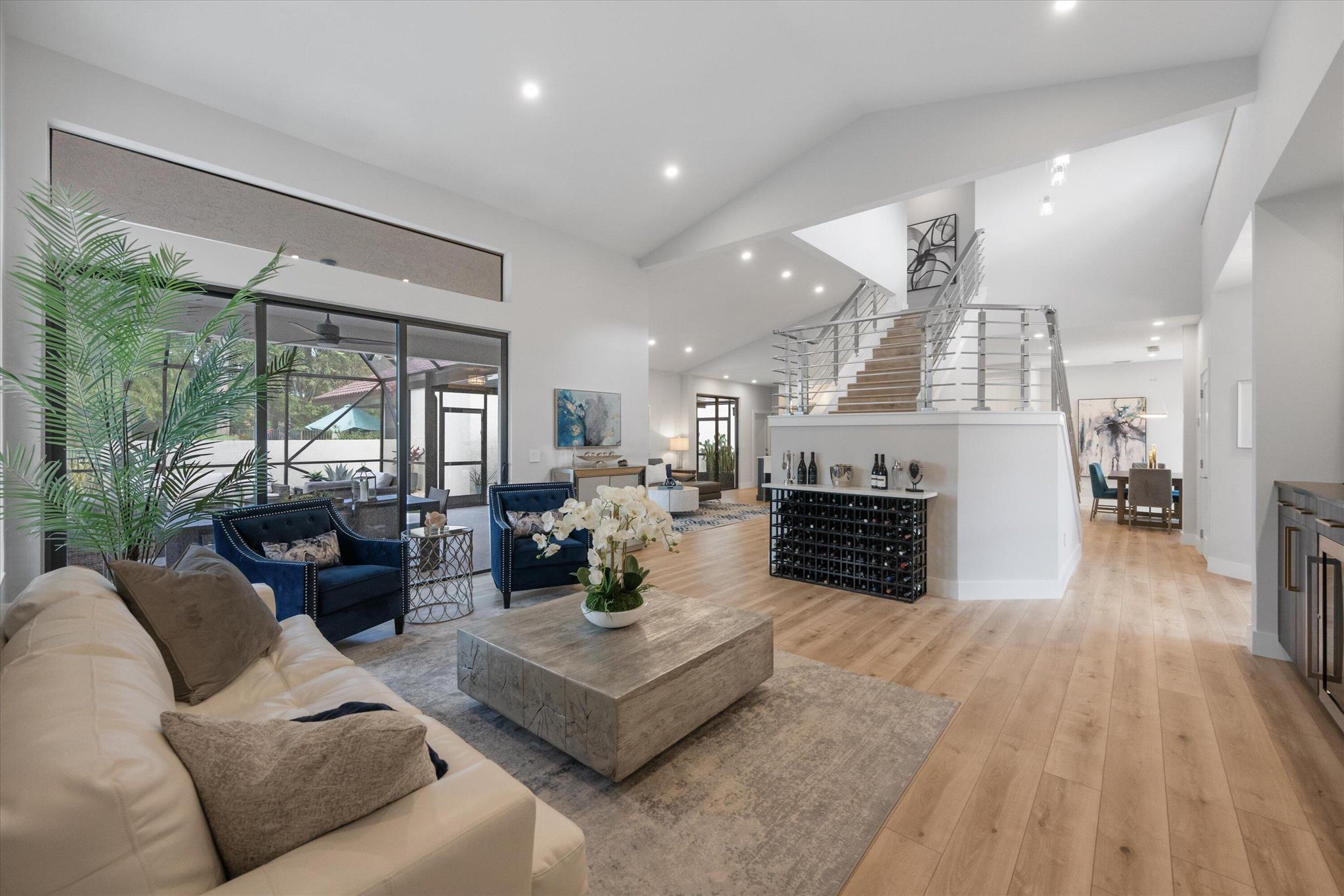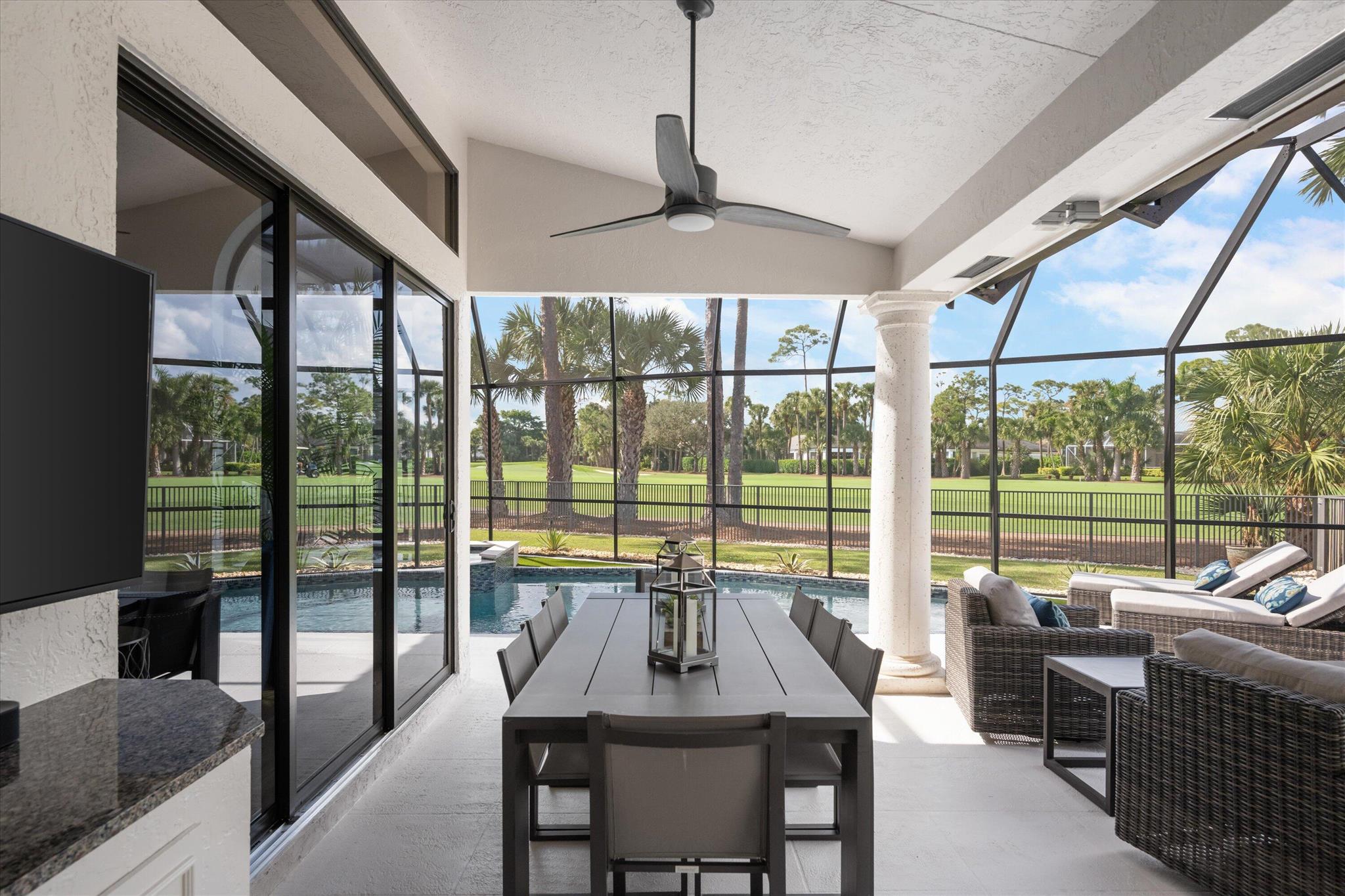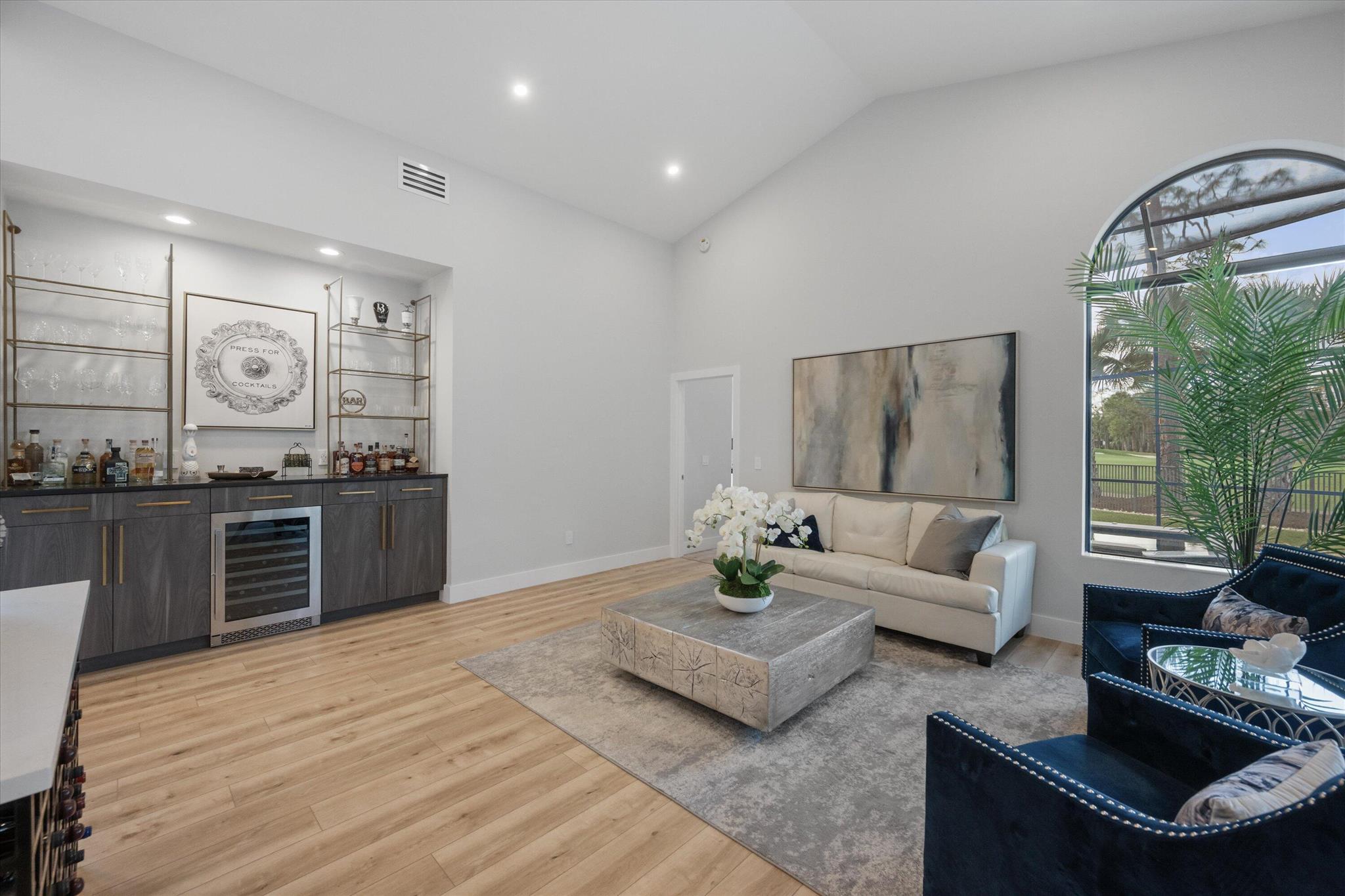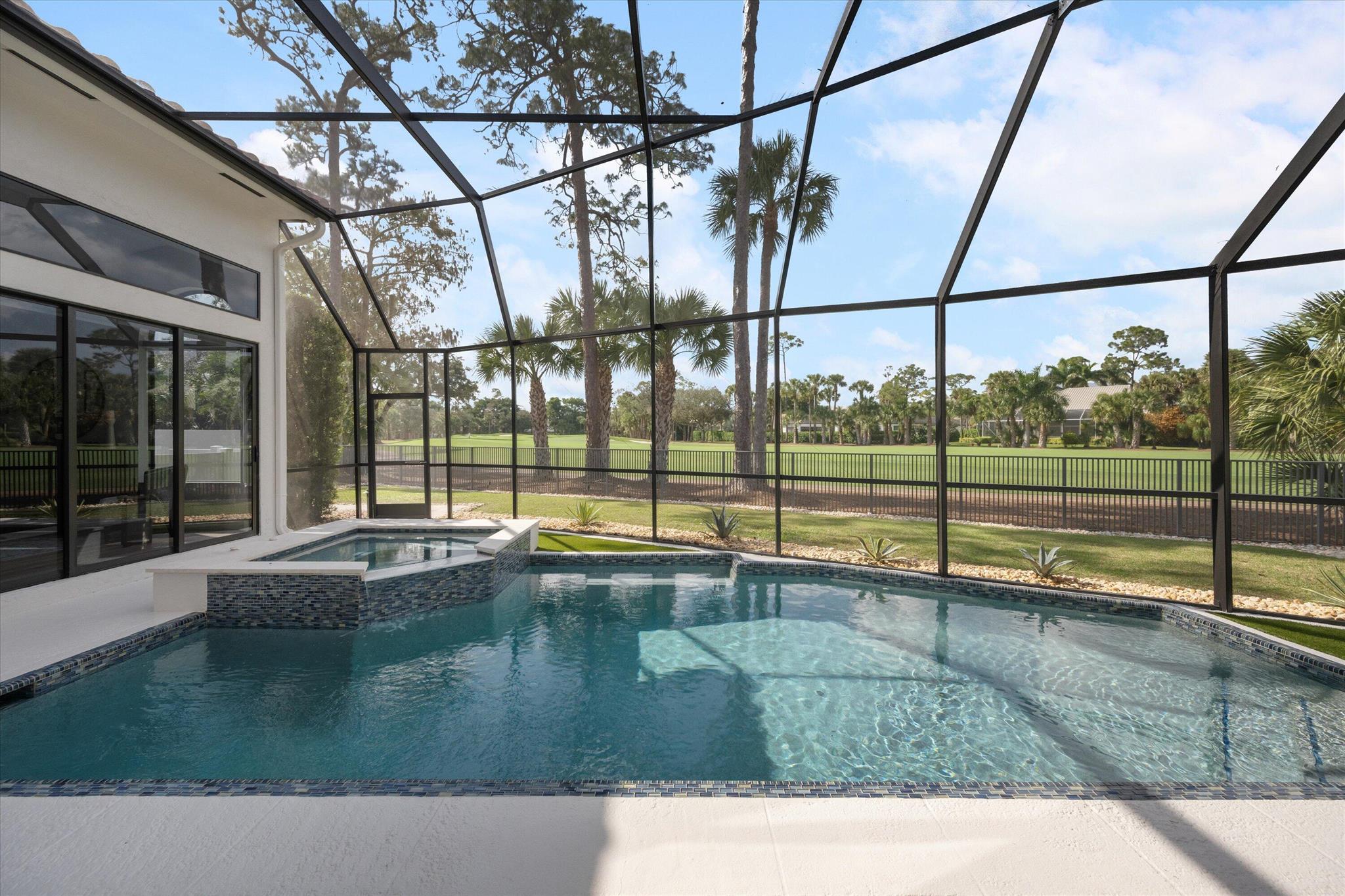 A rare gem! Stunning home with premium upgrades in the prestigious Breakers West community. Enhancements incl. impact windows complete, oversized new kitchen with quartz countertops, all bathrooms re-done, premium flooring thru out, plus plus. Outdoor living space lends a spa-like atmosphere with encl. pool/spa, new screen & extended cooking area w/covered seating for dining all overlooking a scenic golf course view with fabulous sunsets. Master suite completely remodeled with new vanities, closets, stand along tub & extra A/C zone. Too many upgrades to mention so it is a must see before it is gone. Unique golf course community where membership is optional w/2 private courses within the gates. Best opportunity for move in ready experience that comes furnished for a turnkey score.