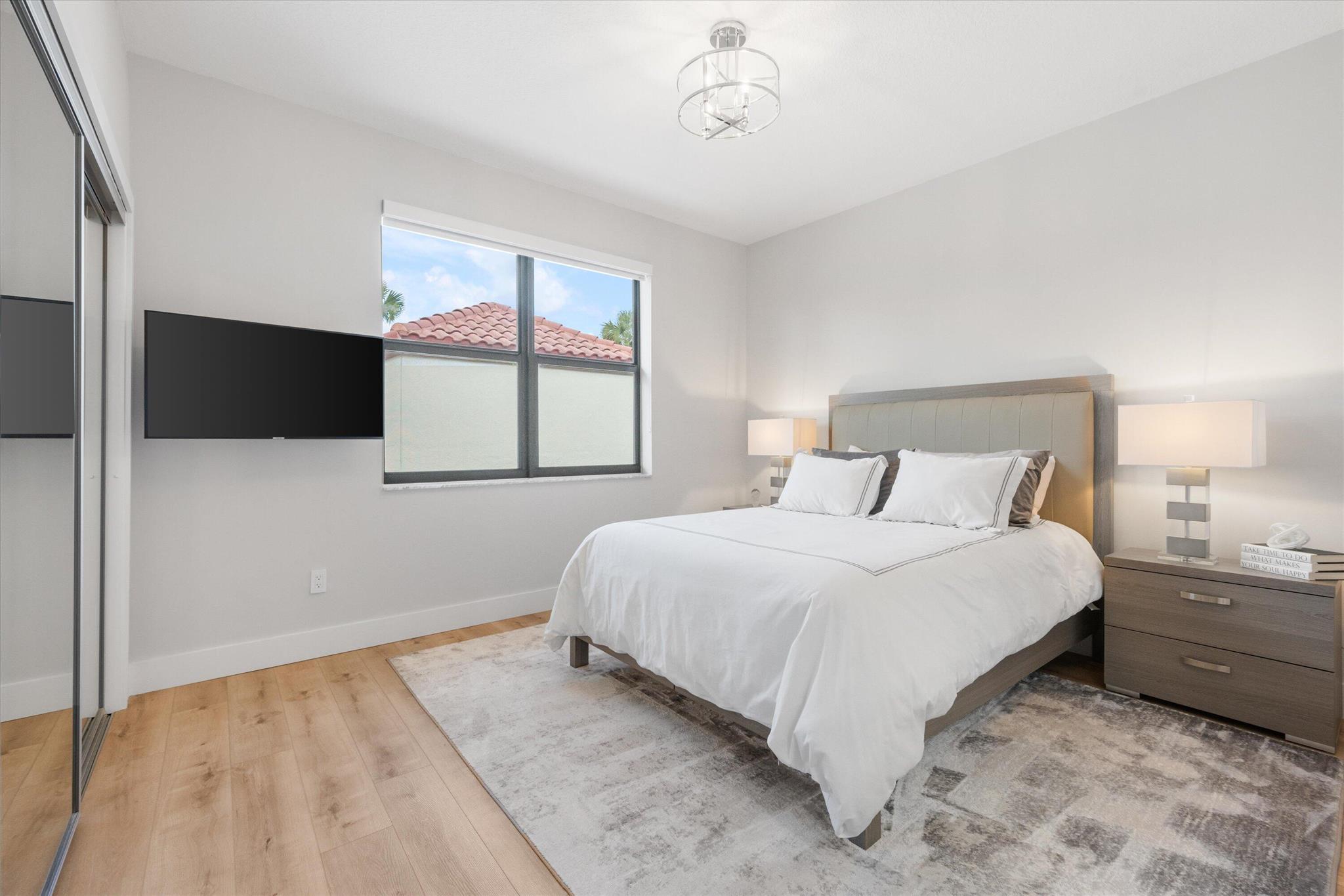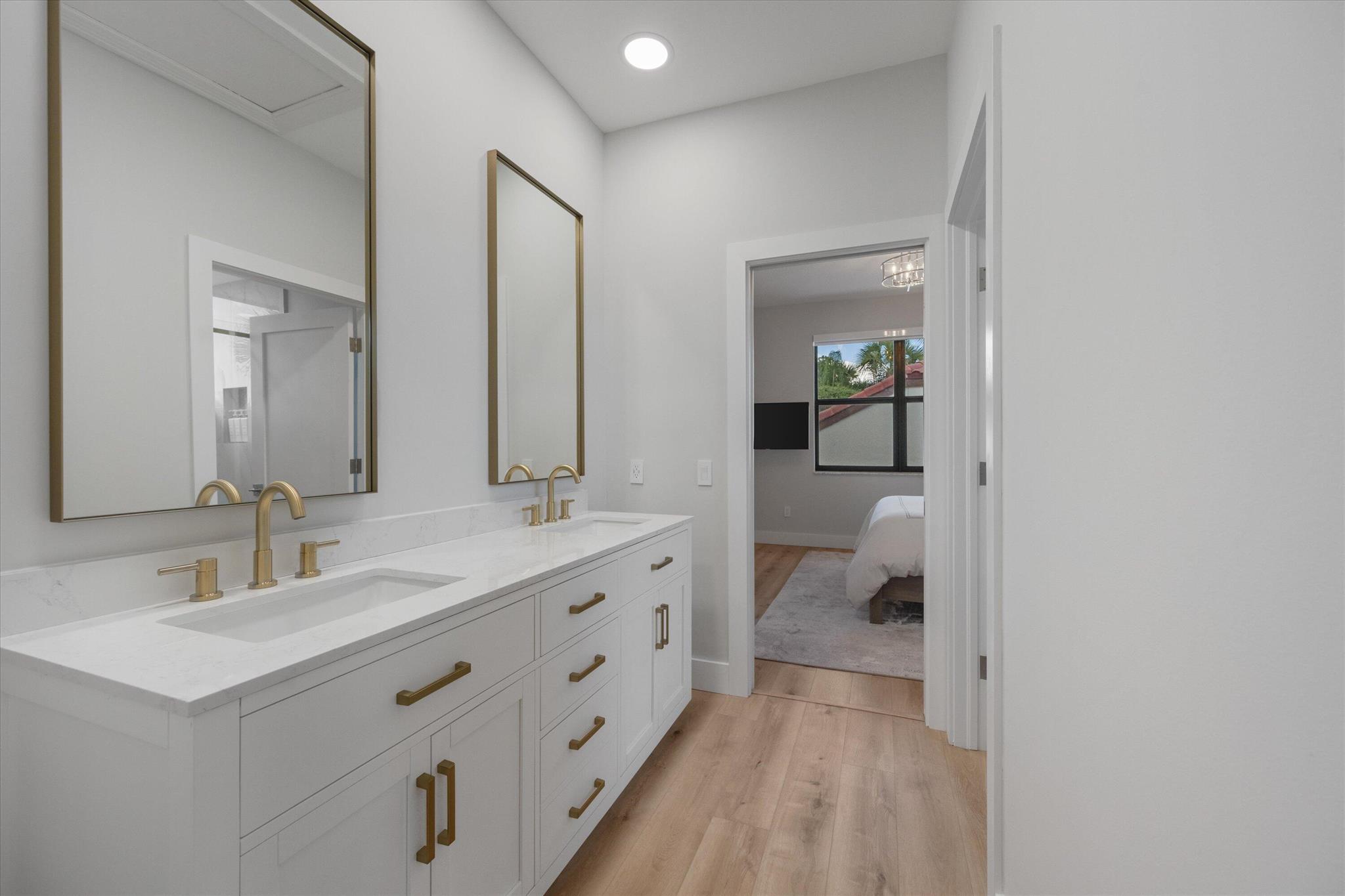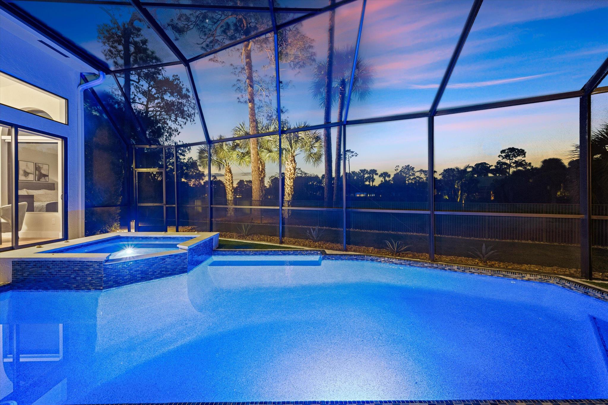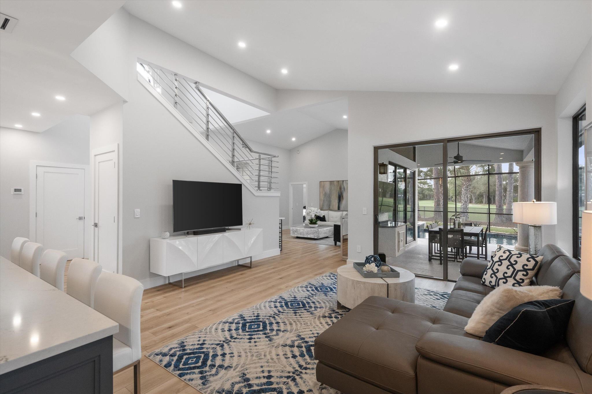 A rare gem! Stunning home with premium upgrades in the prestigious Breakers West community. Enhancements incl. impact windows complete, oversized new kitchen with quartz countertops, all bathrooms re-done, premium flooring thru out, plus plus. Outdoor living space lends a spa-like atmosphere with encl. pool/spa, new screen & extended cooking area w/covered seating for dining all overlooking a scenic golf course view with fabulous sunsets. Master suite completely remodeled with new vanities, closets, stand along tub & extra A/C zone. Too many upgrades to mention so it is a must see before it is gone. Unique golf course community where membership is optional w/2 private courses within the gates. Best opportunity for move in ready experience that comes furnished for a turnkey score.