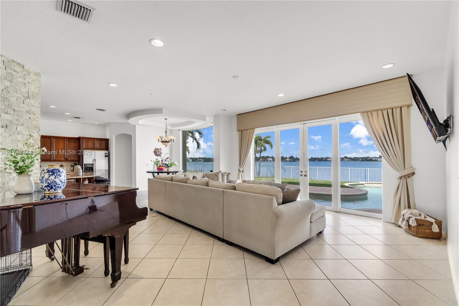 Exclusive waterfront opportunity in the gated community of Riviera Isles! This stunning 6-bedroom, 6-bathroom home with a 3-CAR garage boasts a lavish backyard oasis with a pool and spa, overlooking a breathtaking lake view. The home features an open concept with high double-volume ceilings, providing an airy and spacious feel. The gourmet granite kitchen includes plenty of counter space, built-in appliances, and an eat-in kitchen with everything you need. The breakfast area and large walk-in pantry offer ample storage space for your grocery and kitchen essentials. This home is a must-see! Close to schools, hospitals, supermarkets & shopping malls.