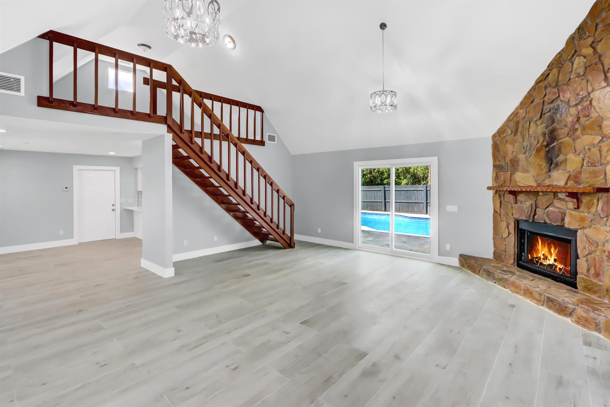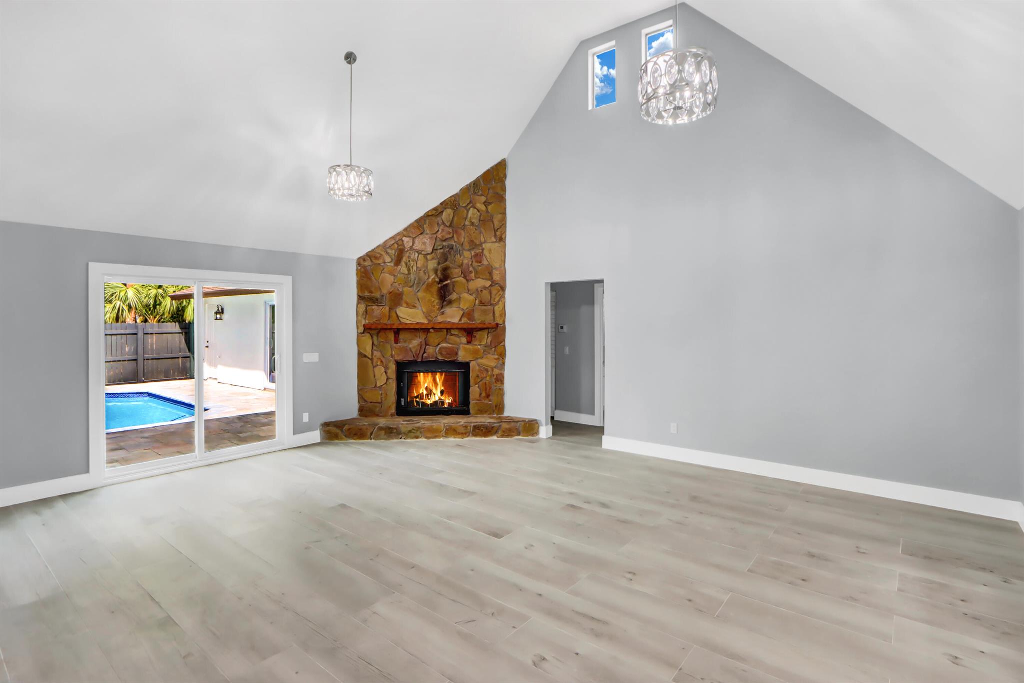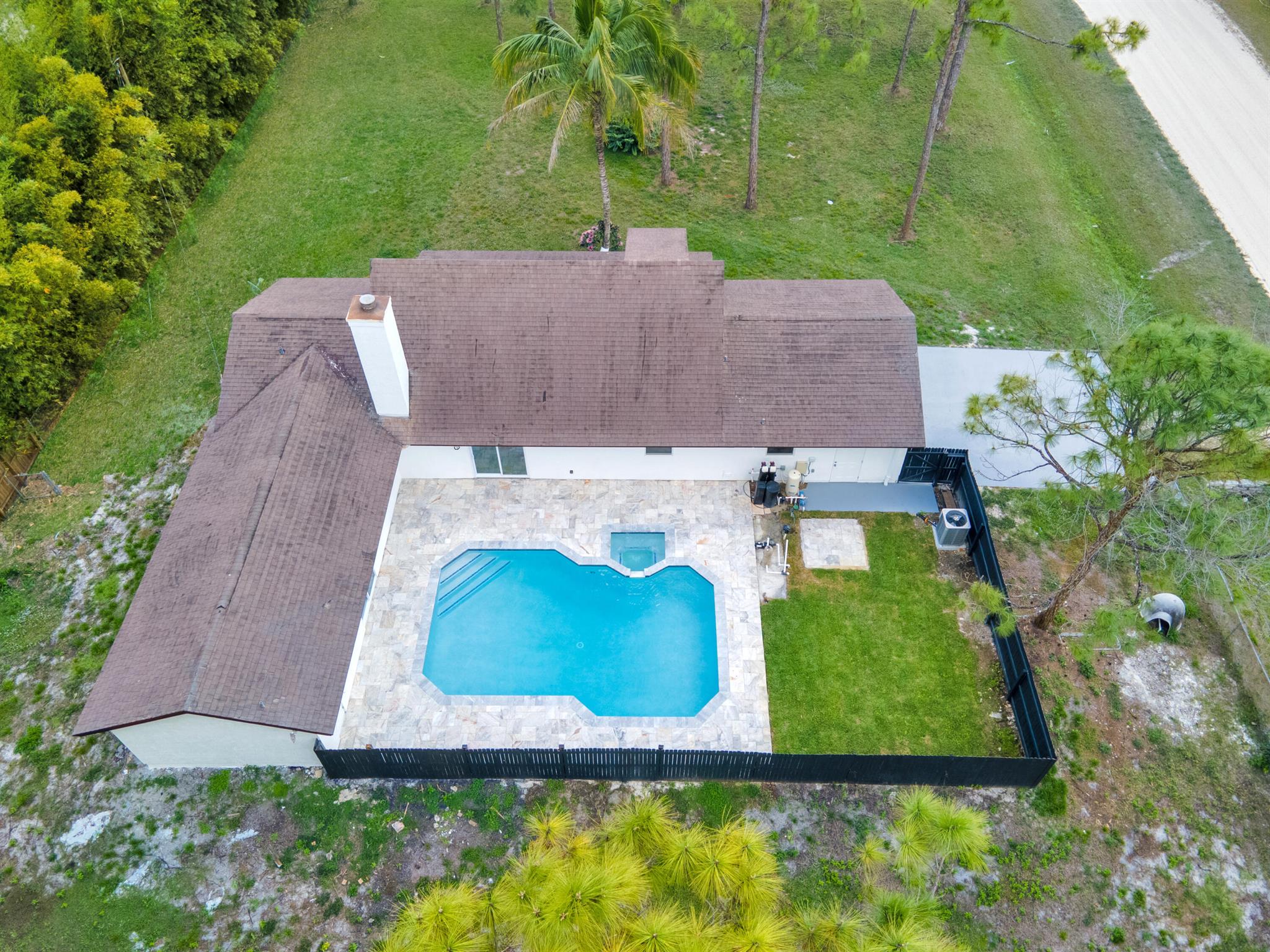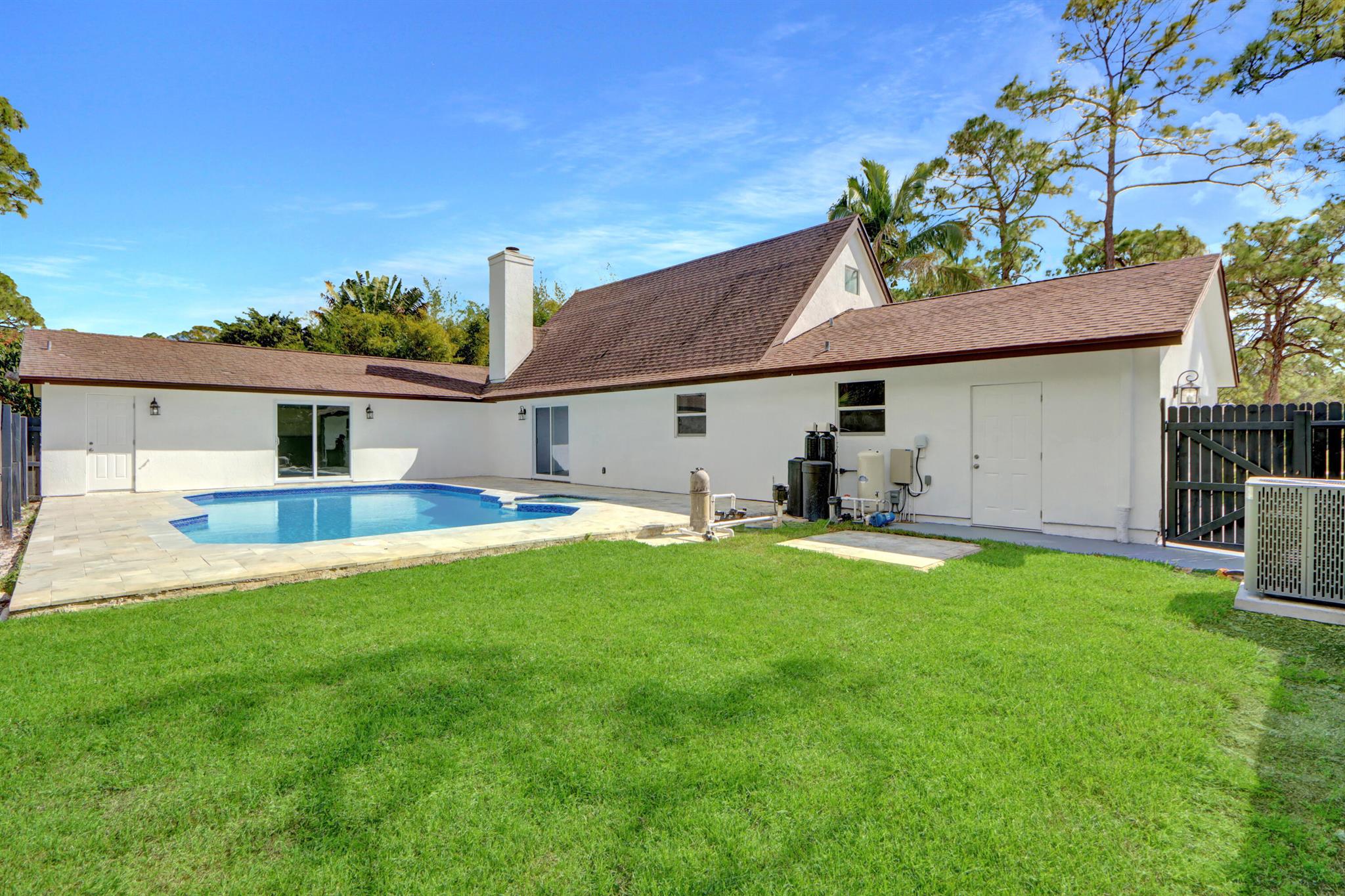 This newly renovated 3-bedroom, 2-bathroom family oasis offers 2,580 sq. ft. of luxurious living space on a spacious 1.25-acre lot. NEW ROOF!! The kitchen features brand-new stainless-steel appliances that make cooking a breeze. The home also boasts a 2-car garage, a chimney, convenient inside laundry, and impact-resistant glass windows for added peace of mind. Step outside and you'll be greeted by a large backyard, complete with a natural pond for a serene view. Enjoy ultimate privacy in your fenced backyard while relaxing in the expansive pool or soaking in the whirlpool. Located near major roads for easy access to everything you need. This stunning property won't last long -- come and see it for yourself today!