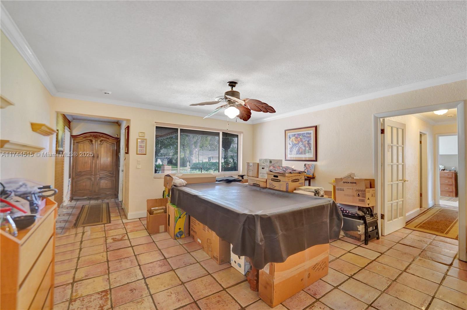 Open and spacious, 4-bedroom, 3-full-bath pool home in the heart of Hollywood Hills! All living spaces are open and make this home ideal for living, raising a family and entertaining. The piece de resistance is the resort-like backyard and in-ground pool with fountain, covered patio area for outdoor dining rain or shine and lots of green grass for playing games and watching your pets and family play! There's also a mosquito system, sprinkler with auto timer, 3 security cameras, house alarm, wired smoke detectors all with ADT, a storage shed with electricity, newer AC and water heater. Most windows and all doors are impact. Close to A-rated elementary school and houses of worship.