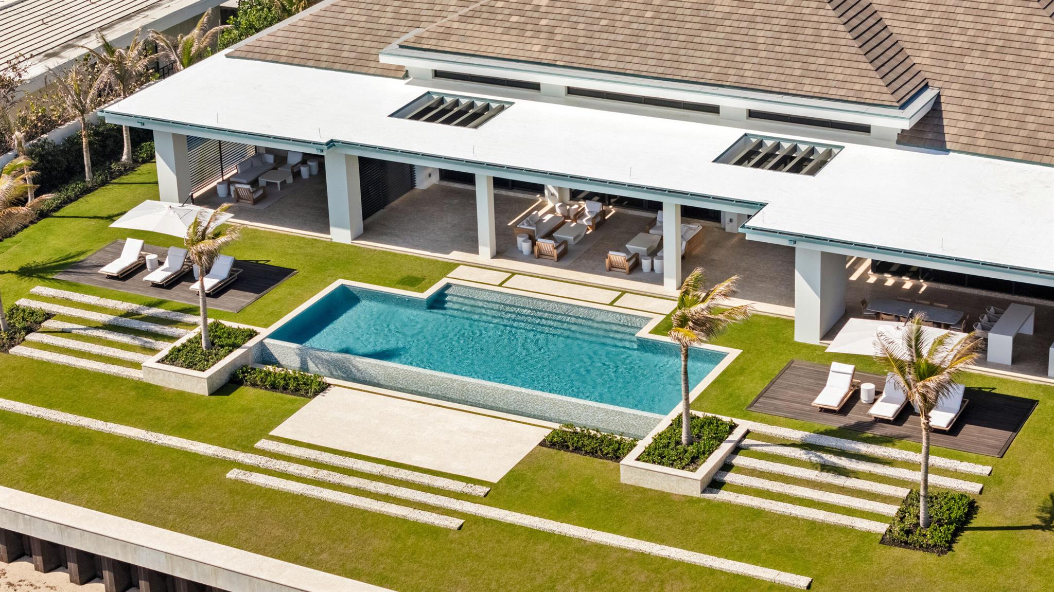 Set between the Atlantic Ocean and Intracoastal Waterway, 1160 S. Ocean Blvd is a rare retreat where architecture and nature exist in perfect harmony. Spanning 27,745+/- square feet under roof on nearly 2 acres, this newly completed estate offers 160 feet of direct ocean frontage and private Intracoastal access, creating an unrivaled connection to land and sea. Designed with balance and thoughtful craftsmanship, the 25,197+/- square-foot main house flows effortlessly from one space to the next. From the grand entry hall, the journey unfolds--a symphony of light and space, where the living room merges with the ocean beyond. The formal dining room, with its ocean-facing bar, sets the stage for elegant entertaining, while the open-concept kitchen and family area form the heart of the home.