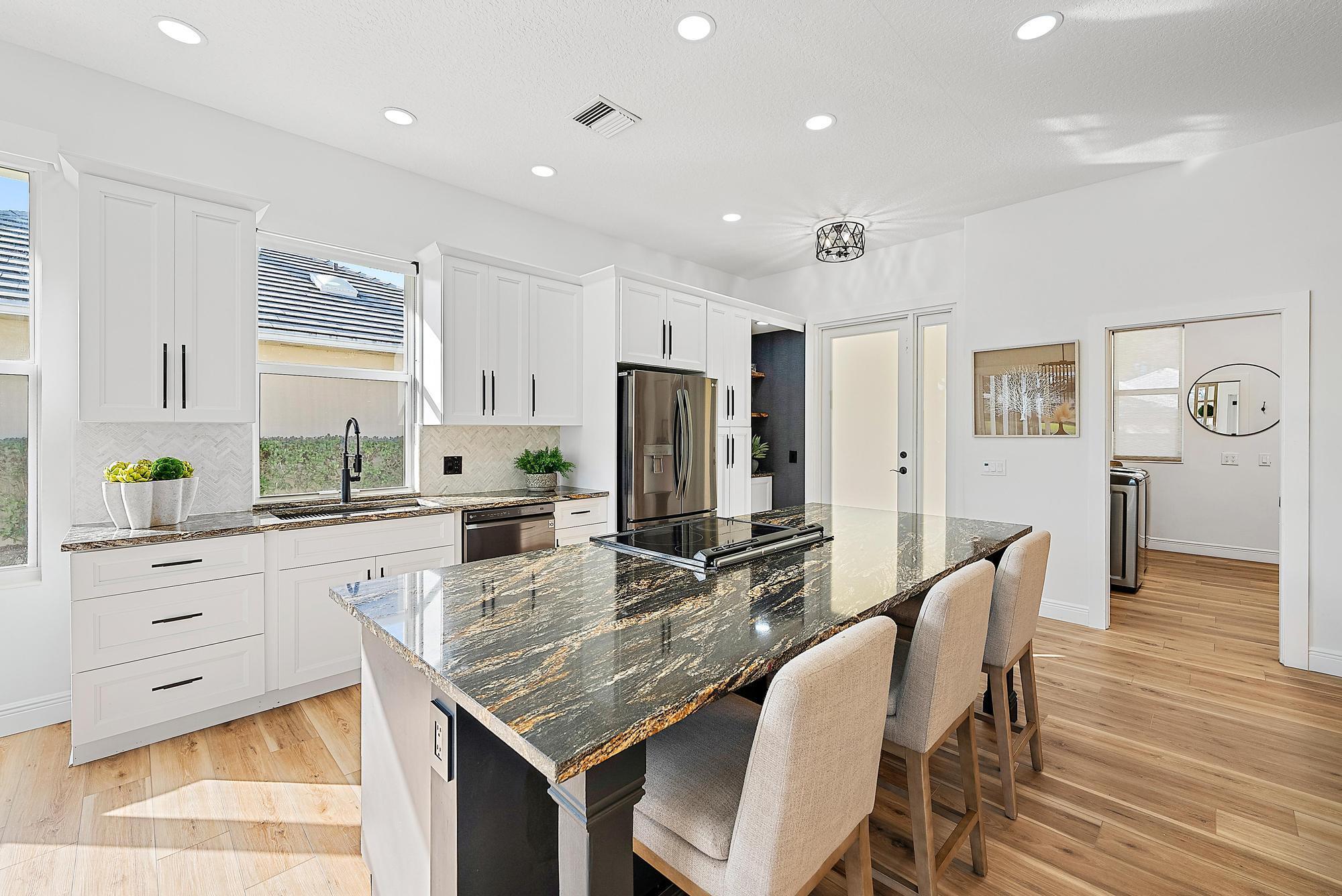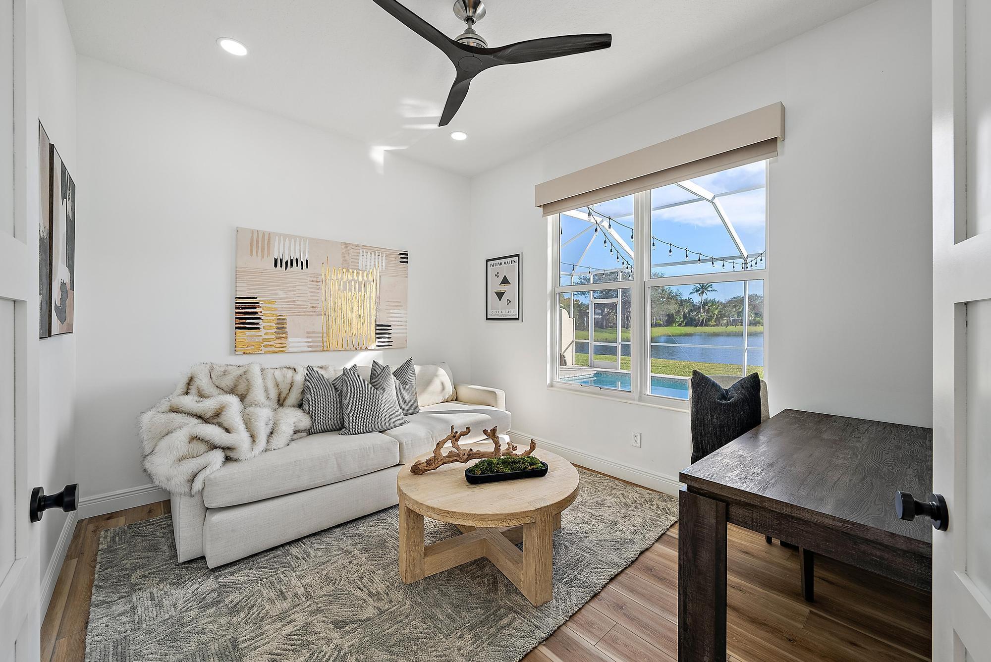 Welcome to your new sanctuary, nestled on a beautiful tree lined street in South Florida. This stunning home sits on a picturesque lake offering relaxation and restoration in the heart of Palm Beach Gardens. Professionally landscaped and designed, this home ensures no detail has been overlooked. New hurricane windows/ doors , shade store electric blinds/drapes, custom built electric fire place and mantel, stunning crystal chandeliers and modern fans, custom glass in bathrooms, new interior glass doors, pull out shelving in kitchen, pool resurfacing, pool tile , pool heater, new patio pavers, epoxy garage floor, new interior and exterior paint, new tankless water heater (23) AC unit (24) Roof (21). Enjoy a low cost HOA that includes cable, internet and front yard. Your Oasis awaits.