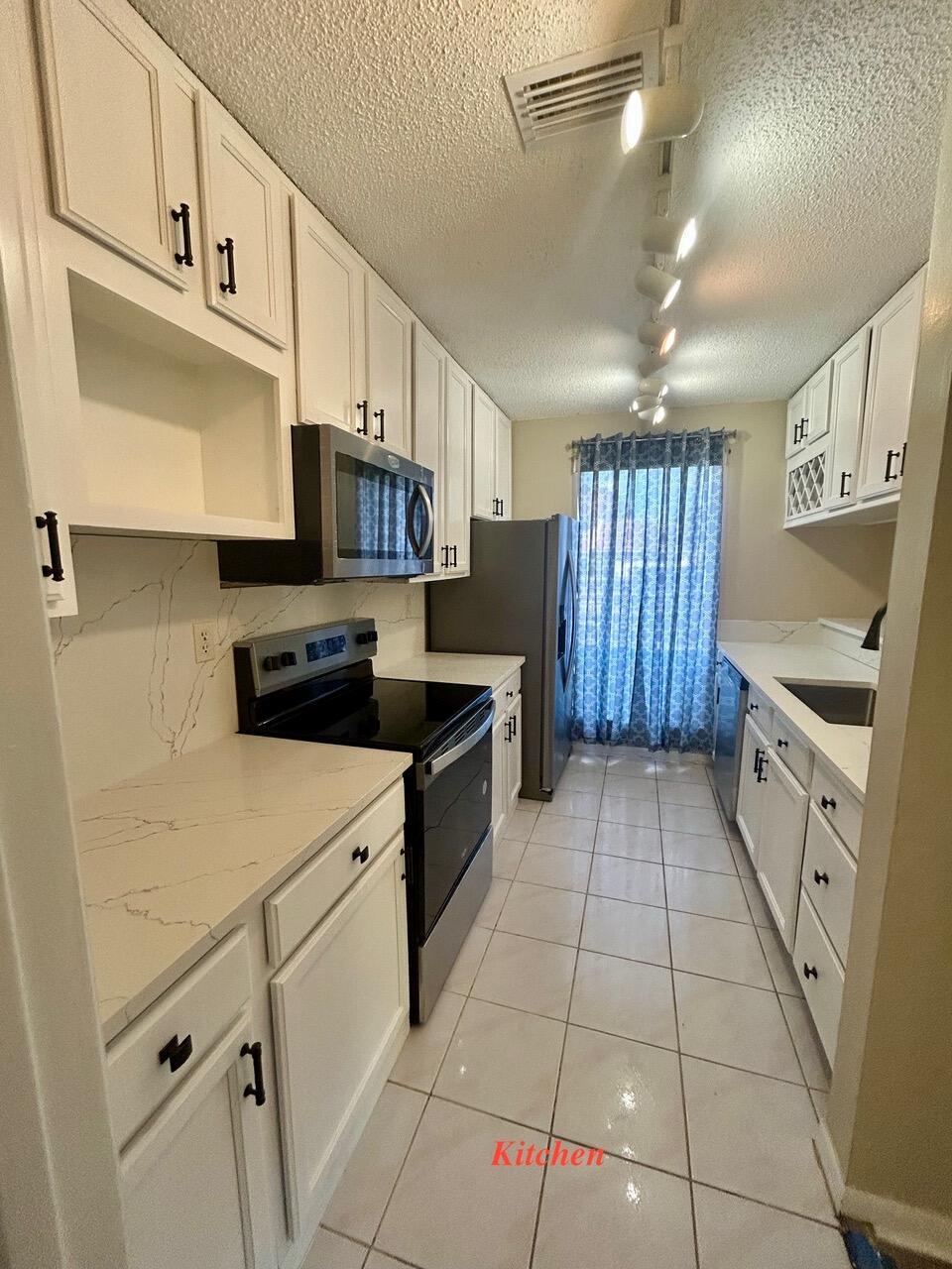 Step into this fully renovated and move-in ready townhouse, where modern upgrades and stylish finishes create an inviting atmosphere. The open floor plan features brand-new stainless-steel appliances, sleek quartz countertops, and chic laminate flooring throughout. The spacious primary suite offers a private balcony, while the updated bathrooms showcase contemporary cabinetry and designer tile work. Enjoy seamless indoor-outdoor living with a private fenced-in patio. Just steps away is a swimming pool; big enough for one to comfortably make laps or just relax. This home includes two assigned parking spaces, a dedicated laundry/utility room, and ample storage. A new roof recently installed, 20 years of peace of mind. Sellers offering $5,000 towards closing cost. Don't miss this opportunity
