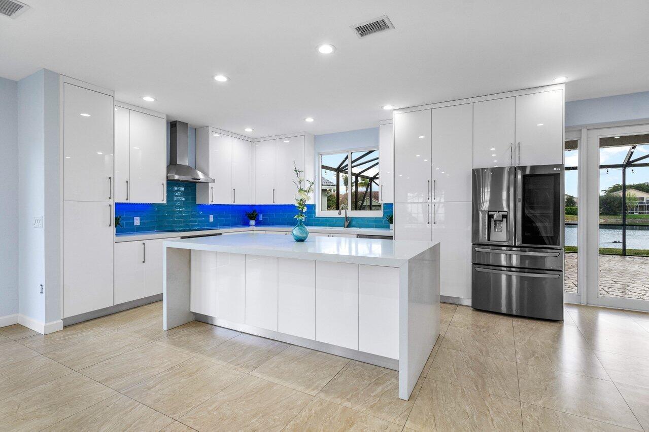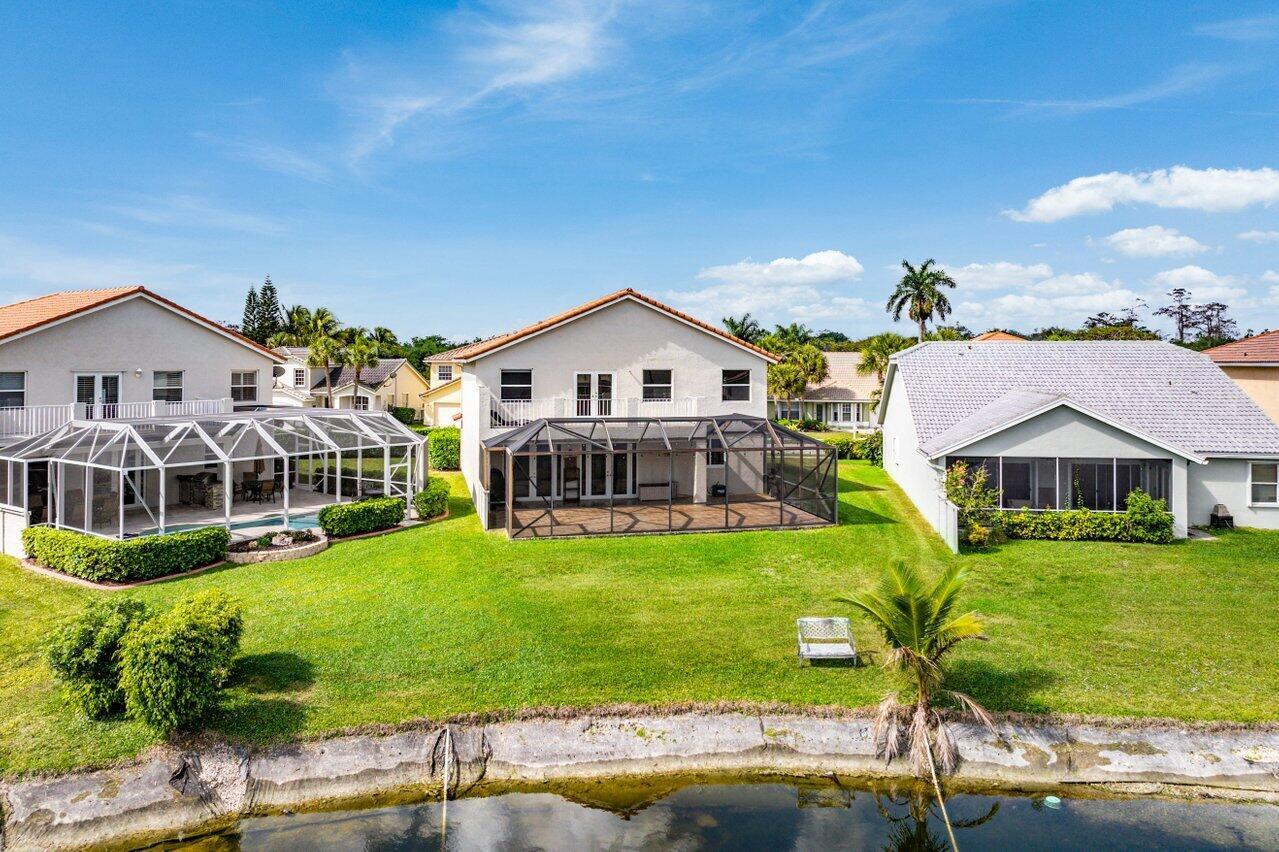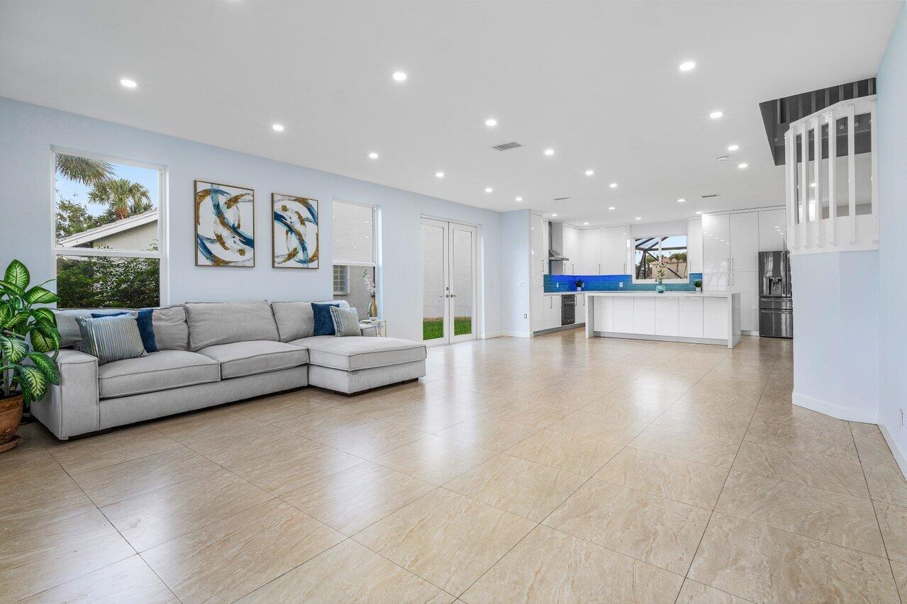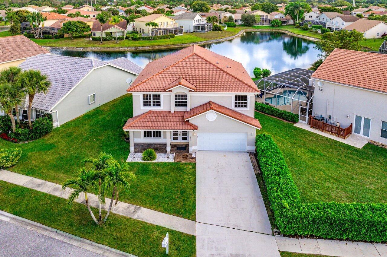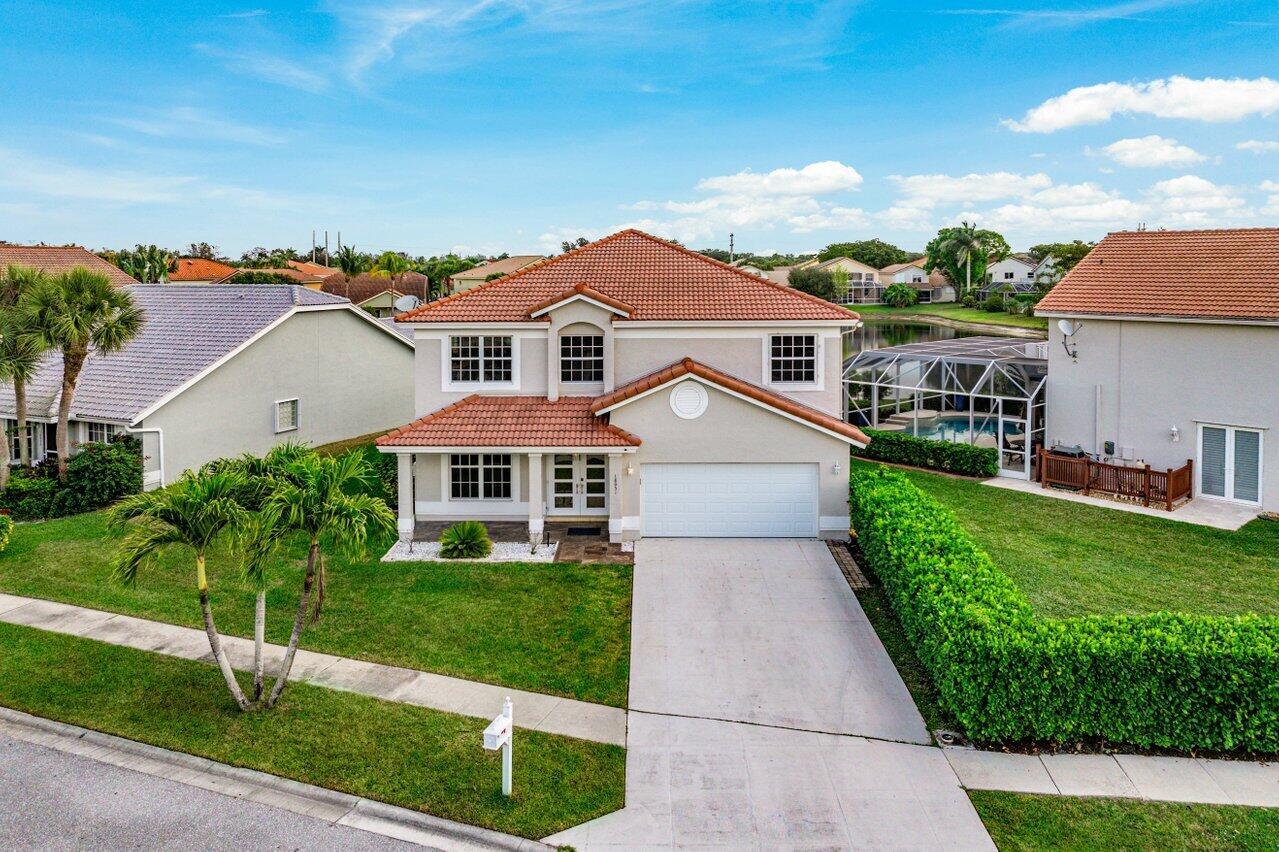 Nestled in a highly desirable Boca Raton neighborhood, this Amazing home has and open floor plan home has 4 Bdrms +Sitting room, 2 1/2 baths and boasts a Beautifully Remodeled Modern Kitchen that centers around a Huge Island with Quartz Counters and Waterfall Edge, equipped with Stainless Steel LG Appliances, lots of soft close drawers, Built-in pantry and custom backsplash. There are Stunning porcelain tile floors throughout the Formal Living, Dining and the Family rooms! A marvelous feature of this residence is the 40X23 Screened Lanai, offering an ideal place to unwind while enjoying the Captivating Lake Views! This special home also features a 2nd Floor Balcony, IMPACT GLASS Windows & Doors and sits on an oversized pie shaped lot for added privacy. Roof (2011), AC (2017)