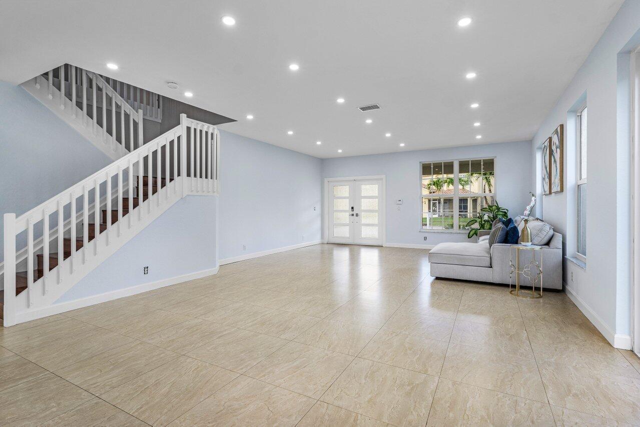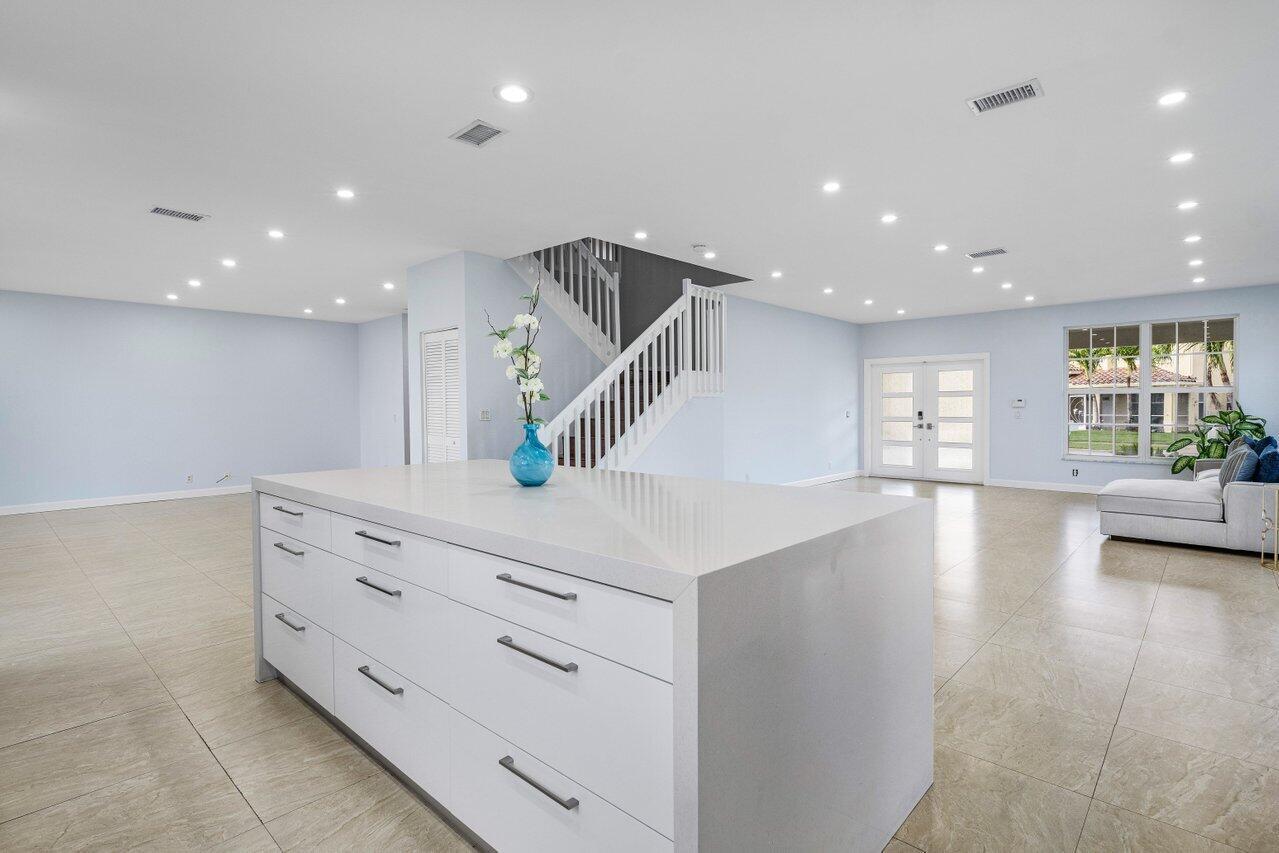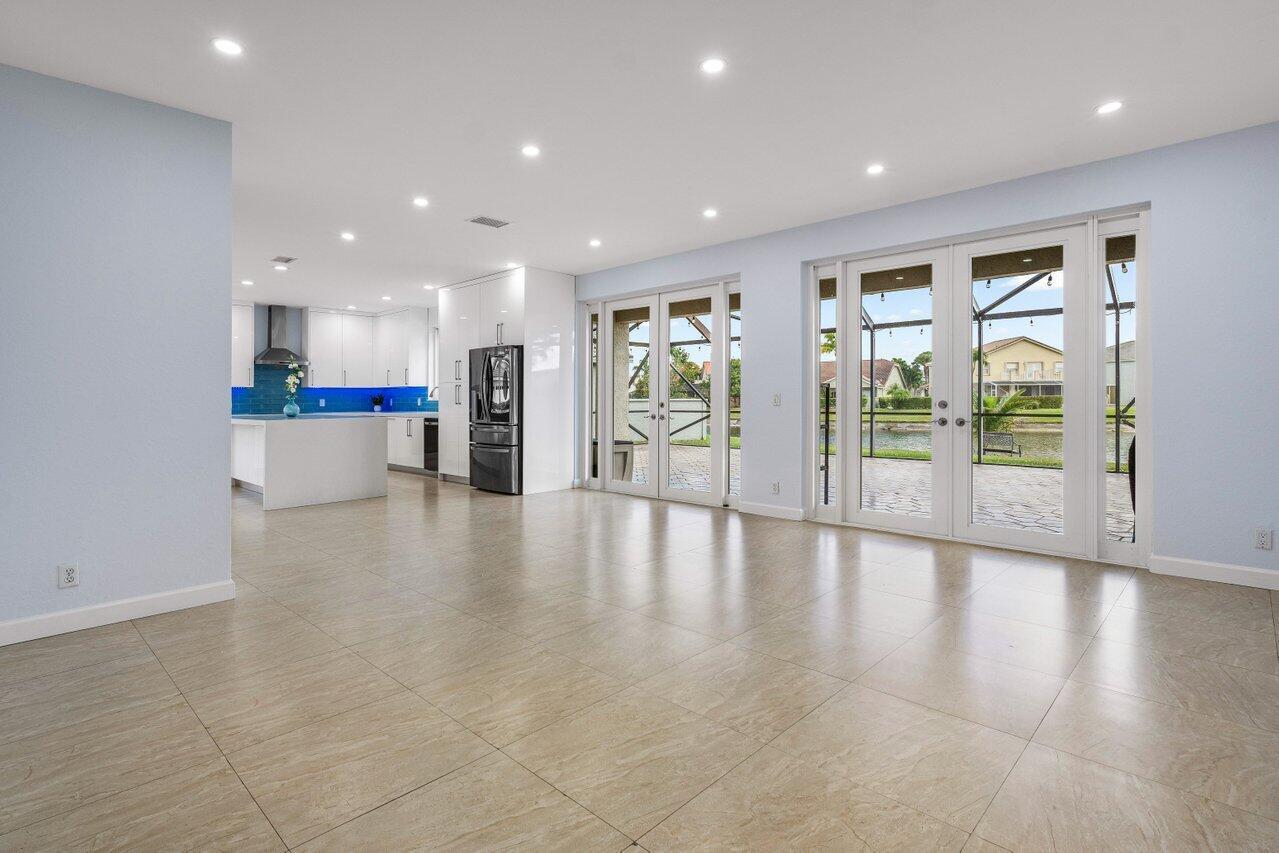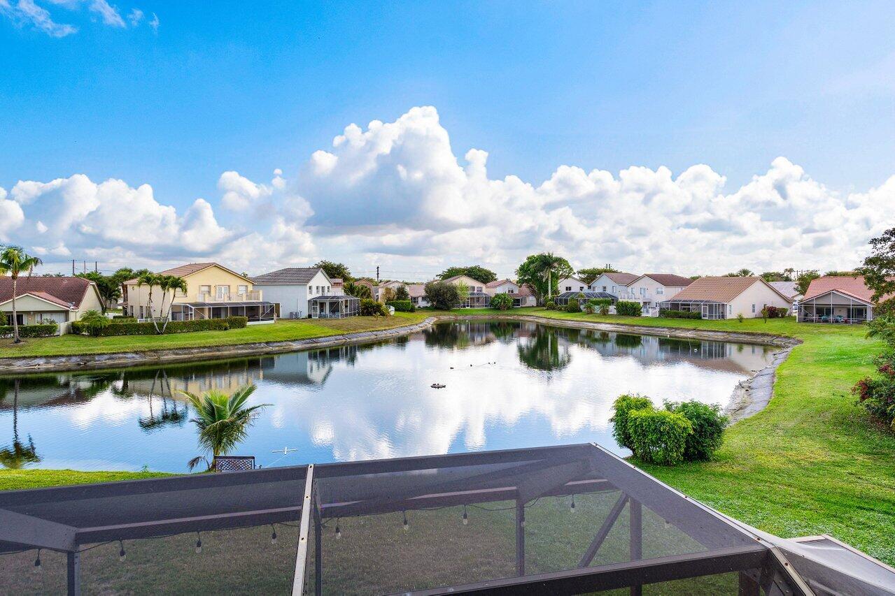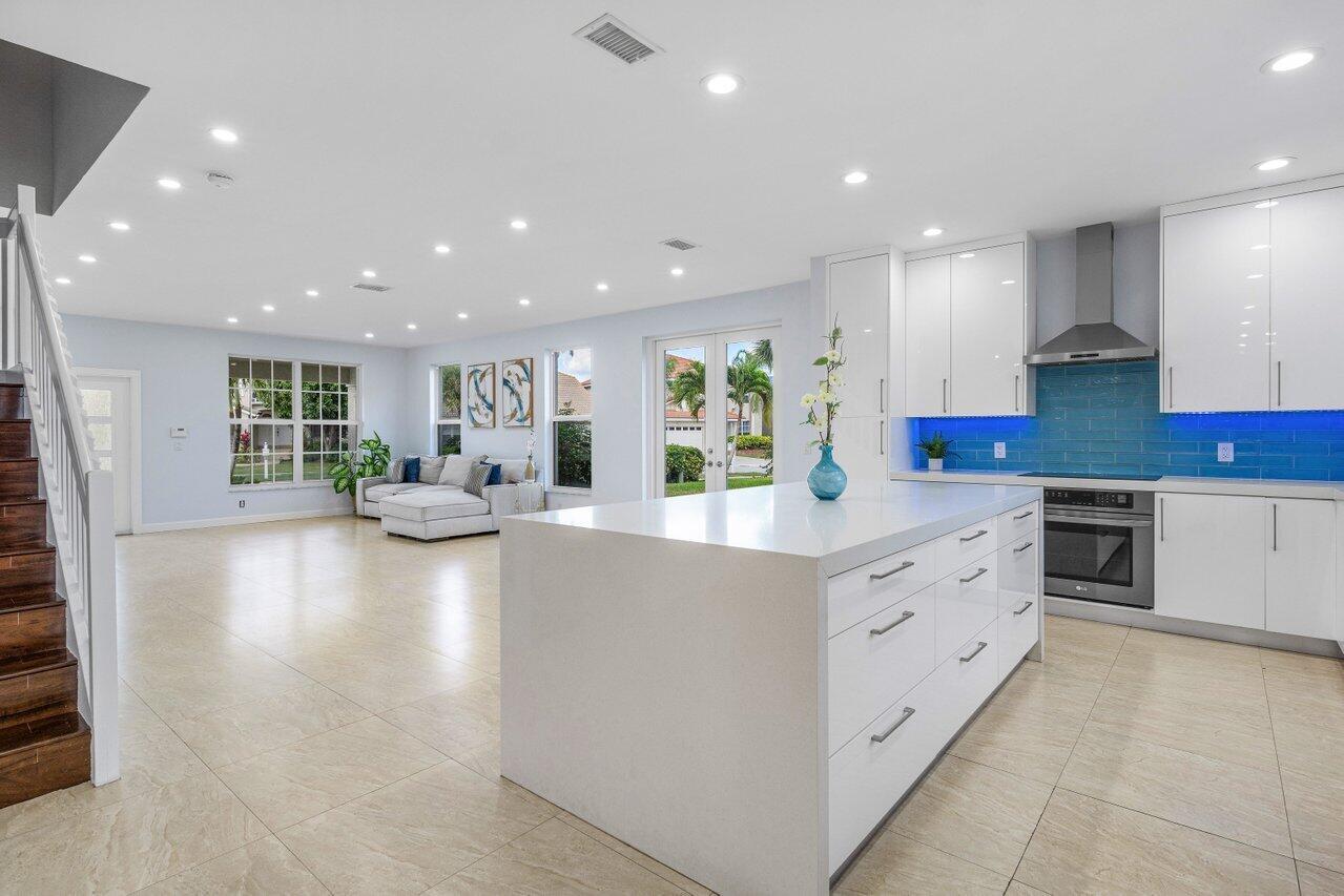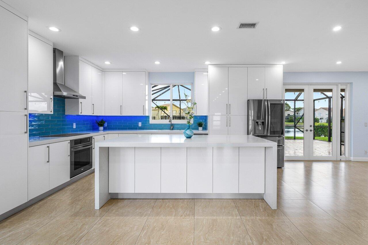 Nestled in a highly desirable Boca Raton neighborhood, this Amazing home has and open floor plan home has 4 Bdrms +Sitting room, 2 1/2 baths and boasts a Beautifully Remodeled Modern Kitchen that centers around a Huge Island with Quartz Counters and Waterfall Edge, equipped with Stainless Steel LG Appliances, lots of soft close drawers, Built-in pantry and custom backsplash. There are Stunning porcelain tile floors throughout the Formal Living, Dining and the Family rooms! A marvelous feature of this residence is the 40X23 Screened Lanai, offering an ideal place to unwind while enjoying the Captivating Lake Views! This special home also features a 2nd Floor Balcony, IMPACT GLASS Windows & Doors and sits on an oversized pie shaped lot for added privacy. Roof (2011), AC (2017)