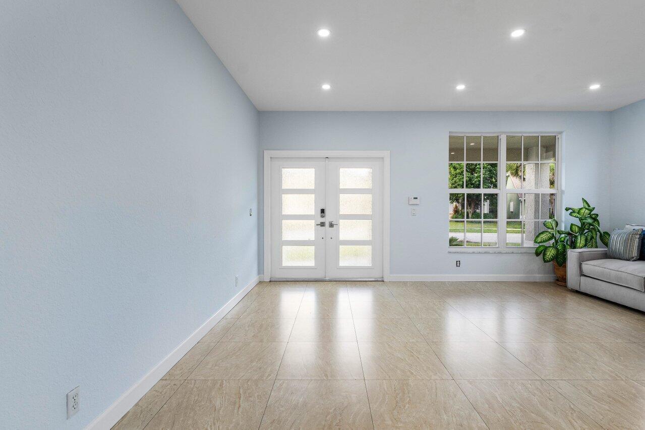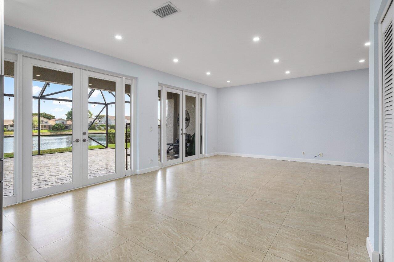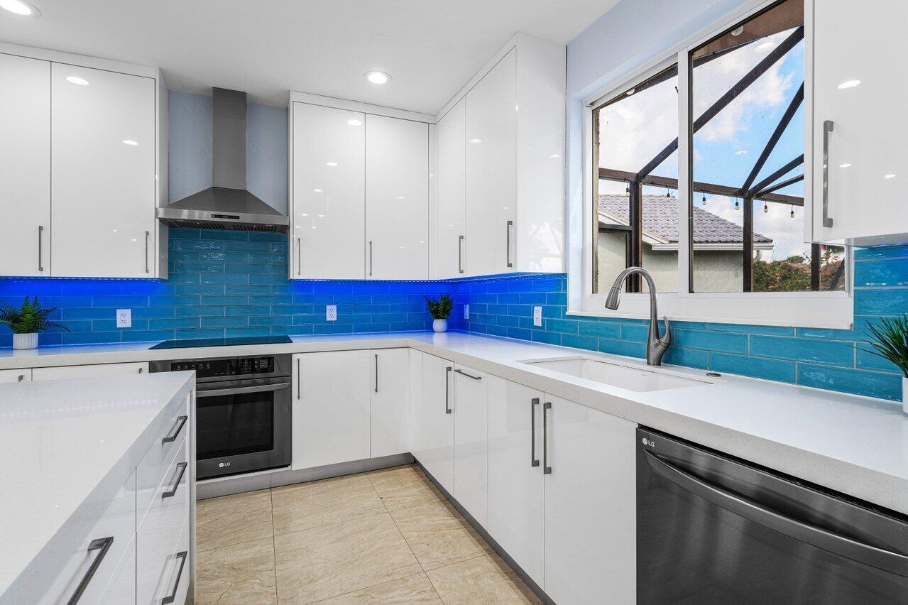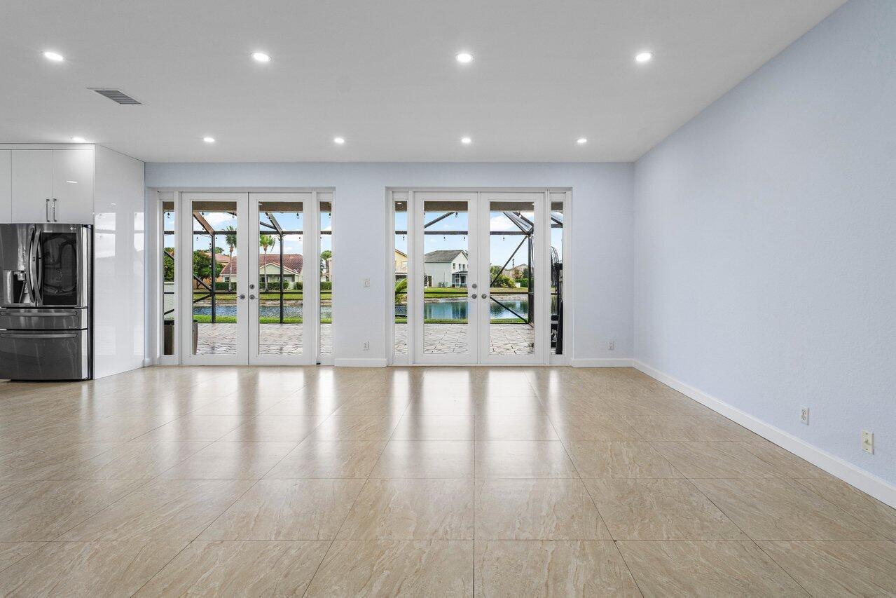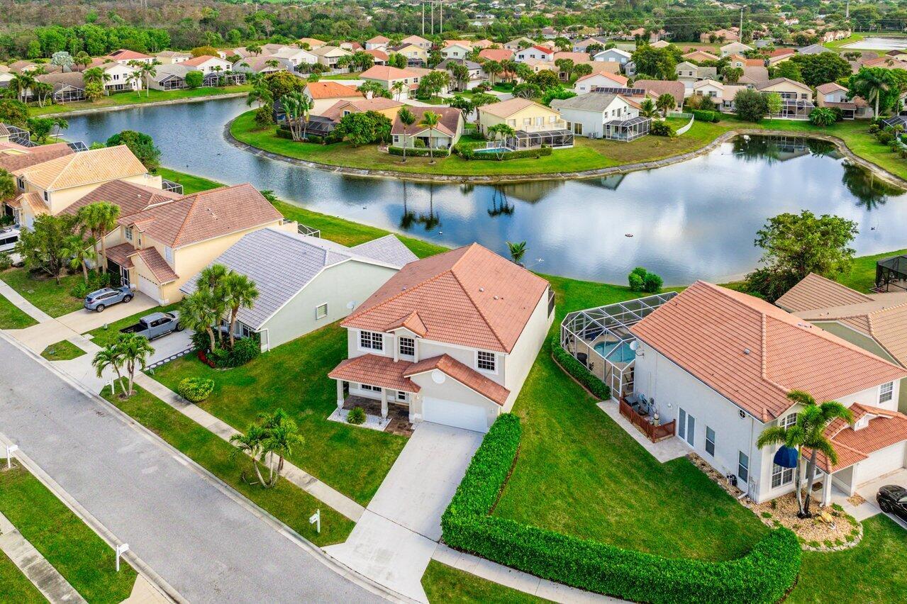 Nestled in a highly desirable Boca Raton neighborhood, this Amazing home has and open floor plan home has 4 Bdrms +Sitting room, 2 1/2 baths and boasts a Beautifully Remodeled Modern Kitchen that centers around a Huge Island with Quartz Counters and Waterfall Edge, equipped with Stainless Steel LG Appliances, lots of soft close drawers, Built-in pantry and custom backsplash. There are Stunning porcelain tile floors throughout the Formal Living, Dining and the Family rooms! A marvelous feature of this residence is the 40X23 Screened Lanai, offering an ideal place to unwind while enjoying the Captivating Lake Views! This special home also features a 2nd Floor Balcony, IMPACT GLASS Windows & Doors and sits on an oversized pie shaped lot for added privacy. Roof (2011), AC (2017)