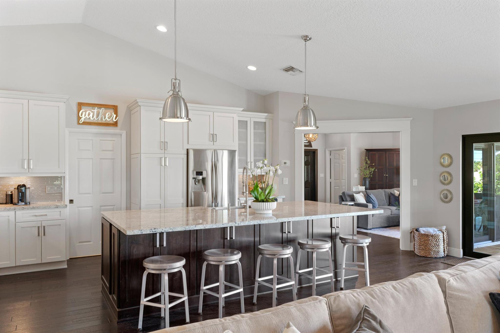 Welcome to 7790 Fairway Trail, nestled on a prime lot in East Boca's sought-after Hidden Valley community. This 4BR/3BA + den pool home boasts an open floor plan with expansive living areas and stunning wood floors throughout. The formal living and dining rooms offer inviting pool views, while the kitchen--with its oversized island, stainless steel appliances, and ample cabinetry--flows into the family room, perfect for entertaining or unwinding. Outside, a summer kitchen, loggia, freeform pool, and private backyard create an ideal retreat. The split floor plan features a primary suite with pool views, a walk-in closet, dual sinks, and separate tub/shower, along with 3 additional bedrooms, 2 full baths, and a spacious office.