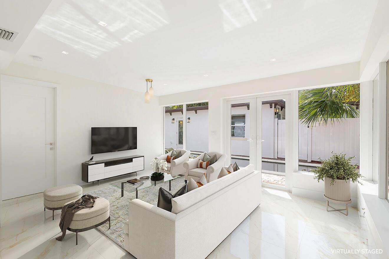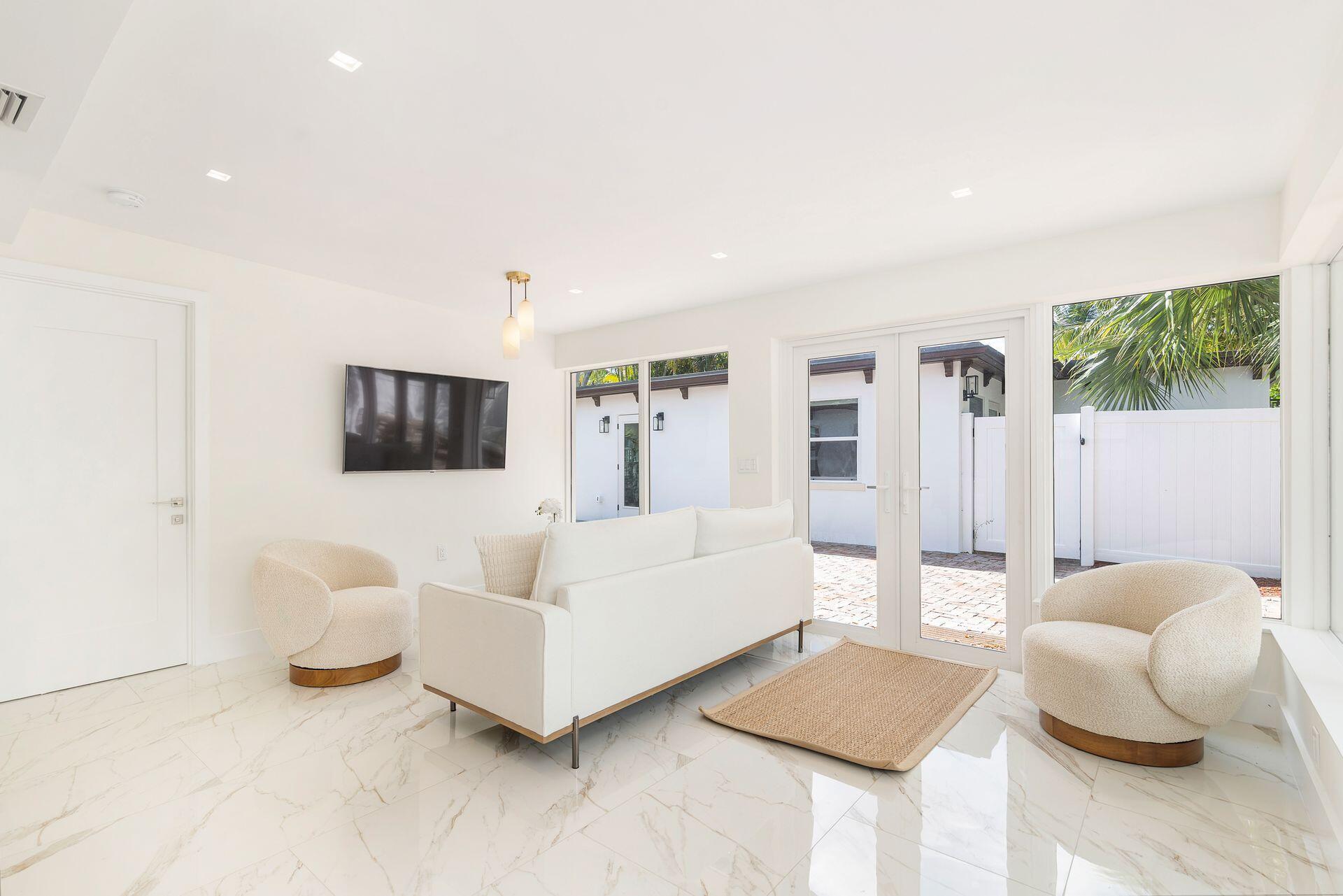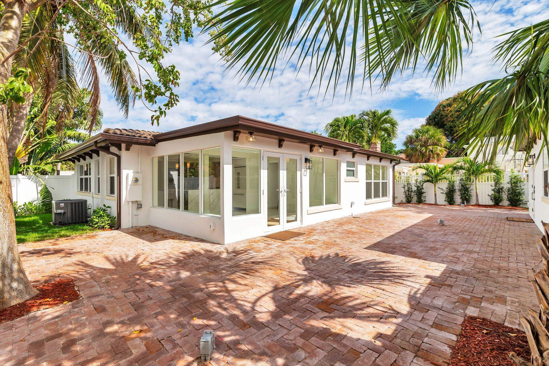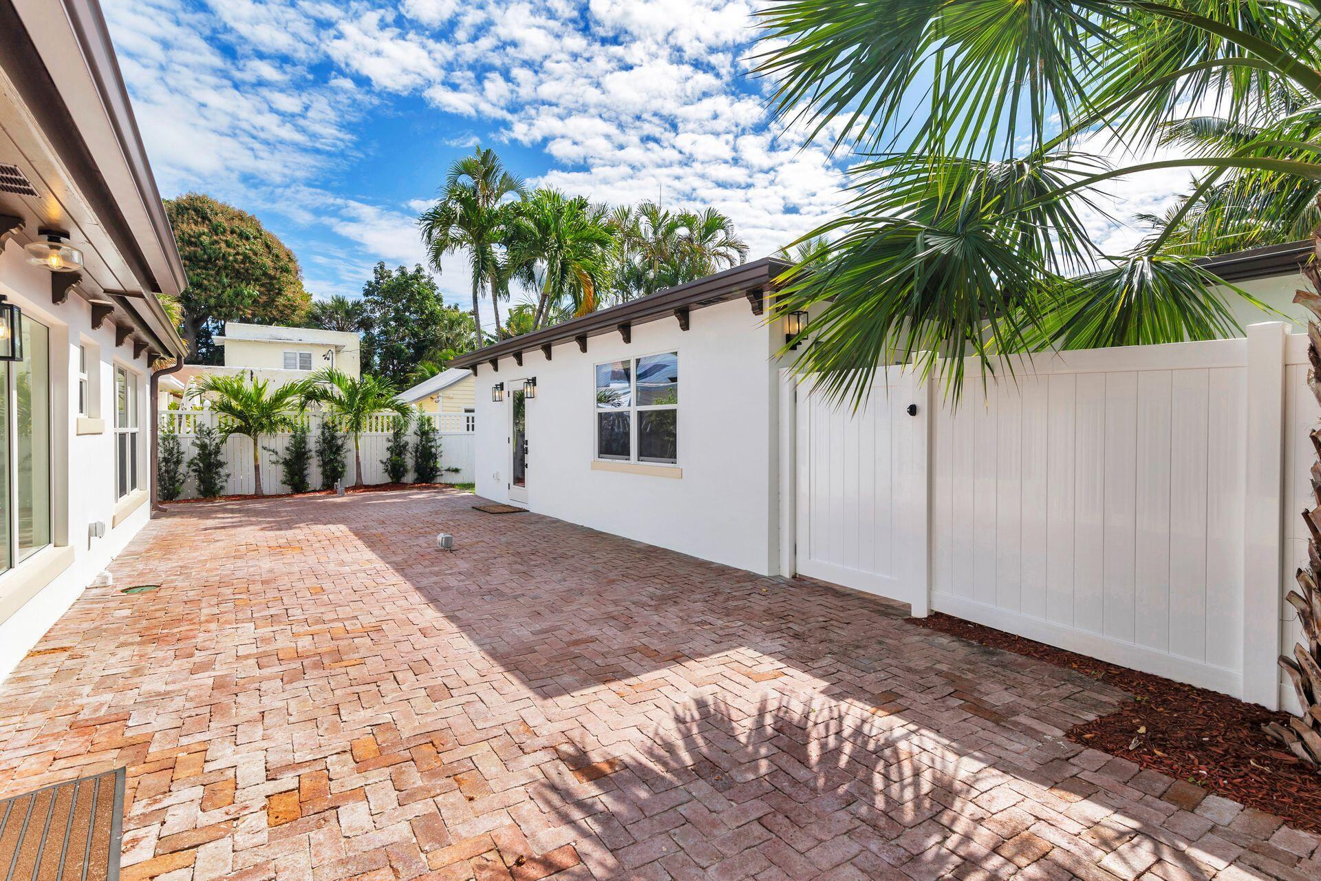 This exquisite home, situated in Prospect Park, offers a 3 bedroom/ 2 bathroom main home with a detached 2 bedroom/ 2 bathroom guest house. Fully renovated and redesigned, this home boasts trendy finishes with an open-concept floor plan and tons of natural light. The 704 sq. ft guest house has its own legal address and is ideal for visitors and/or is a fabulous rental opportunity. The brick courtyard patio is ready for a swimming pool or perfect AS-IS surrounded by mature landscaping. If you desire a few layout edits or specific customizations, the developer is happy to meet your needs. Located close to area beaches, fabulous Worth Ave. shopping, amazing restaurants, Flagler Drive, the Intracoastal waterway and bike trail, City Place and PBI airport.
