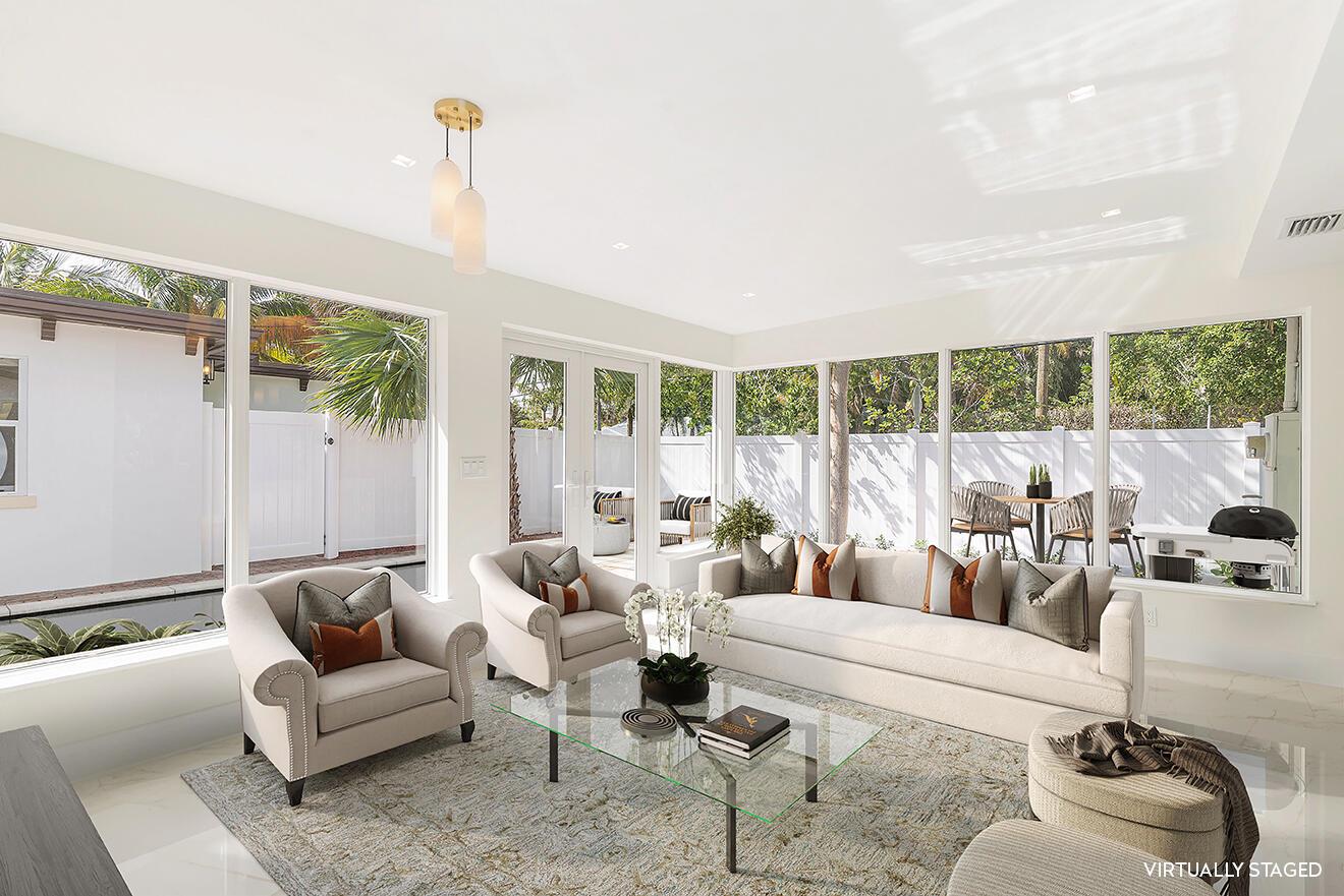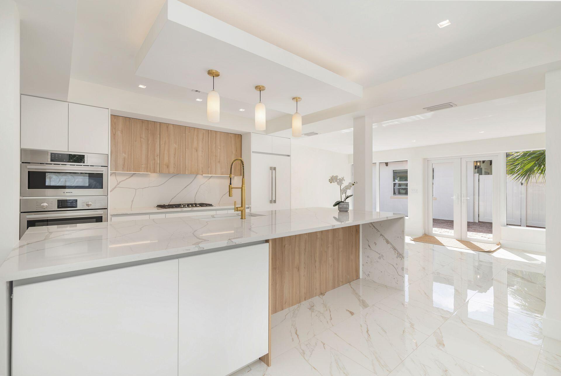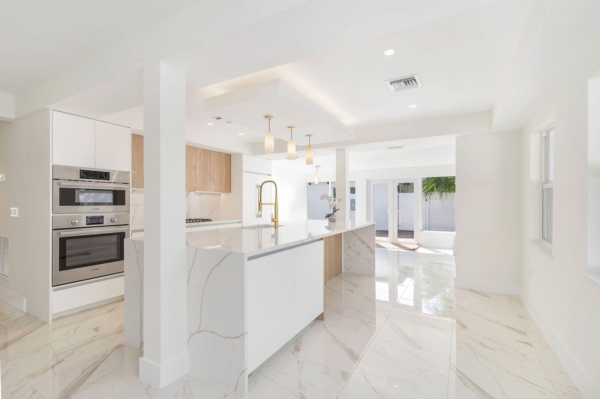 This exquisite home, situated in Prospect Park, offers a 3 bedroom/ 2 bathroom main home with a detached 2 bedroom/ 2 bathroom guest house. Fully renovated and redesigned, this home boasts trendy finishes with an open-concept floor plan and tons of natural light. The 704 sq. ft guest house has its own legal address and is ideal for visitors and/or is a fabulous rental opportunity. The brick courtyard patio is ready for a swimming pool or perfect AS-IS surrounded by mature landscaping. If you desire a few layout edits or specific customizations, the developer is happy to meet your needs. Located close to area beaches, fabulous Worth Ave. shopping, amazing restaurants, Flagler Drive, the Intracoastal waterway and bike trail, City Place and PBI airport.