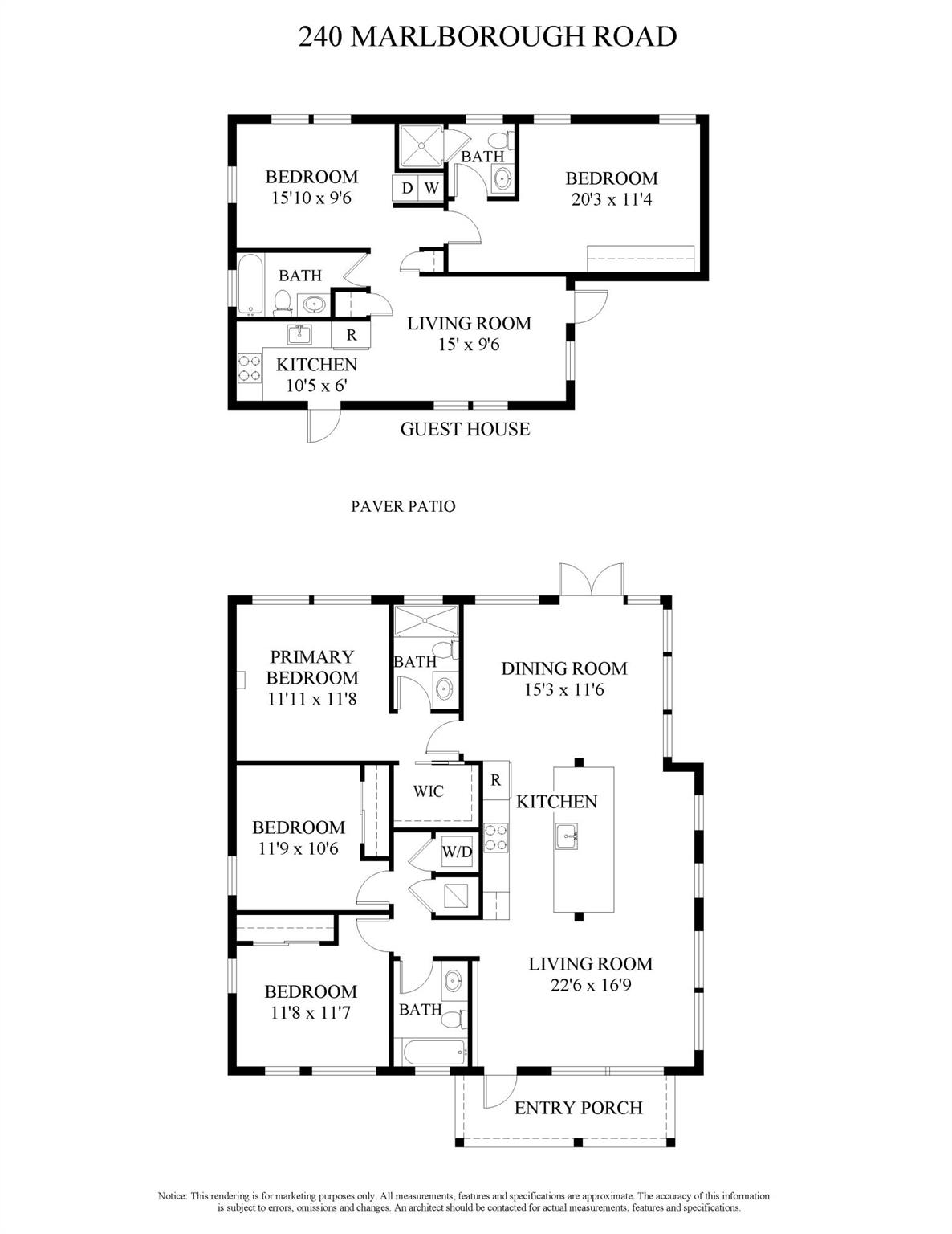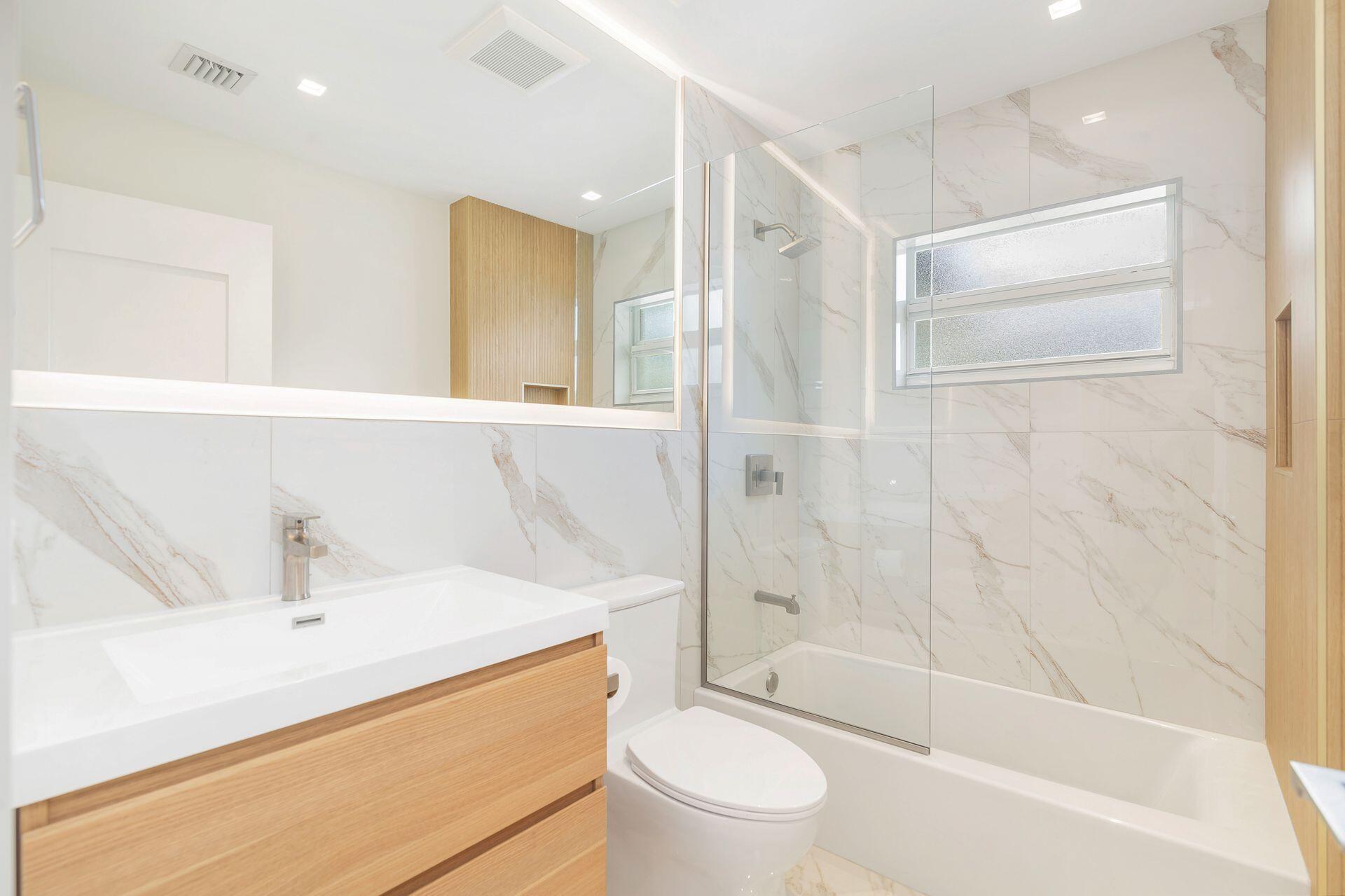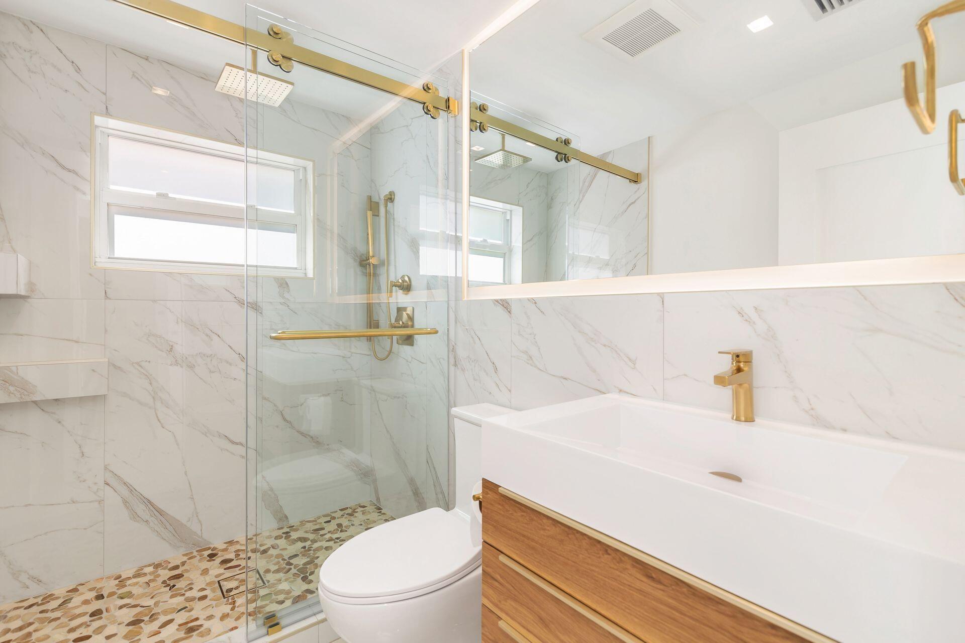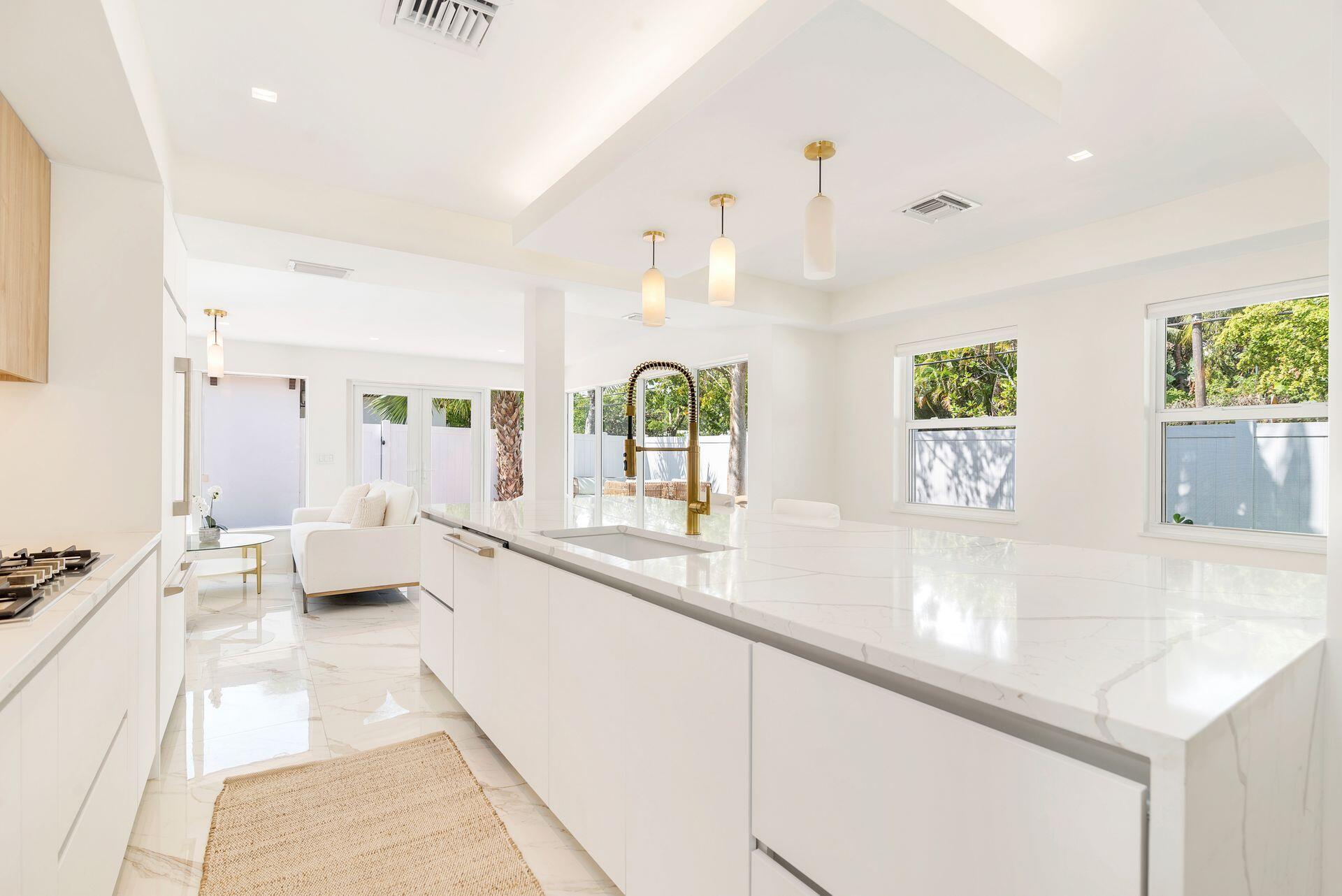 This exquisite home, situated in Prospect Park, offers a 3 bedroom/ 2 bathroom main home with a detached 2 bedroom/ 2 bathroom guest house. Fully renovated and redesigned, this home boasts trendy finishes with an open-concept floor plan and tons of natural light. The 704 sq. ft guest house has its own legal address and is ideal for visitors and/or is a fabulous rental opportunity. The brick courtyard patio is ready for a swimming pool or perfect AS-IS surrounded by mature landscaping. If you desire a few layout edits or specific customizations, the developer is happy to meet your needs. Located close to area beaches, fabulous Worth Ave. shopping, amazing restaurants, Flagler Drive, the Intracoastal waterway and bike trail, City Place and PBI airport.