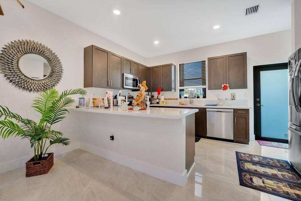 Welcome to the Edge on 15; a gated community in Edgewood with the lifestyle you are looking for with NO rear neighbors. This CORNER LOT unit offers captivating natural light, with HIGH ceilings, hurricane window Shutters, a gorgeous new Brazilian porcelain tile on all the first floor and a back private patio that makes you want to stay home and relax. The open kitchen has Quartz countertops and all stainless steel appliances. The three bedrooms are on the second floor with plush carpet. One car garage with one driveway, plus additional parking for visitor on designated area. This home is in excellent conditions with multiple updates. Schedule your showing today!