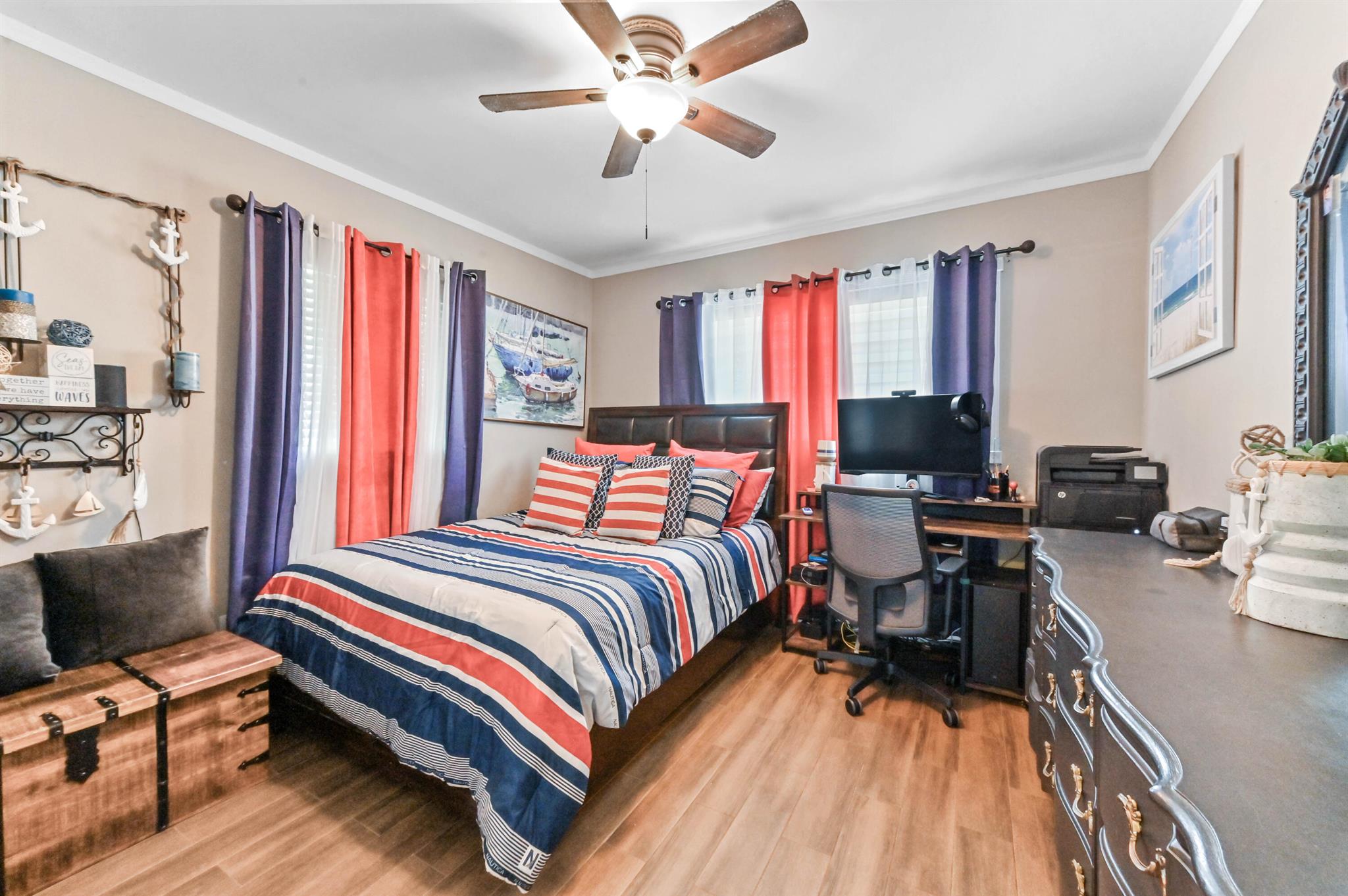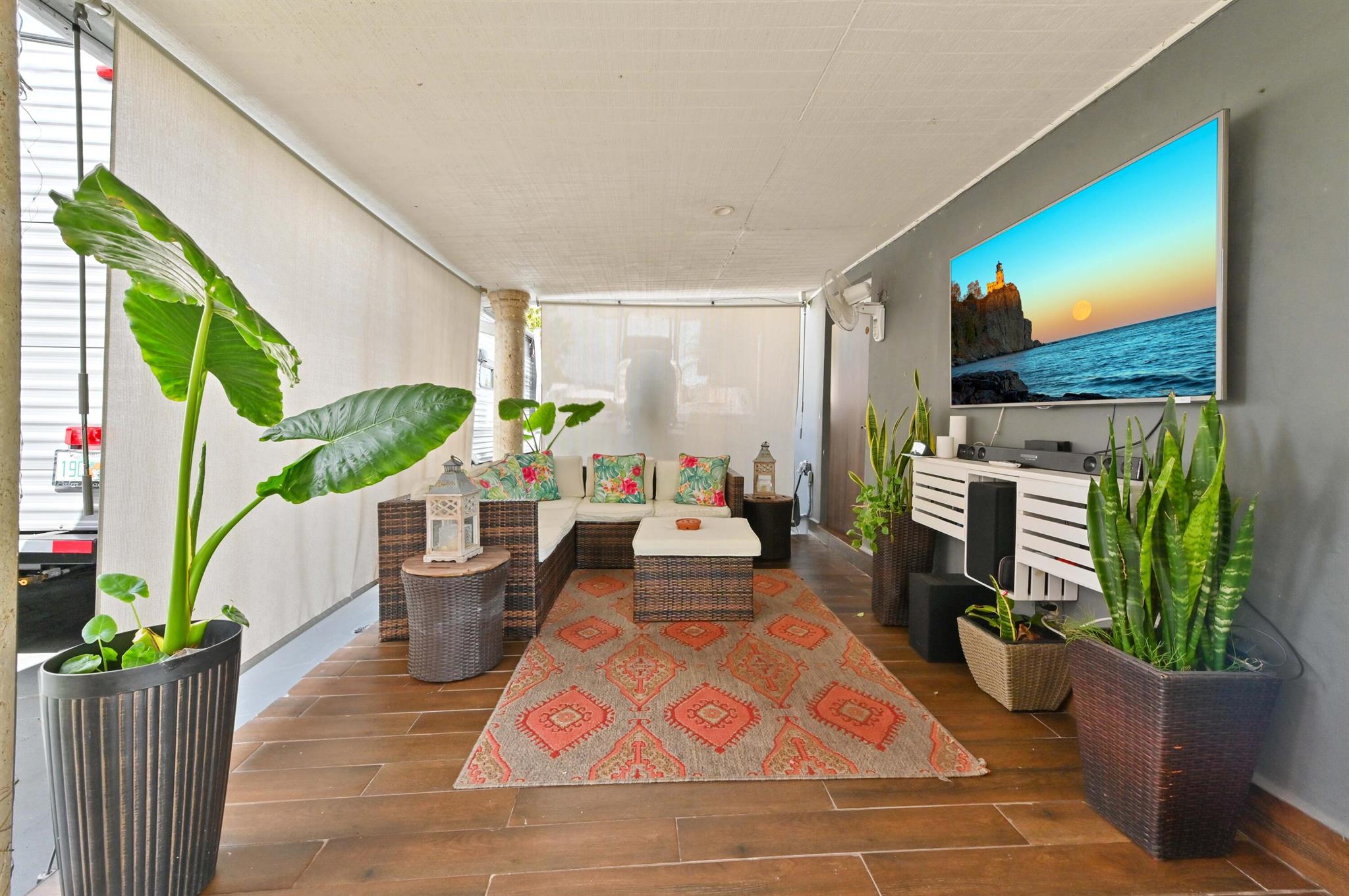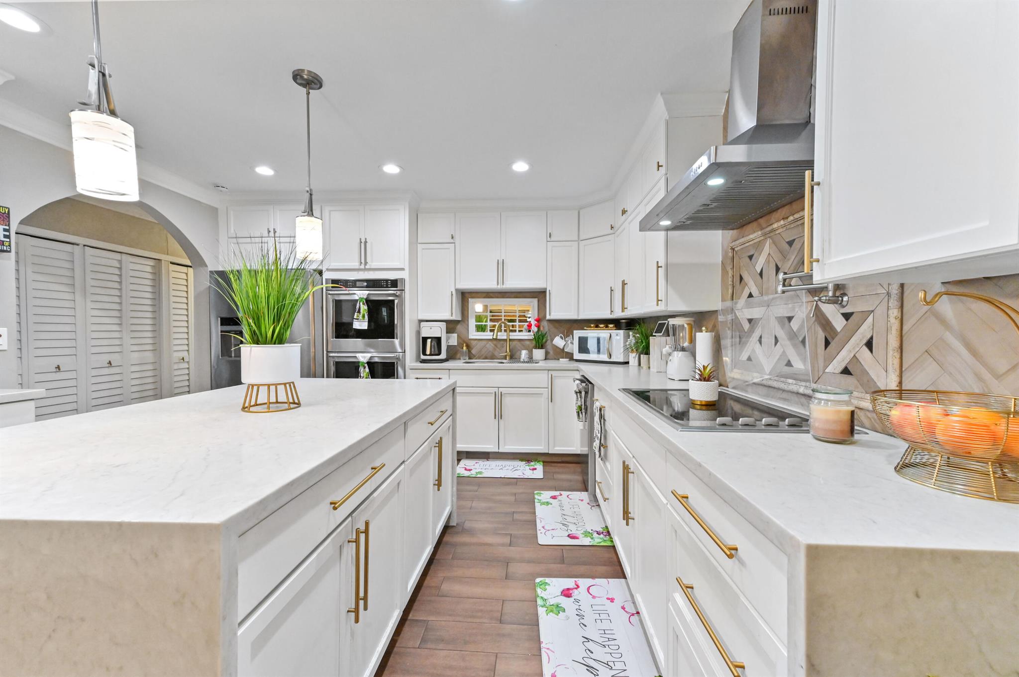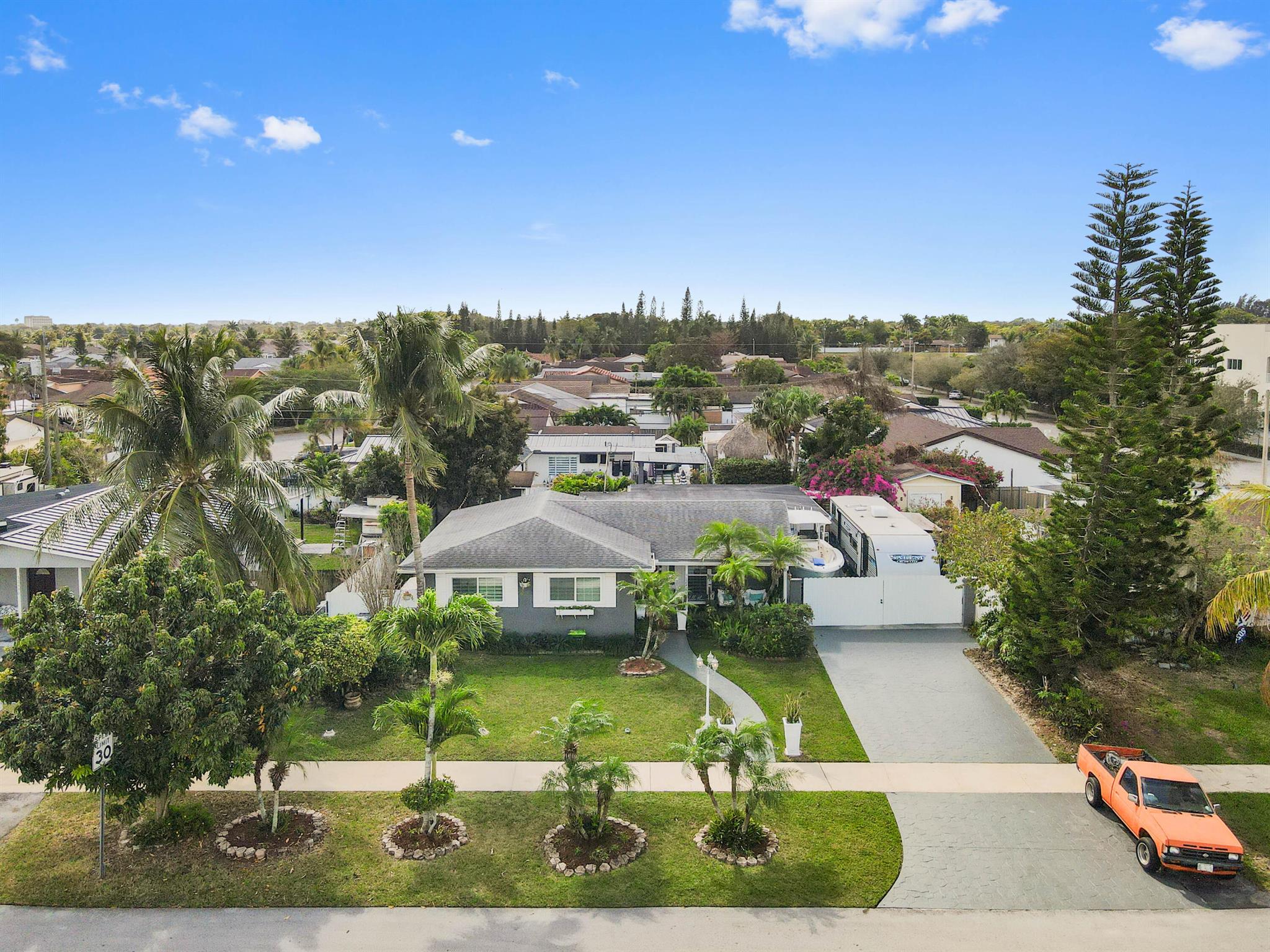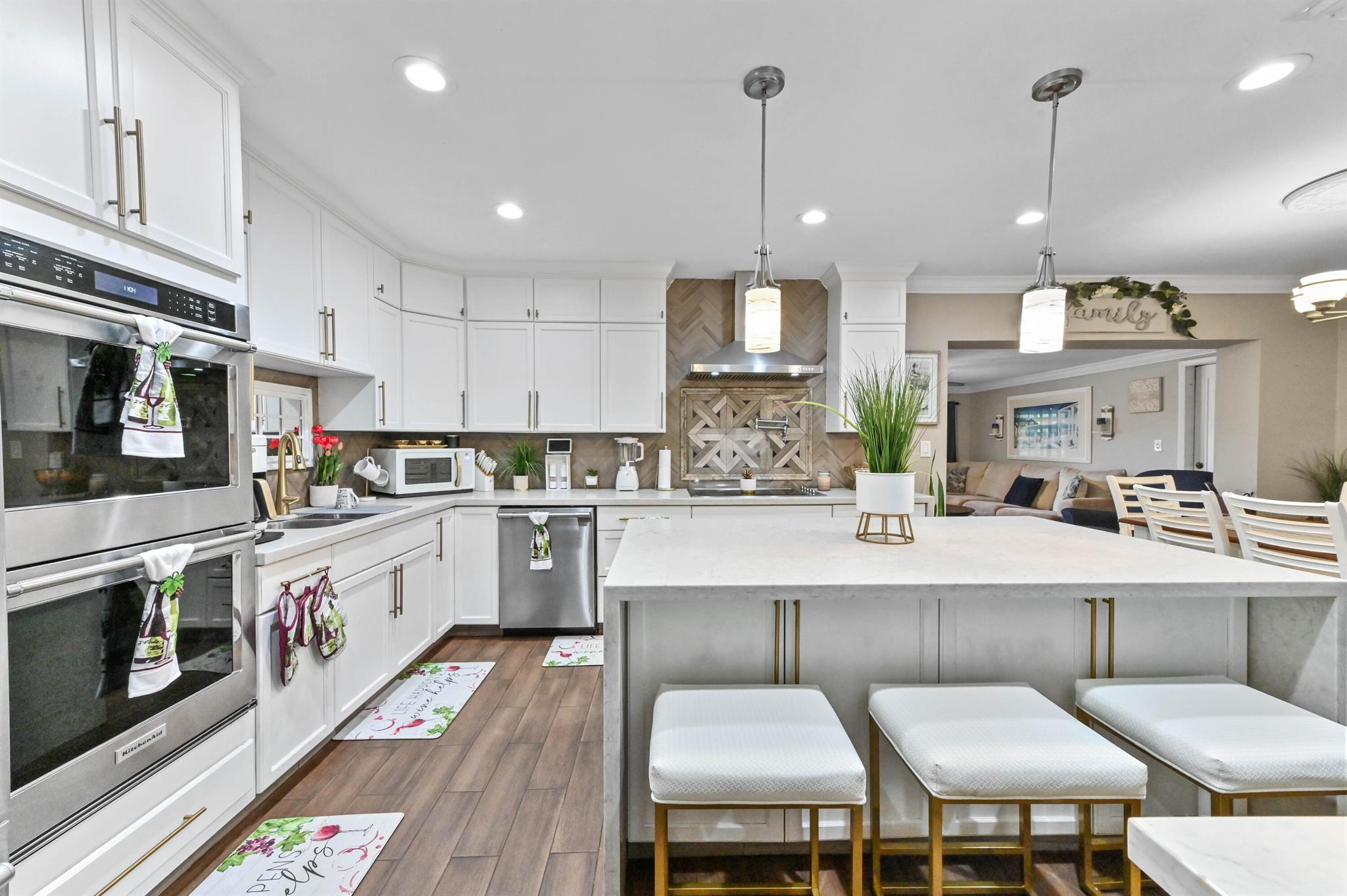 This meticulously renovated 2-bedroom, 2.5-bathroom home offers 1,383 sq ft of entry-level living space, ideal for everyday living. Outdoor features an oasis perfect for entertaining with a summer kitchen, covered seating with TVs and a bar. Inside you are welcomed with a living, dining and family room providing a welcoming atmosphere, while the kitchen features a stylish island with seating, perfect for casual dining or entertaining. Enjoy cooking with a cooktop stove and double-wall oven. The property also includes a washer and dryer for added convenience.Step outside to a fenced backyard with plenty of room for a potential pool and a garden patio, creating a private retreat. The home features a summer kitchen and a wet bar for outdoor entertaining.