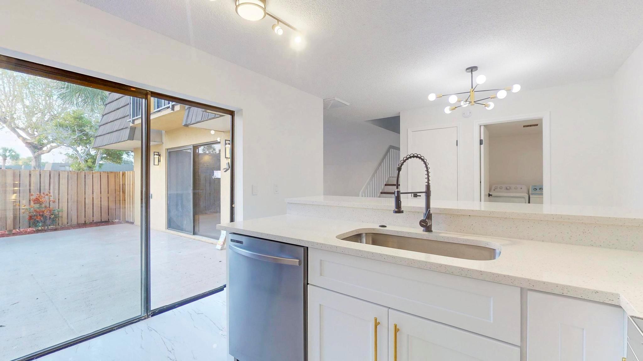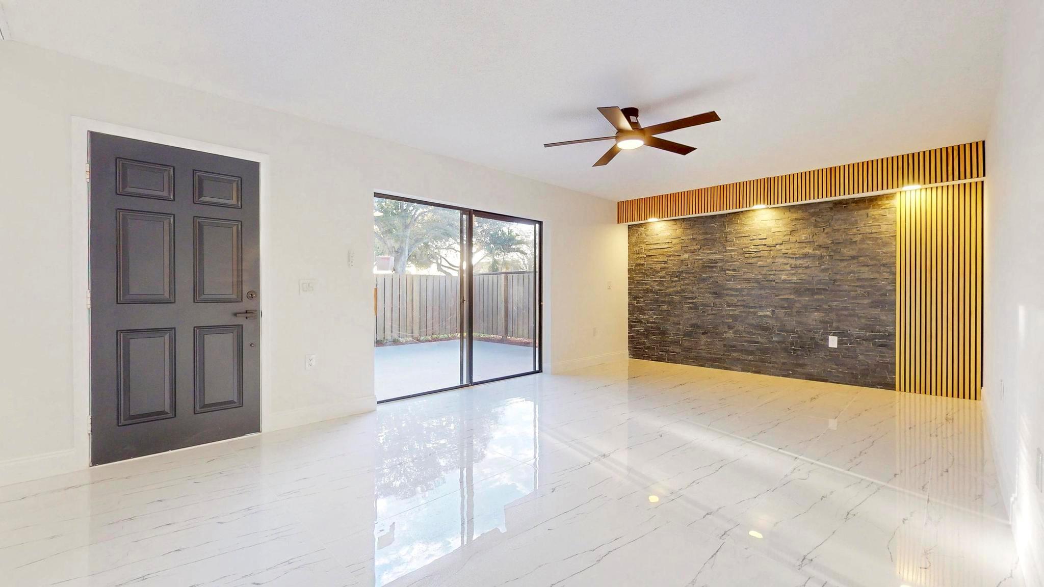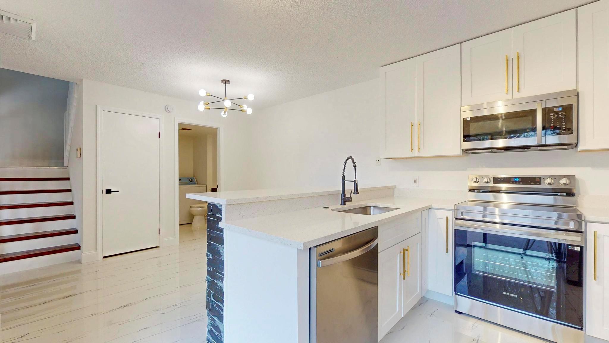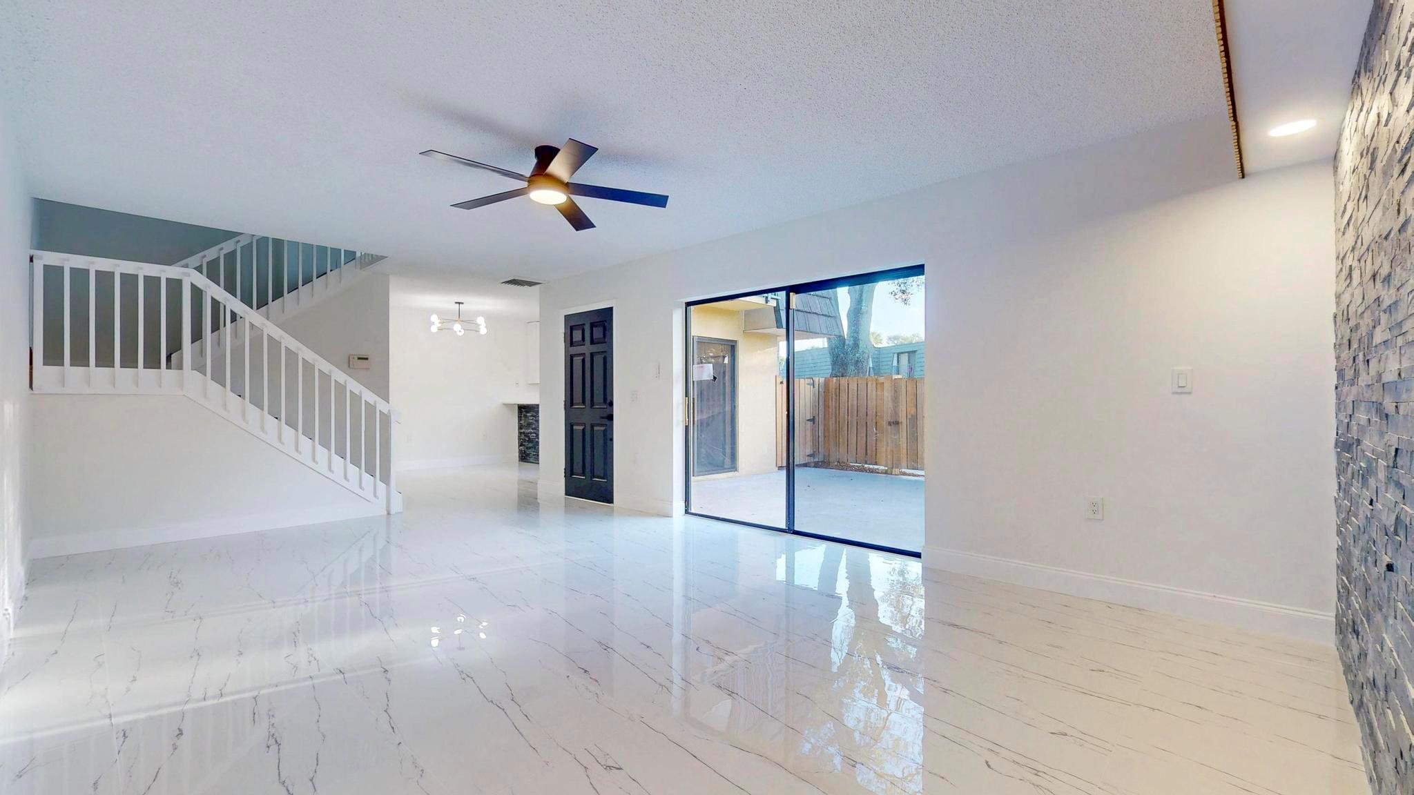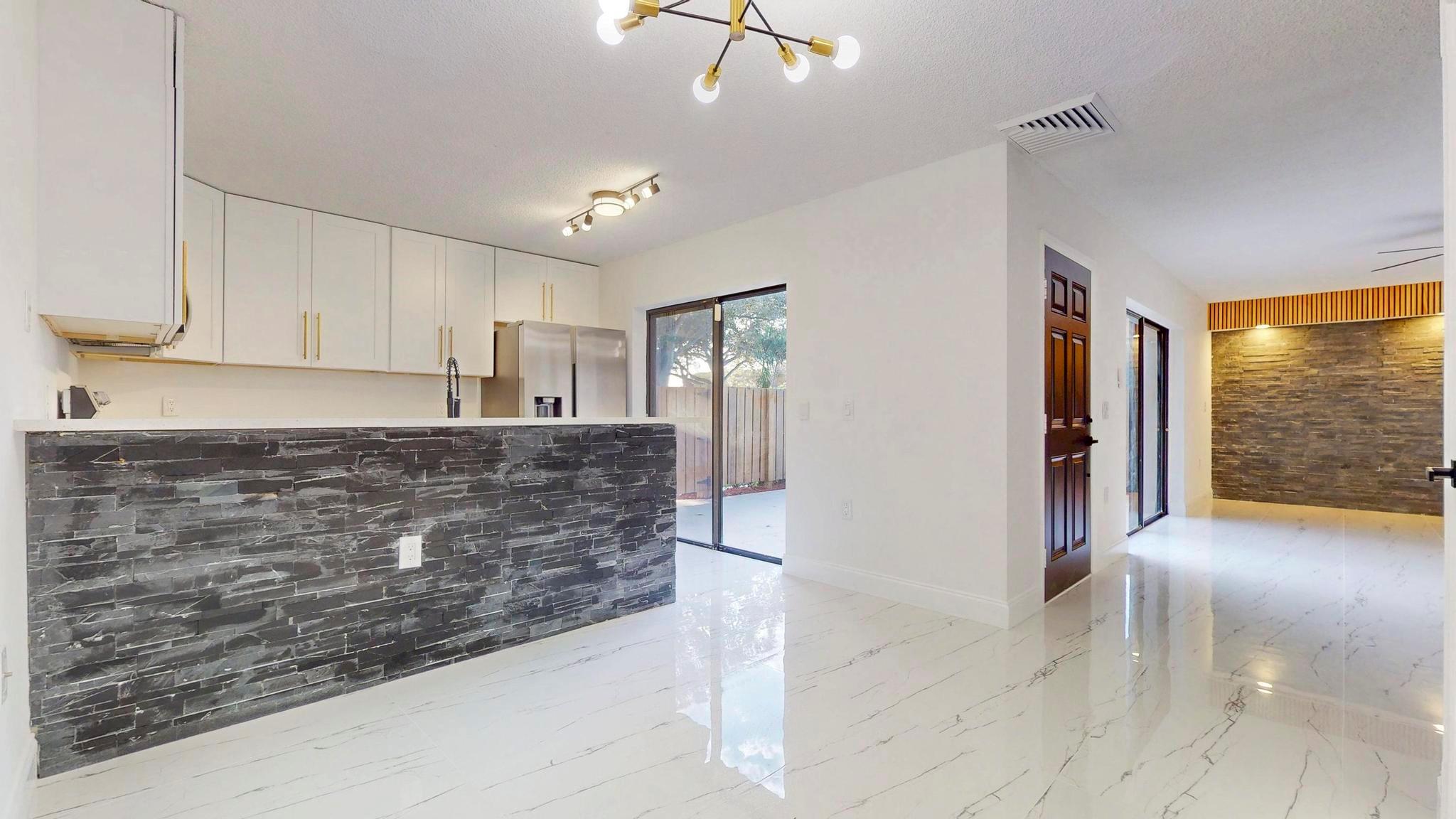 Come check out this charming modern home today! As you enter, you will see the beautiful accent wall made by split face marble wall tile and a touch of natural wood wall acoustic panel with added spotlights in the living room area, where you will spend a lot of time with family and beloved ones. This home has many new features including tiles throughout, newer A/C, renovated bathrooms, new white kitchen shaker cabinets, appliances, and quartz counter top. It is conveniently located, only minutes away from PBI Airport, top Beaches, downtown, I95, supermarkets, and many other stores. GREAT LOCATION! HOA is responsible for roof + includes water, not to mention the great amenities it offers such as the professional pool, tennis court, playground, and many more activities!