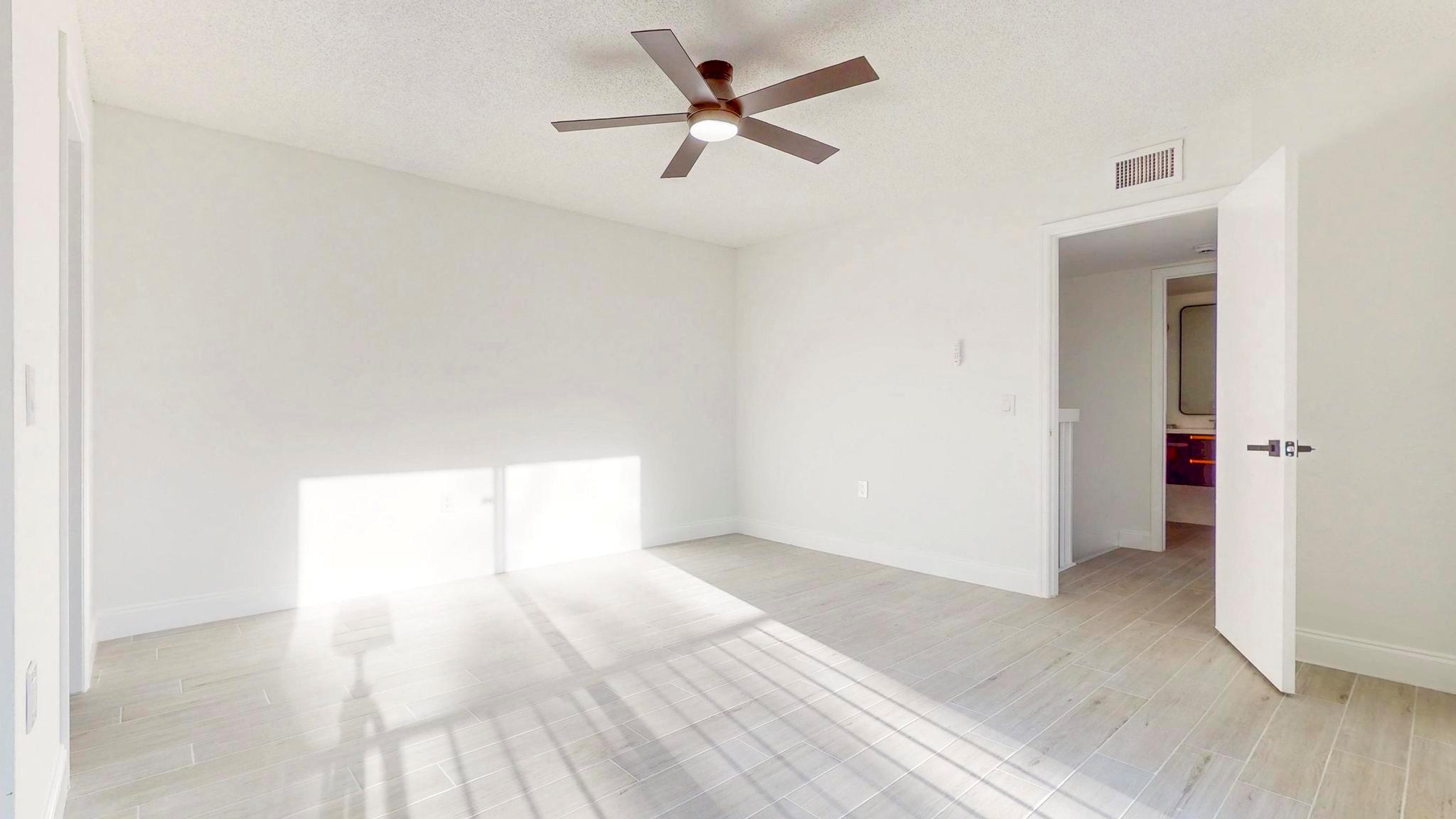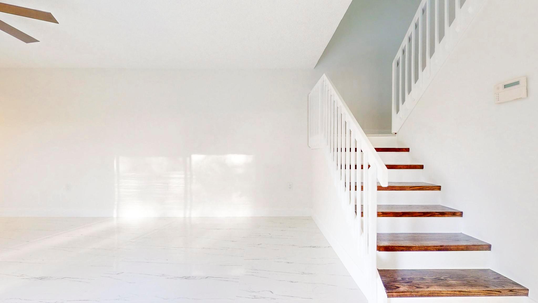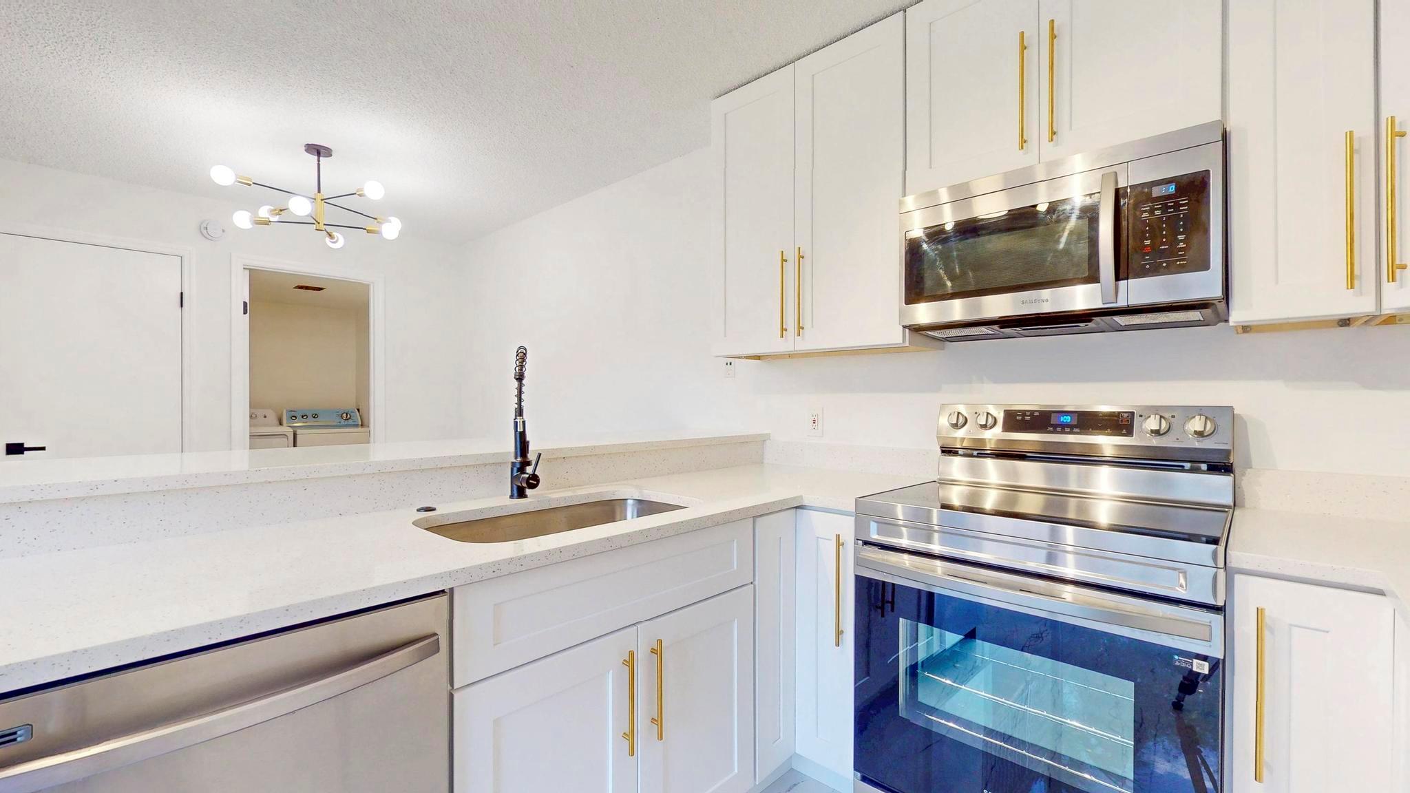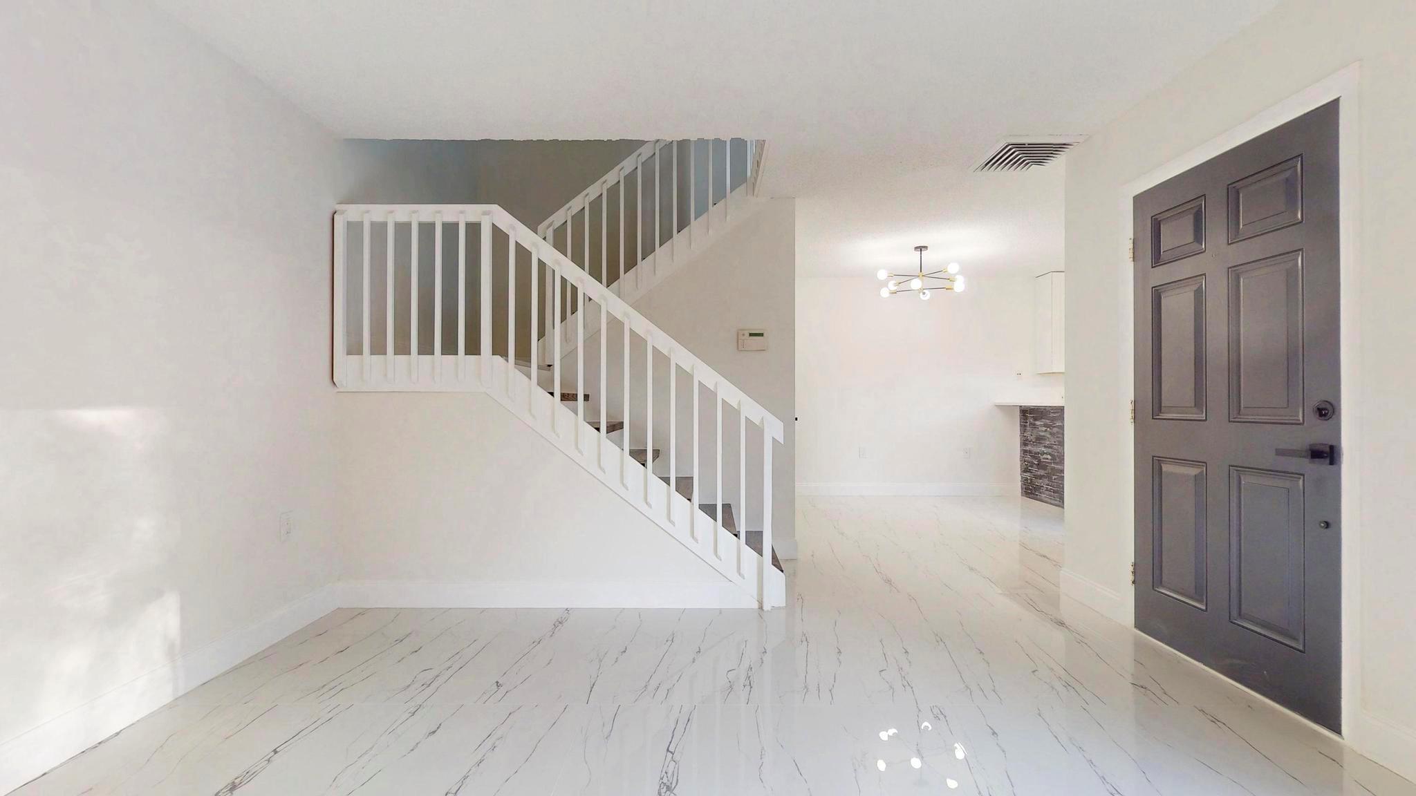 Come check out this charming modern home today! As you enter, you will see the beautiful accent wall made by split face marble wall tile and a touch of natural wood wall acoustic panel with added spotlights in the living room area, where you will spend a lot of time with family and beloved ones. This home has many new features including tiles throughout, newer A/C, renovated bathrooms, new white kitchen shaker cabinets, appliances, and quartz counter top. It is conveniently located, only minutes away from PBI Airport, top Beaches, downtown, I95, supermarkets, and many other stores. GREAT LOCATION! HOA is responsible for roof + includes water, not to mention the great amenities it offers such as the professional pool, tennis court, playground, and many more activities!