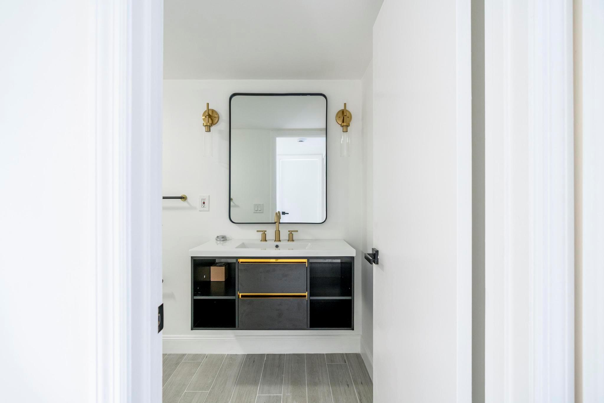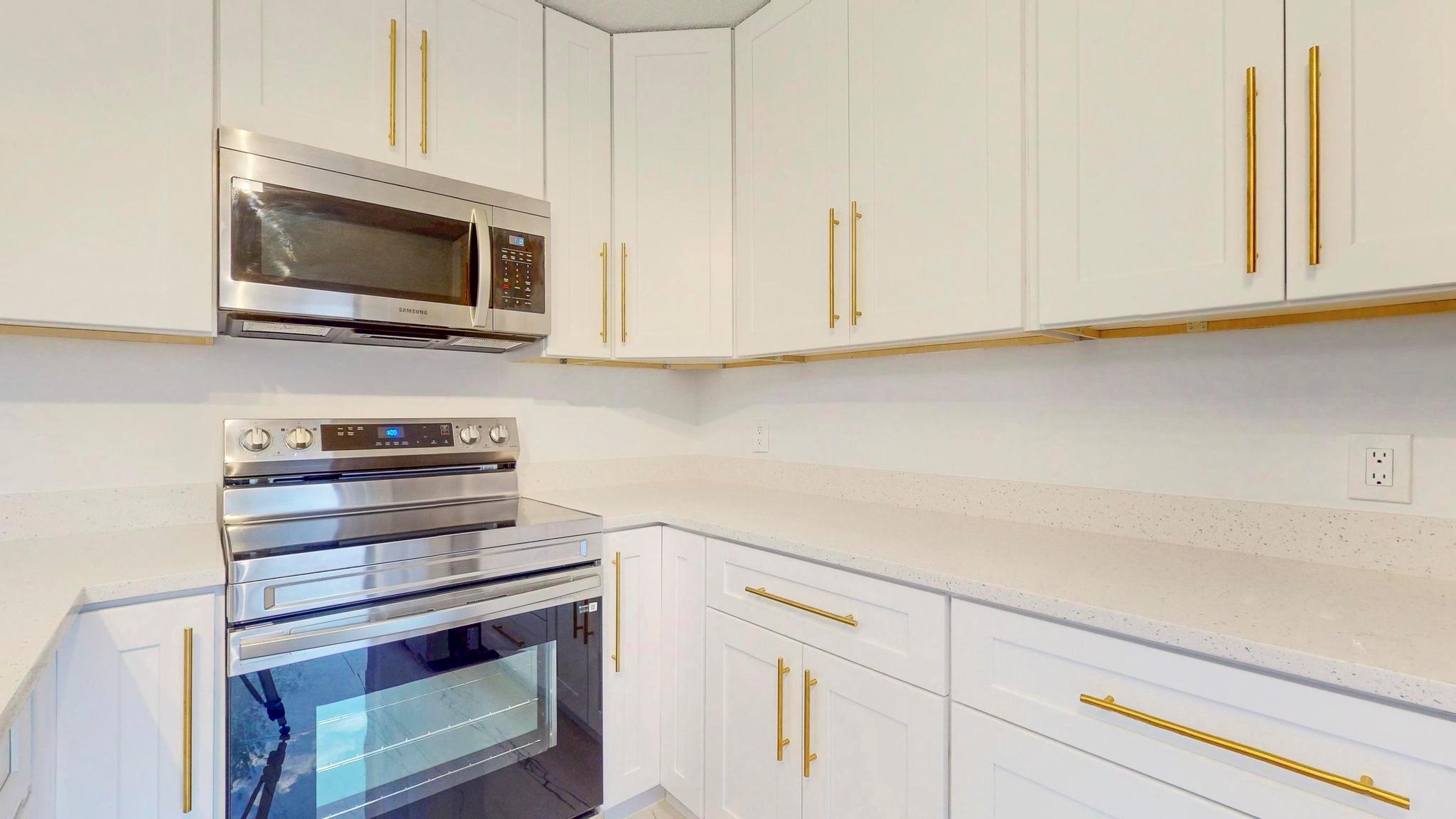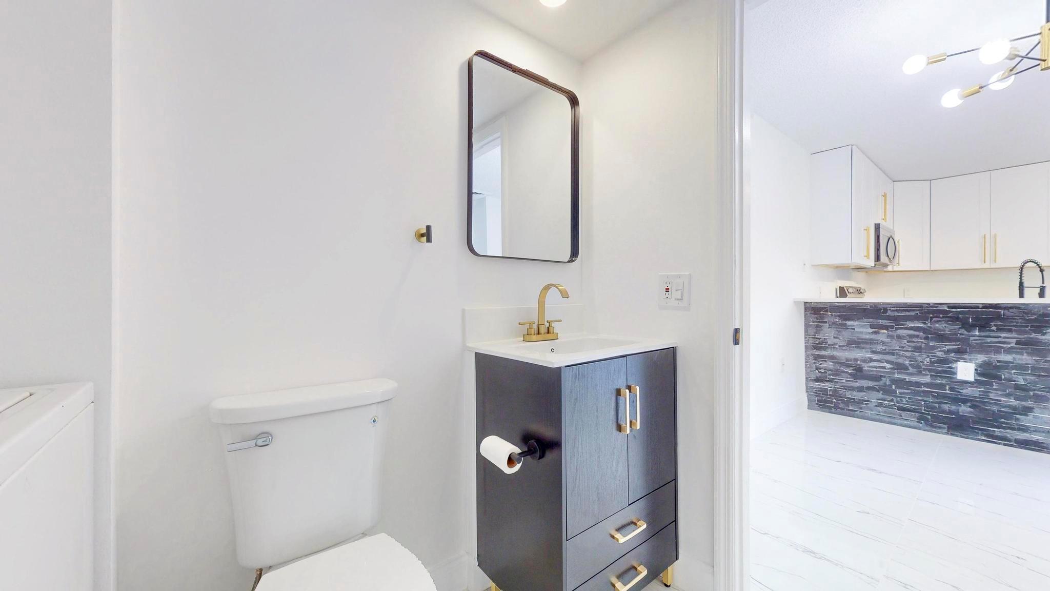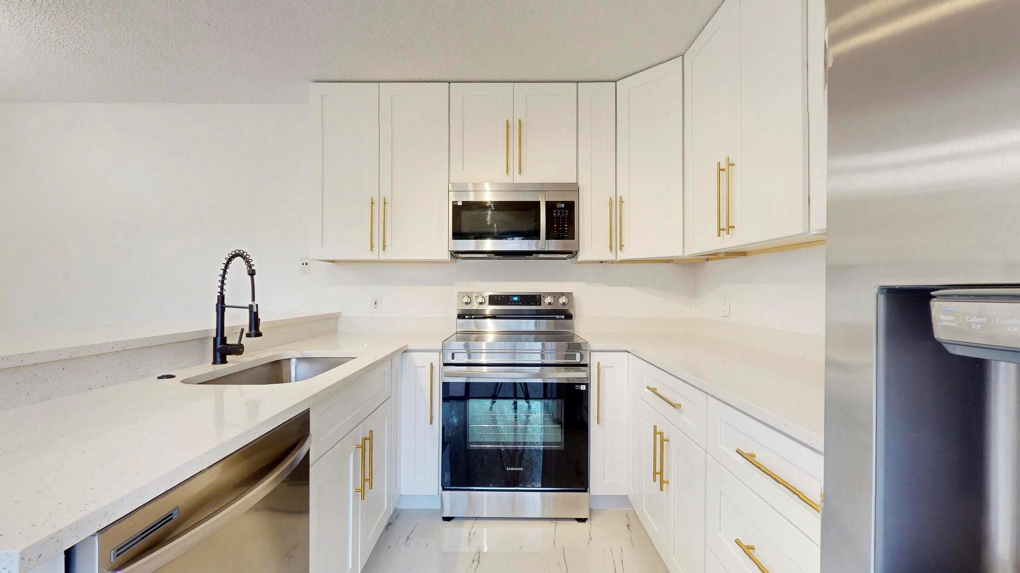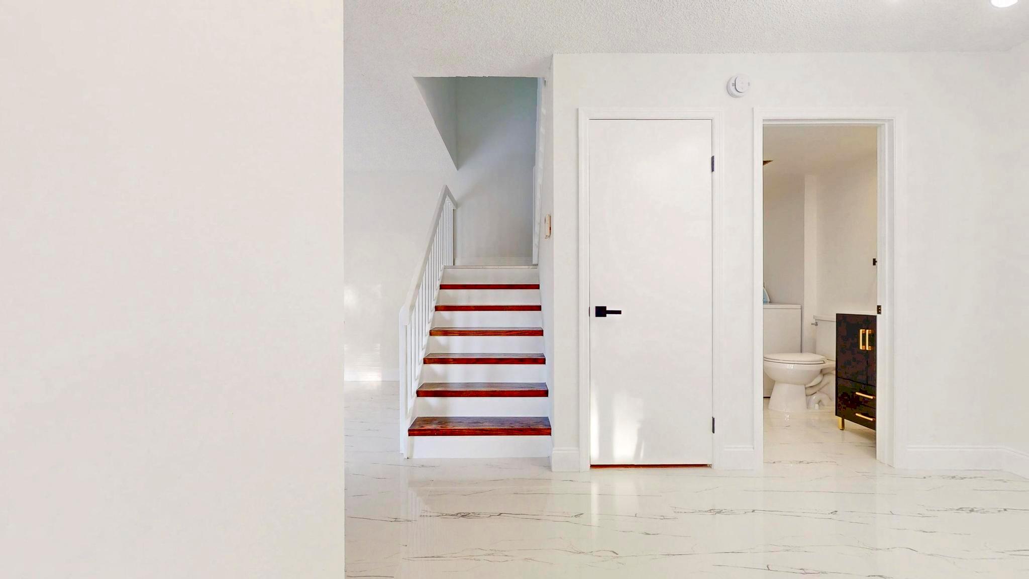 Come check out this charming modern home today! As you enter, you will see the beautiful accent wall made by split face marble wall tile and a touch of natural wood wall acoustic panel with added spotlights in the living room area, where you will spend a lot of time with family and beloved ones. This home has many new features including tiles throughout, newer A/C, renovated bathrooms, new white kitchen shaker cabinets, appliances, and quartz counter top. It is conveniently located, only minutes away from PBI Airport, top Beaches, downtown, I95, supermarkets, and many other stores. GREAT LOCATION! HOA is responsible for roof + includes water, not to mention the great amenities it offers such as the professional pool, tennis court, playground, and many more activities!