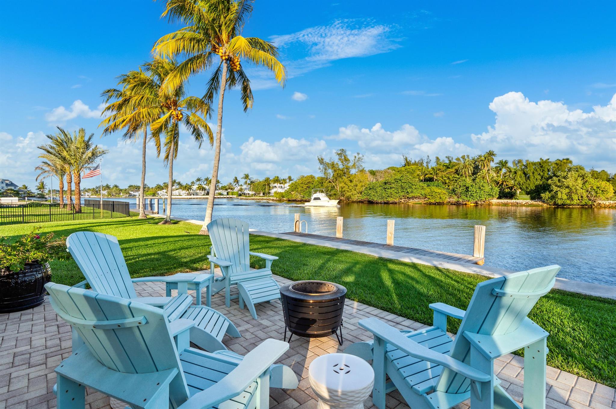 Enjoy as is, or re-envision, expand or rebuild. This Gulf Stream residence has 200 feet on the Intracoastal Waterway on a cul-de-sac lot of almost three-quarters of an acre. Views are unrivaled. The great room and primary bedrooms access the covered loggia and pool surveying serene sunrise views over the water to lush tropical landscaping that edges the exclusive private Gulf Stream Golf Course.