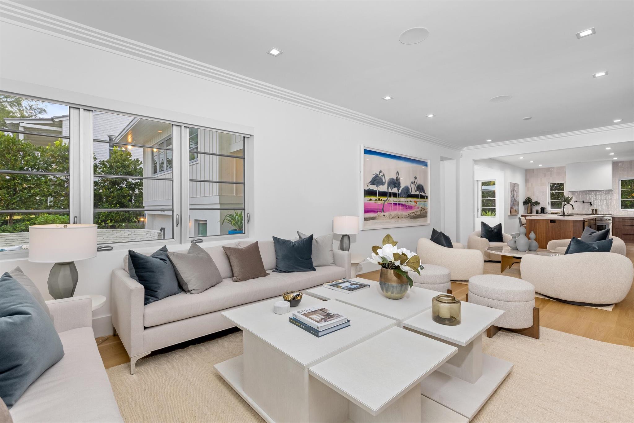 Waterfront 4BR/5.1BA Mid-Century home recently remodeled with beautiful finishes. Fantastic lakefront seating area. Light-filled living room with fireplace and views of the Intracoastal. Gorgeous kitchen with Thermador appliances, custom cabinetry, and oversized island with breakfast bar. Beautiful hardwood flooring and finishes throughout. Stunning resort-style backyard with built-in summer kitchen, covered lounge area, open dining patio, and large pool.