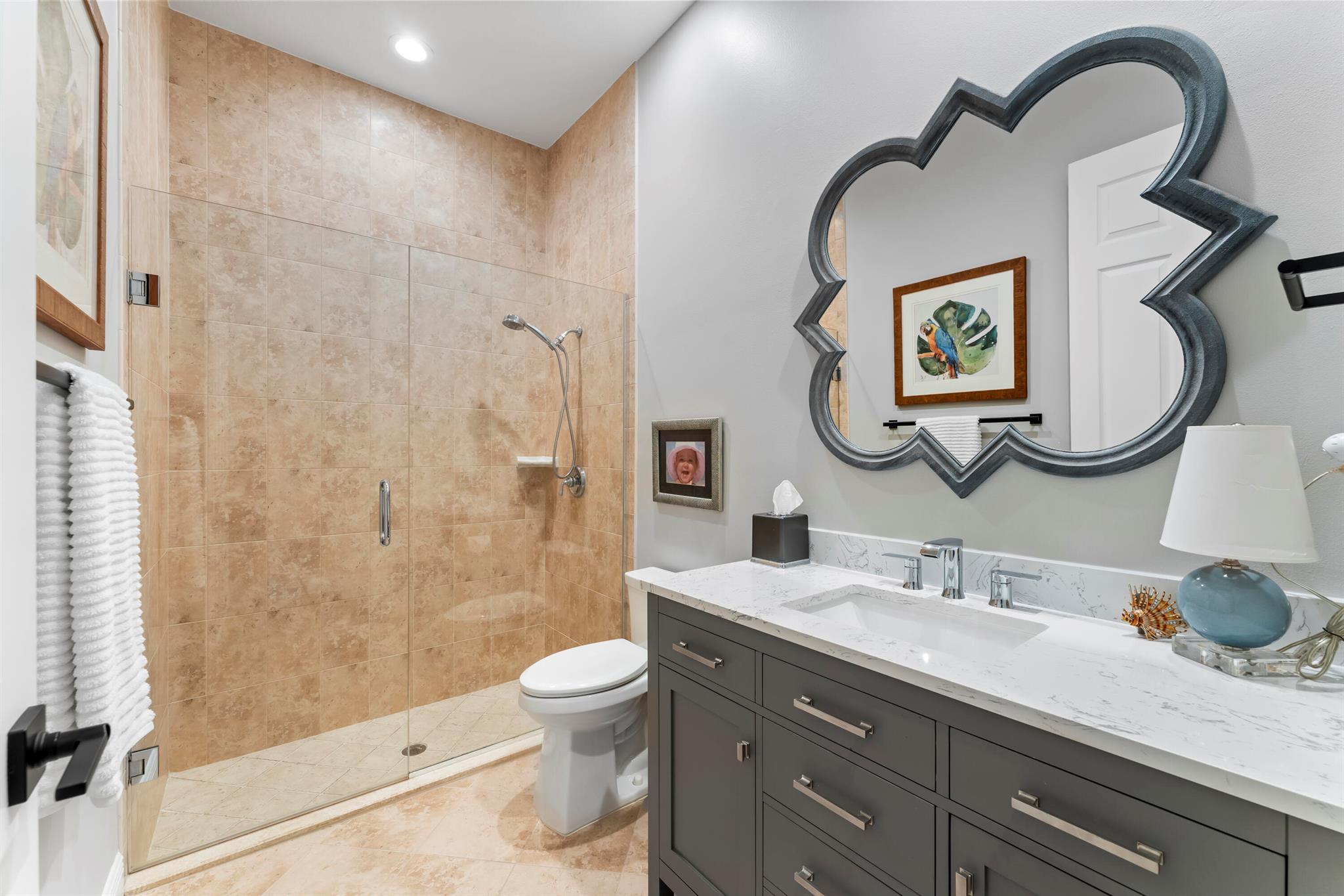 Gorgeous & Rarely available 3BR/ 3BA, CORNER, 1-Story Villa, in the private, 15-unit Gated community: Renaissance Place. This Zen Contemporary Oasis is Located steps from the Intracoastal and in the heart of PBG. With an Endless amount of Upgrades / Updates & Designer Touches, this home has been completely renovated & Meticulously Maintained. Some of the endless upgrades include; FULL Impact Windows, NEW ROOF, NEW Tankless HWH, Beautifully Updated Chefs Kitchen, Custom Island, Quartz Countertops, Crown Molding throughout, Plantation Shutters, Custom Window Treatments, Large Custom Closet Systems & the list goes on & on. Enjoy your Private Backyard featuring a new Travertine patio deck, upgraded Heated Salt Water Pool & Spa and an extended side yard. Come see before it's too late!