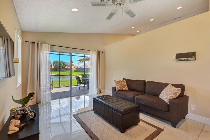 Bright open space! The living area has vaulted ceilings and a view of the tranquil lake. The plan is split, secluding the master bedroom with it's beautiful view and own entrance to the screened in patio. Separate Laundry Room, Leading to the 2 Car Garage. Accordion hurricane and Plantation shutters. HOA Includes:
