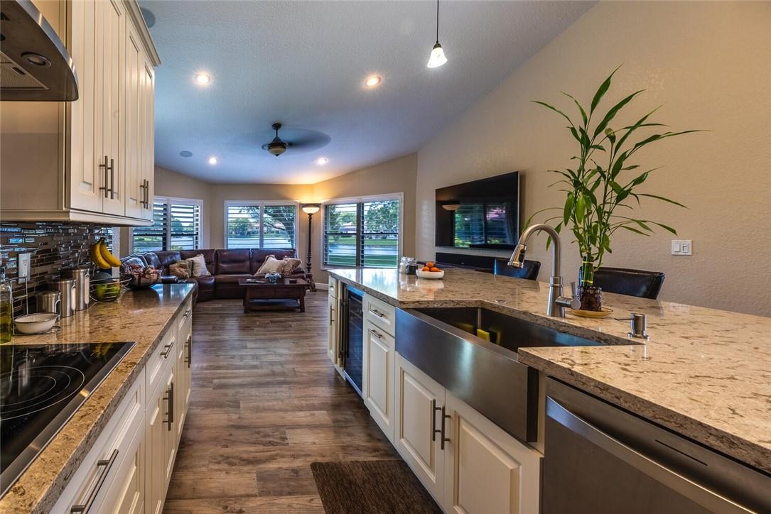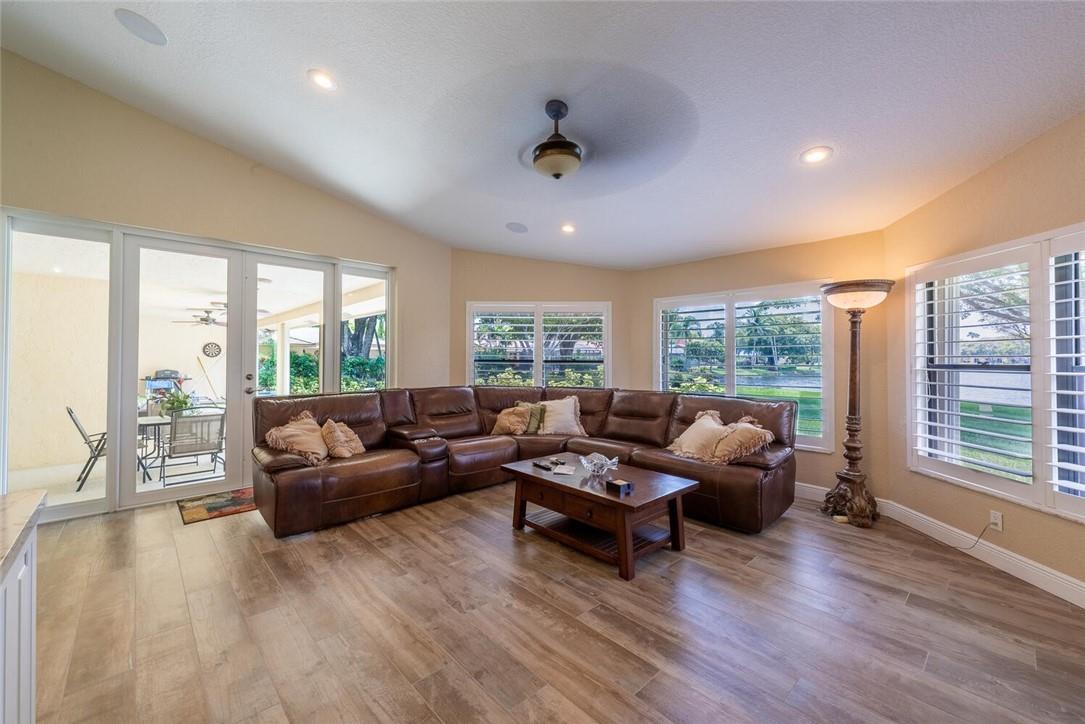 Moving! Motivated and Must Sell! Huge, oversized 1/3 Acre lot, covered patio with pool on lake. Walk into a sunken formal living room overlooking the pool and lakefront via hurricane French Doors. Private with large trees in backyard. Completely remodeled! Turnkey with all-new kitchen, Kenmore Elite stainless appliances, quartz counters and an oversized island. All new tile and laminate floors throughout, fresh paint and immaculate. So clean, owners do not wear shoes in the home. Oversized, front load Kenmore W/D in Utility Room. Skylight! Plantation shutters and custom California Closets, too. Large, semi-circle drive and covered, double door entrance. Great neighborhood, no HOA, excellent schools and close to Sawgrass Expressway.