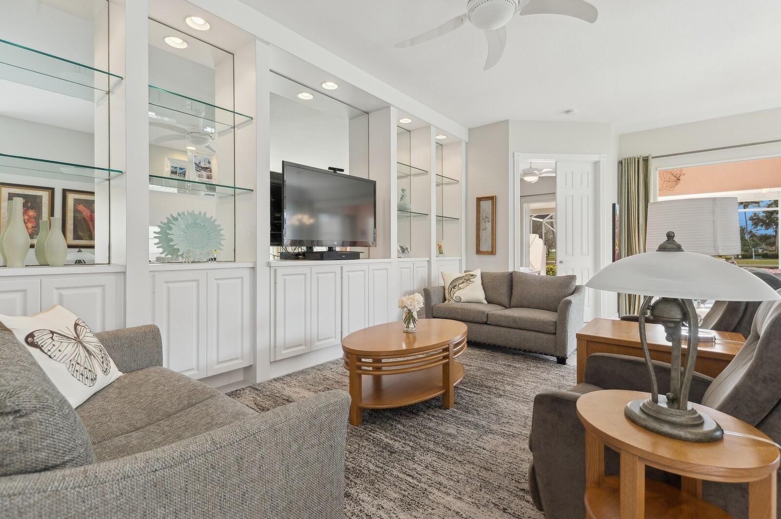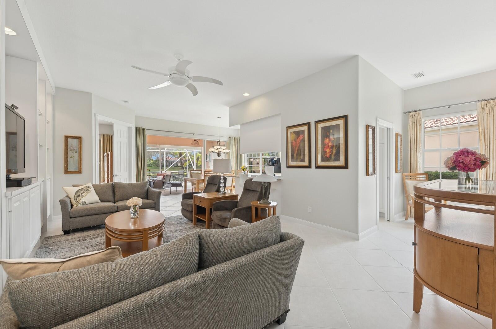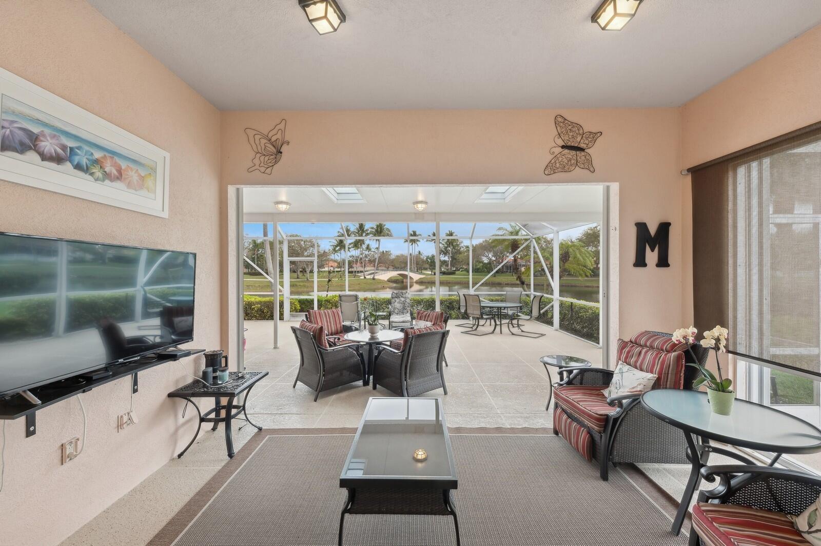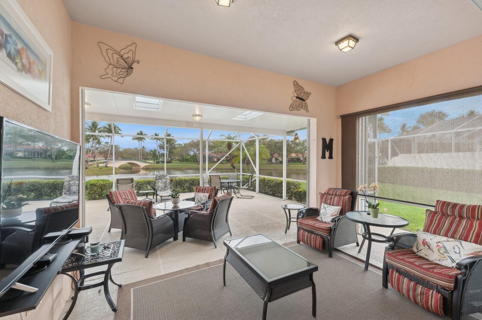 This One-Of-A-Kind, Totally Updated, Glenwood is a ''Gem'' Set on A Unique Private, Wide Lake Point Lot with Panoramic Views of 3 Lakes, 3 Bridges & Vast Green Spaces, that can only be described as ''Awe-Inspiring'' making this Pristine, Decorator Owned '''JEWEL'', With Spectacular Outdoor Living Space consisting of 3 Entertainment Areas with a Sealed & Decorative Floor; a Covered Lanai, a Covered Permanent Roofed Terrace with 3 Skylites & Ceiling Lighting & an Open Newly Screened Terrace, all with those Fairytale Views that Go On & On! INCOMPARABLE! These Views can be Appreciated from the Moment you Walk in the Front Door & Carry through to the Great Room, the Dining Area, Kitchen & the Master Suite, giving this Home a feeling of being at a Tropical Island Resort everyday! The Cul de Sac