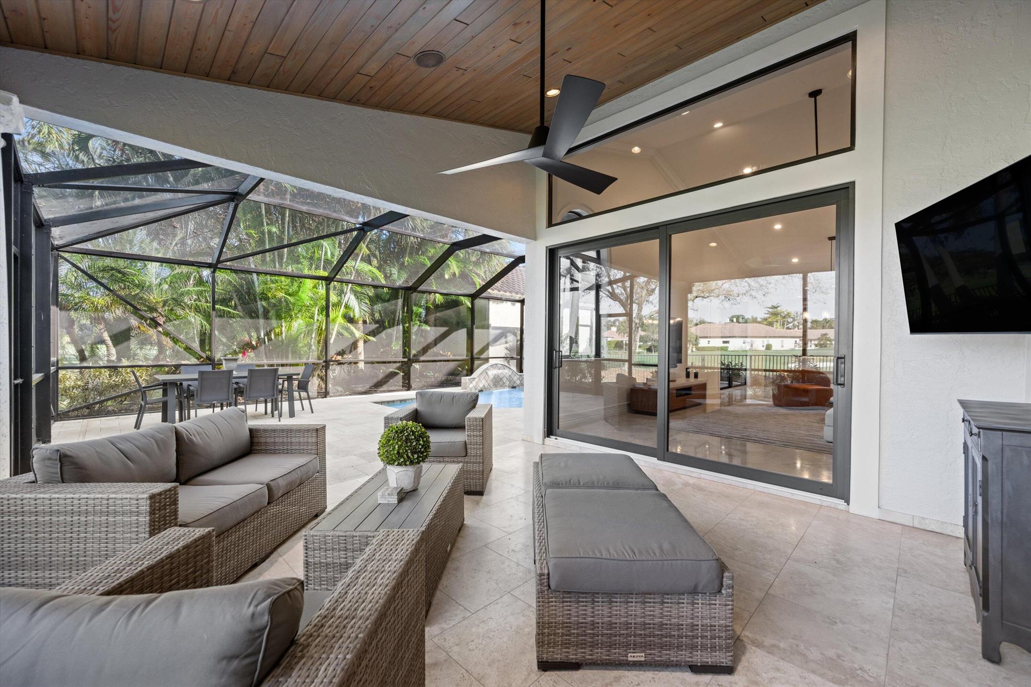 Perfect golfer's get-away! Located in the sought-after neighborhood of Fairway Villas in Breakers West, this elegant home boasts 3 Bedrooms, 3 Full Baths and 2-car garage with sweeping fairway views of Breakers West Rees Jones Course. Open Great Room floor plan has vaulted ceilings, marble flooring thru-out, solid wood custom cabinetry and granite counters in kitchen and all baths. This elevated yet comfortable home has an inviting outdoor patio with a screen enclosed heated pool/spa and marble deck; roofed loggia with wood ceiling. Additional upldates include hurricane impact windows/doors thru-out, freshly painted interior & exterior, new interior lighting, new Sonos sound system and new landscaping highlighted by new landscape lighting. The pool has been updated with new equipment