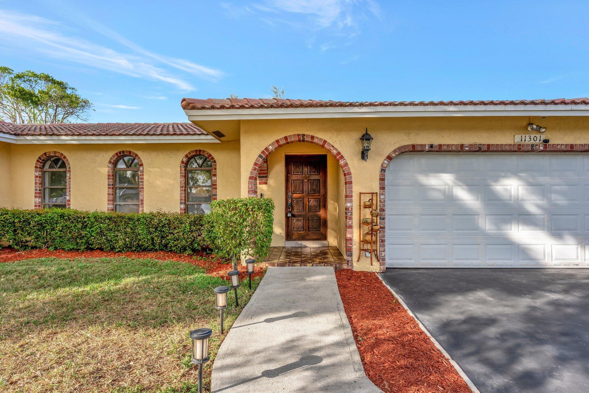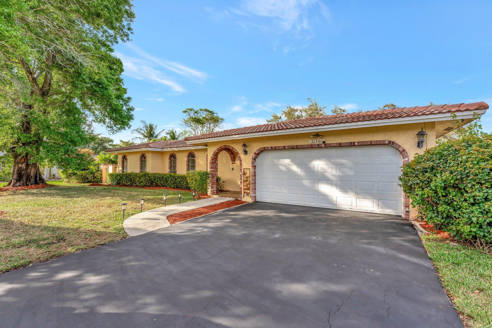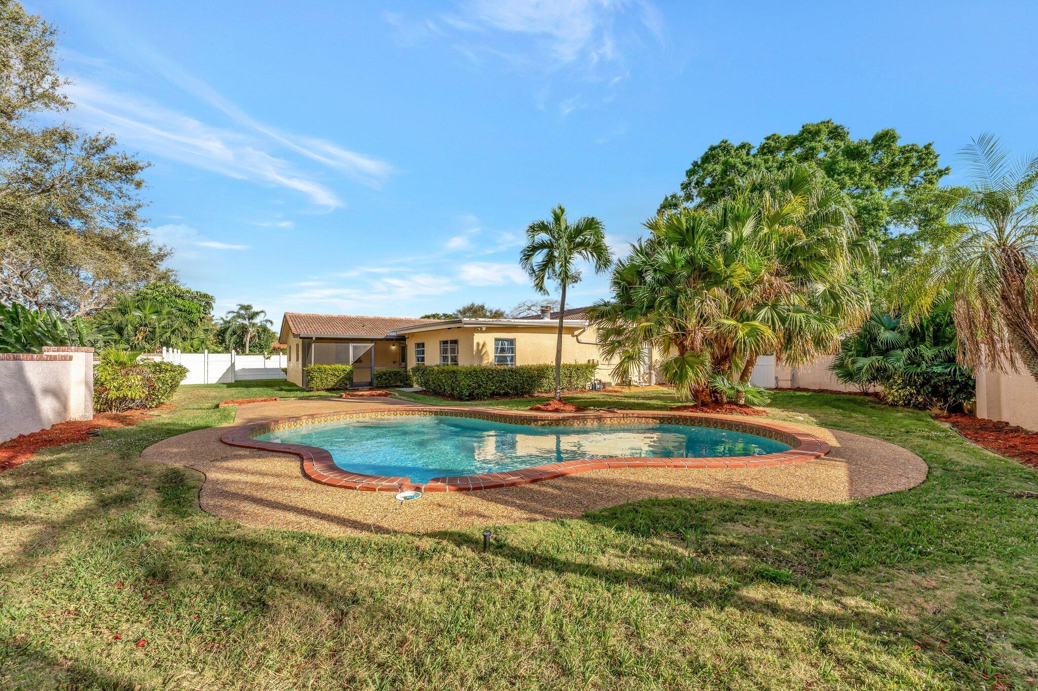 Lovingly maintained, this spacious 4-bedroom, 2.5-bath, 2,496 sq. ft. single-family home sits on a sprawling 14,098 sq. ft. lot--nearly 1/3 acre--in the highly desirable Coral Springs subdivision. Best of all, there's no HOA and it's tucked away on a peaceful cul-de-sac! Enjoy a large outdoor space with a pool, plenty of yard, and a screened-in area just off the kitchen with charming French doors. Inside, you'll find a cozy fireplace, an elegant artistic fresco at the entrance, ceramic tile throughout, a generous kitchen with granite counters and a pantry, plus an oversized laundry room.This hidden gem boasts a fully fenced yard with ample space to make it your own. The interior and garage have been freshly painted, with new light fixtures, fresh paint on the flat roof, and more updates.