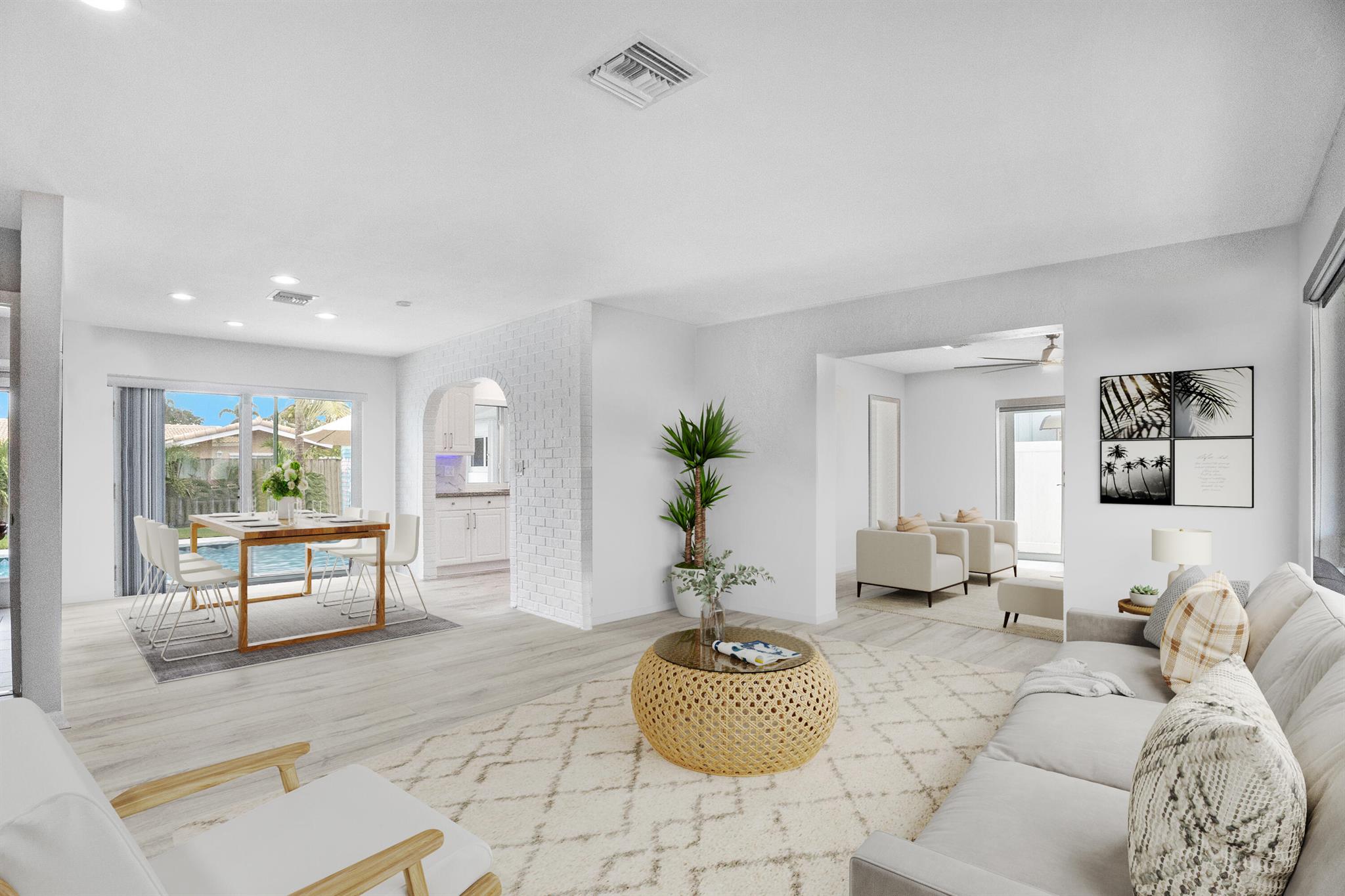 RUN TO SEE this great home in IMPERIAL POINT. Roof: 2006; MOVE-IN READY. 3 bedroom. NO RENTAL RESTRICTIONS. NO PET RESTRICTIONS and NO HOA! EZ maintenance is the first thing you will notice about the clean, modern home with a w/newly paved, circular drive and covered porch. Step inside to the OPEN CONCEPT, designed for Florida Living. Everything is redone, light and bright with lots of IMPACT WINDOWS, new floor, designer lighting and highhats. The Living room welcomes you with separate area for dining. There is also a large Family Room, WALK-IN PANTRY, and LAUNDRY ROOM. As you enter the Kitchen, notice the new SS appliances. Of course there's a snack bar peninsula w/pendant lighting, glass-door cabinets w/molding, long countertops, deep sink and pass-through window to the