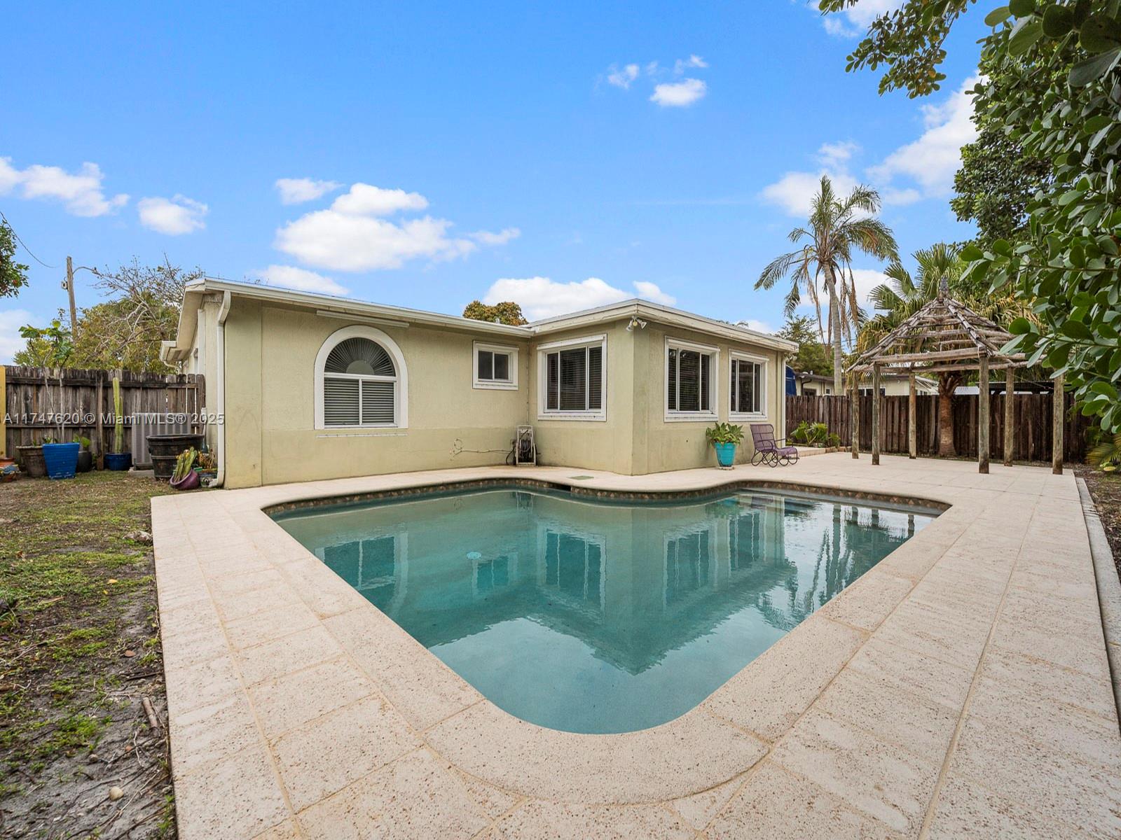 This 3-bed, 2-bath, one-story home nestled in the enchanting Pines Village is perfect for those seeking both style and convenience, and no HOA! The kitchen features a copper anti-bacterial sink and sleek finishes, while crown molding, LED recessed lighting, and tray ceilings in the master suite add an elegant touch. The home has travertine flooring in the kitchen and baths, with durable wood laminate throughout. A 2023 Rheem AC ensures year-round comfort, and hurricane impact doors provide peace of mind. Enjoy a private backyard retreat with CoolDeck patio flooring, tiki hut, and a refreshing pool. A spacious 1-car garage offers extra storage. Conveniently located near Pines Charter "A" Schools, the Turnpike, and Pembroke Pines Blvd, this gem won’t last in this fast-selling neighborhood!